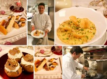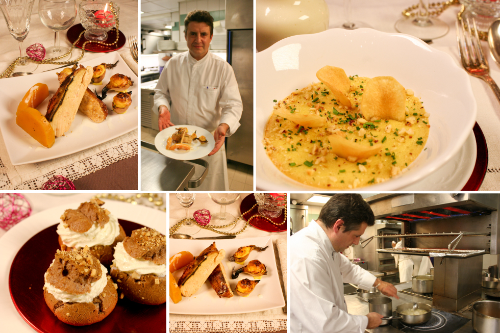 – Entrée : Délicieux velouté et chips de topinambours à la noisette, royale de foie gras.