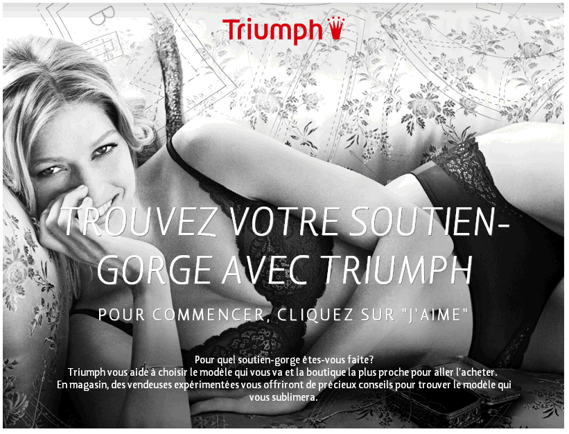 Une étude a démontré que 80% des femmes ne portent pas la bonne taille de soutien gorge. Pour pallier à cela, Triumph un des leaders du marché de la lingerie haut de gamme, lance Fit Finder, un guide en ligne très pratique qui permet de trouver le soutien-gorge idéal.
