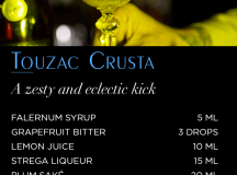 Dernier arrêt, l’endroit le plus luxe et branché de Londres, trusté par les traders et les jolies filles, le Novikov de Antonio Simonetti est sans doute the place to be seen. Son barman nous propose le Touzac Crusta, composé de Remy Martin VSOP Mature Cask Finish, de sale, de jus de citron, de pamplemousse et d’autres ingrédients secrets. So chic !