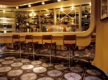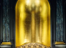 Le restaurant bénéficie déjà d’une vue panoramique exceptionnelle sur la Tamise et plusieurs monuments de Londres. Positionné en évidence, un Bar apporte d’emblée une certaine théâtralité avec son comptoir en coquillages, ses colonnes en verre de Murano et ses lustres sur mesure. Les cuivres étincelants, les miroirs, et les plafonds tapissés à la feuille d’argent, participent à l’élégance et la luminosité du lieu. Le sol en marbre est réchauffé par un tapis circulaire aux motifs qui rappellent les tourbillons de la Tamise.