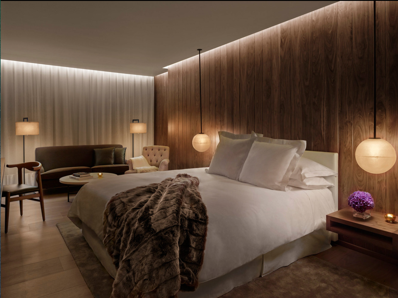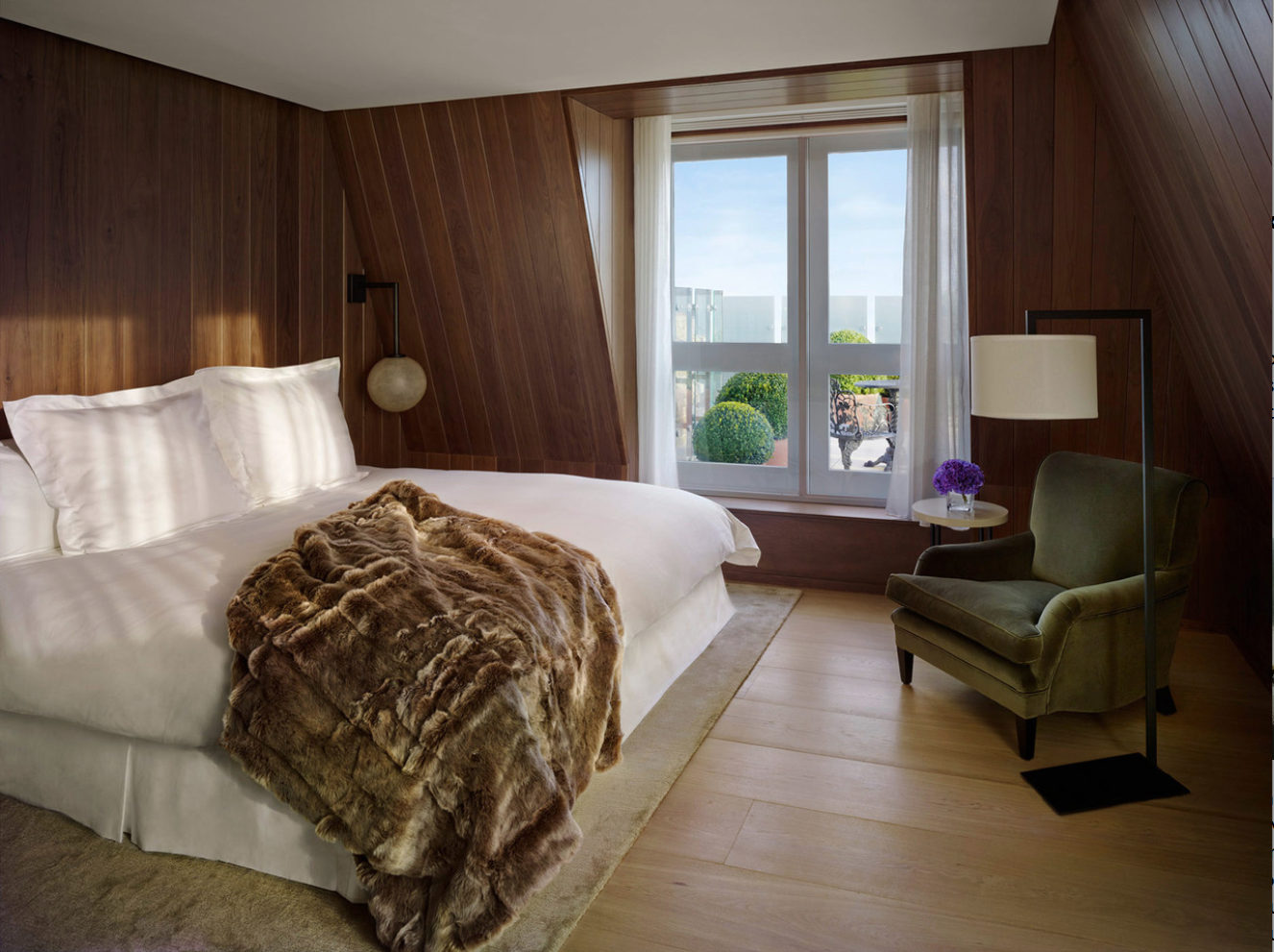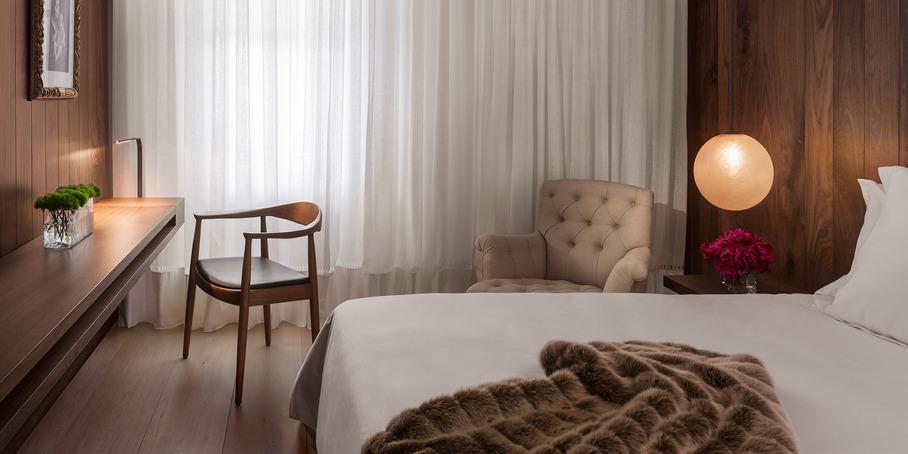 Derrière sa façade géorgienne se cachent, des lieux publics majestueux, deux bars, un centre de fitness ouvert 24 heures et 173 chambres et suites en bois semblables aux cabines d’un yacht privé, intimes et luxueux.