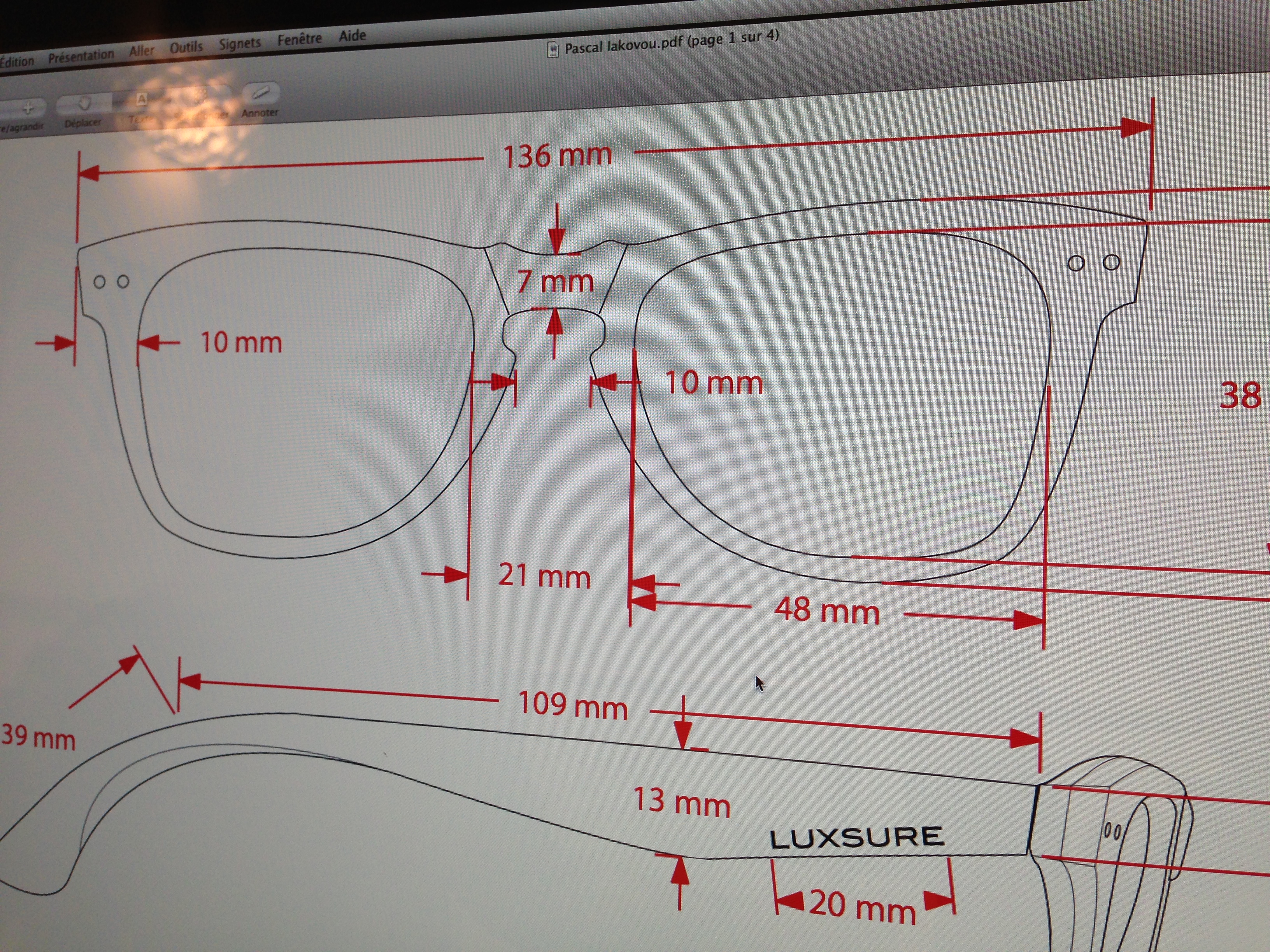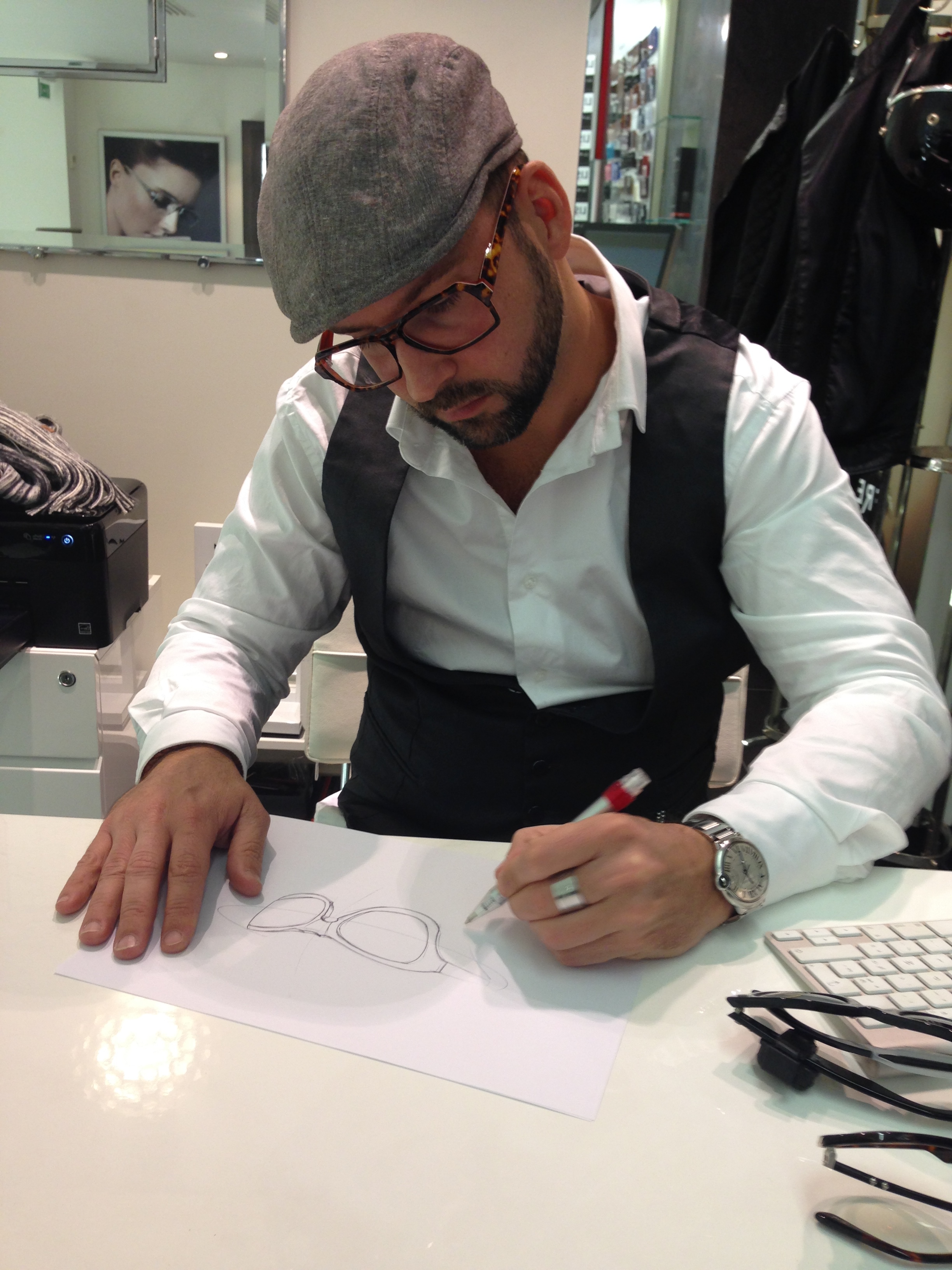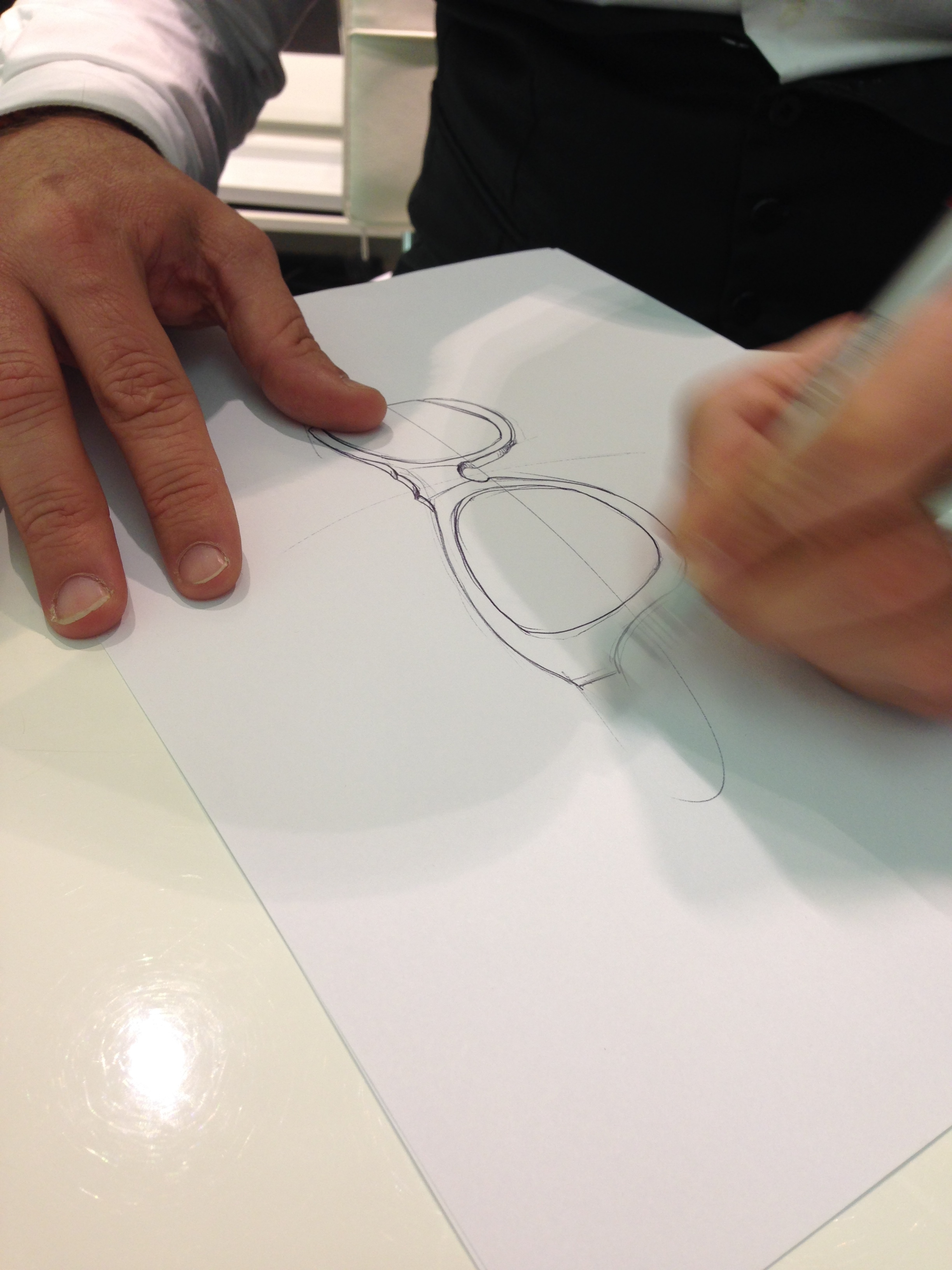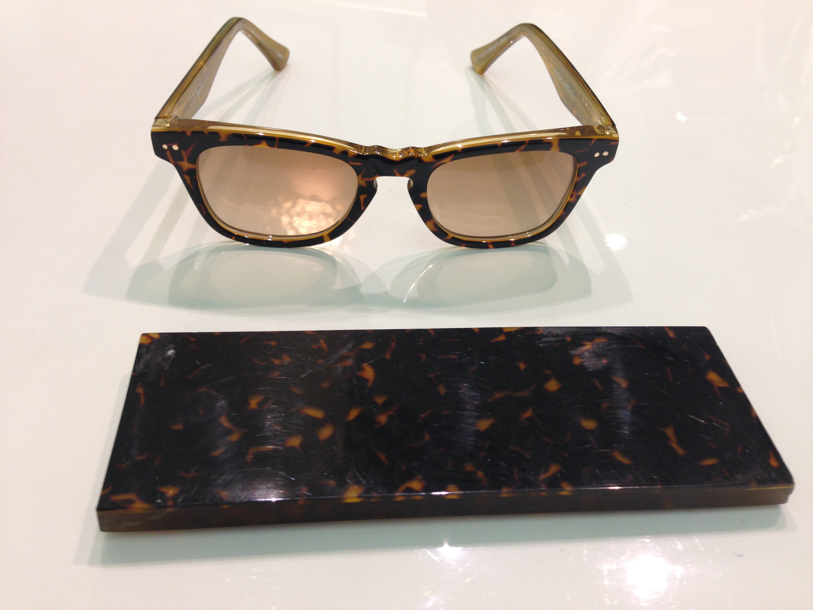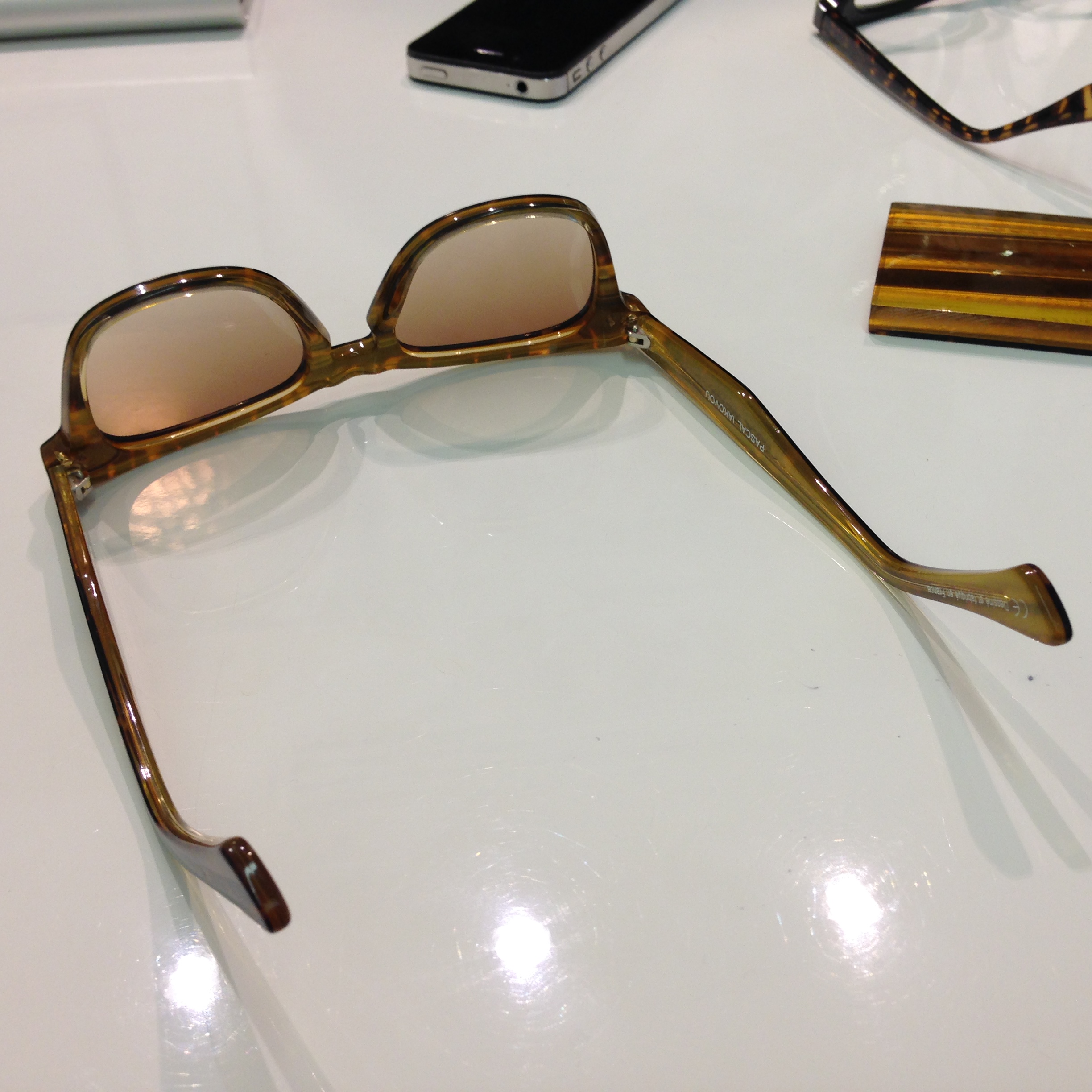 - Puis vient le jour J, le jour de la création ! Vous voulez des montures flash ou classique ? des lunettes un peu folles ou sages ? vous aimez des modèles en particuliers ? Toutes les folies créatives sont envisagées pour créer LA lunette qui vous correspond. Damien Fourgeaud répond à vos attentes et vos caprices. Pour ma part il s’agissait d’une fusion de la Wayfarer, d’une Persol, et d’un autre modèle que j’affectionnais sur un ton écaille de tortue.