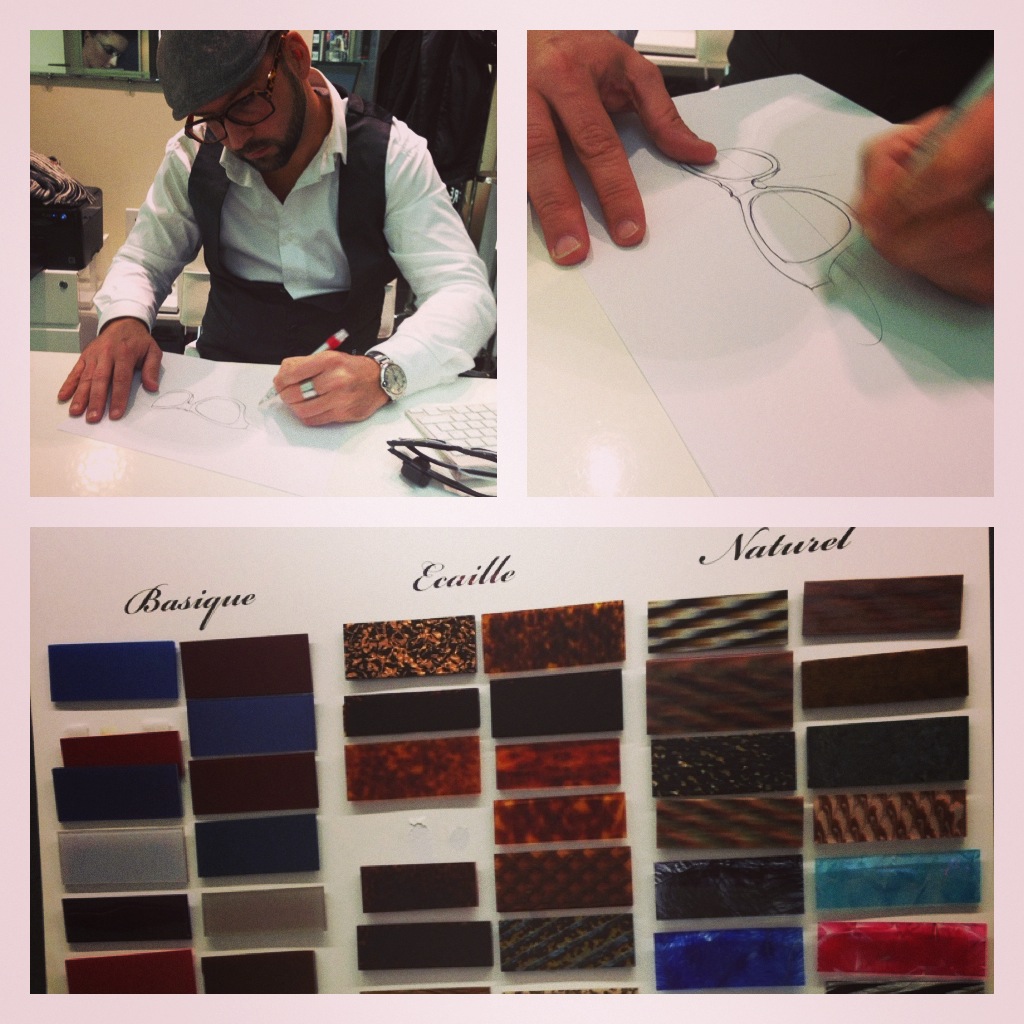 • Puis vient le jour J, le jour de la création ! Vous voulez des montures flash ou classique ? des lunettes un peu folles ou sages ? vous aimez des modèles en particuliers ? Toutes les folies créatives sont envisagées pour créer LA lunette qui vous correspond.  Damien Fourgeaud répond à vos attentes et vos caprices.  Pour ma part il s’agissait d’une fusion de la Wayfarer, d’une Persol, et d’un autre modèle que j’affectionnais sur un ton écaille de tortue.