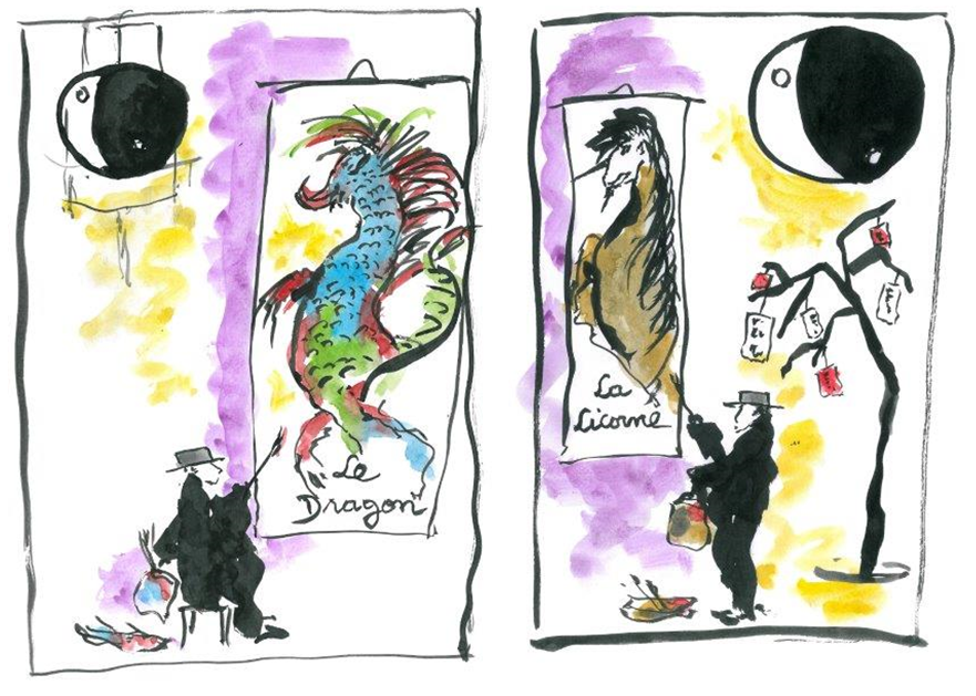 Hippolyte Romain pose ses valises jusqu’au 1er février à la Compagnie Française de l’Orient et de la Chine (CFOC). Avec son exposition « Contes Chinois sous la Lune », sur le thème du TAO, il nous emmène à la découverte de l’Asie.