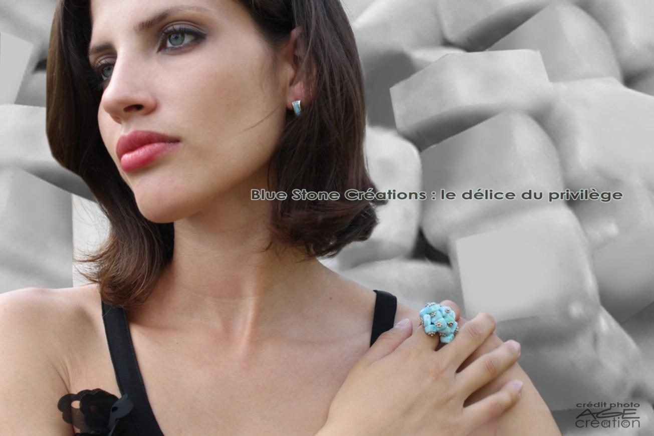 Blue Stone se démarque par son univers particulier et notamment grâce à la pierre Larimar. Cette pierre fine, très rare, est de couleur bleu lagon. Elle provient uniquement de République Dominicaine. Lancée il y a 5 ans, la marque est maintenant une référence du bijoux Larimar en France. C’est une pierre déjà très prisée aux Etats-Unis et en Asie pour sa couleur innovante. Montée sur de l’argent 925 ou du plaqué OR, le Larimar apporte une touche colorée et tendance aux créations.