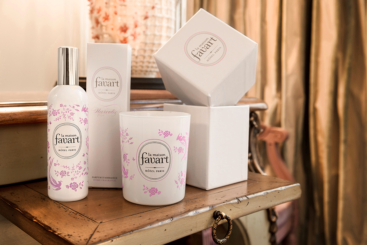 La bougie et le parfum d’ambiance sont en vente exclusivement à la Maison Favart dans le 2ème arrondissement de Paris.