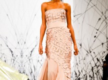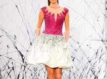 Georges Chakra a présenté sa nouvelle collection Printemps-Eté 2014, mercredi 22 janvier pour la Fashion Week de Paris. Son défilé fut très lumineux et haut en couleurs. Ses nouvelles créations mettent en valeur la féminité et la sensualité de la femme. Composées majoritairement de robes et de jupes aux drapés fluides, la fantaisie des création se mêle à l’élégance. Pas de noir au tableau mais une pétillante palette de couleur : orange, citron, rose, glycine, fuchsia, vert d’eau mais aussi des pastels et des blancs. Un défilé somptueux pour nos yeux.