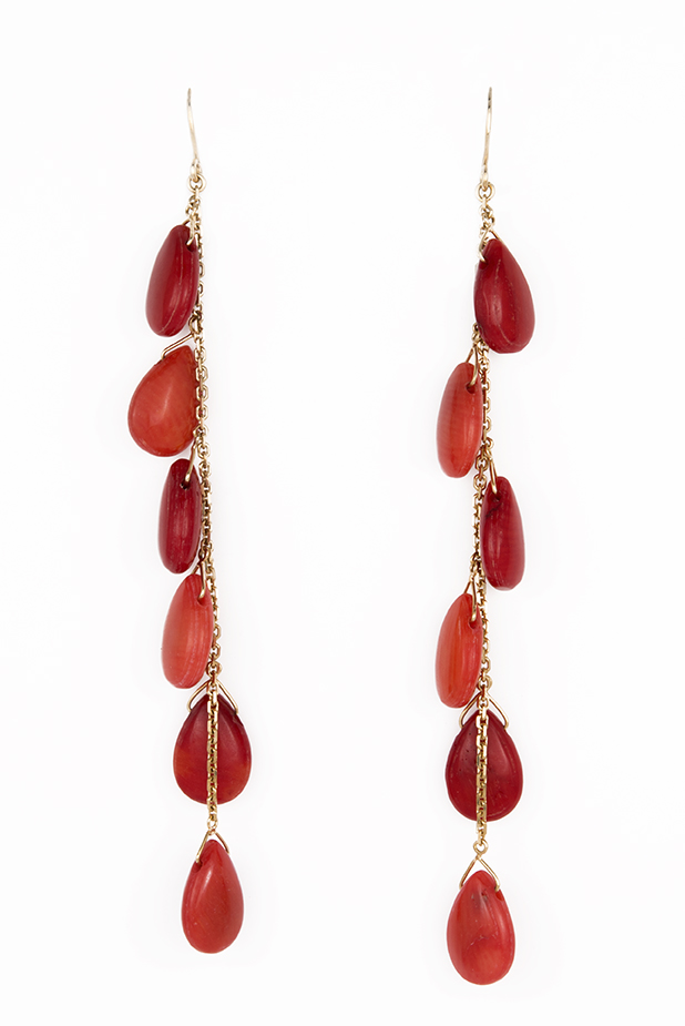 DAN003 - Danseuses - Earrings - Red & Orange Coral on 18k Yellow Gold