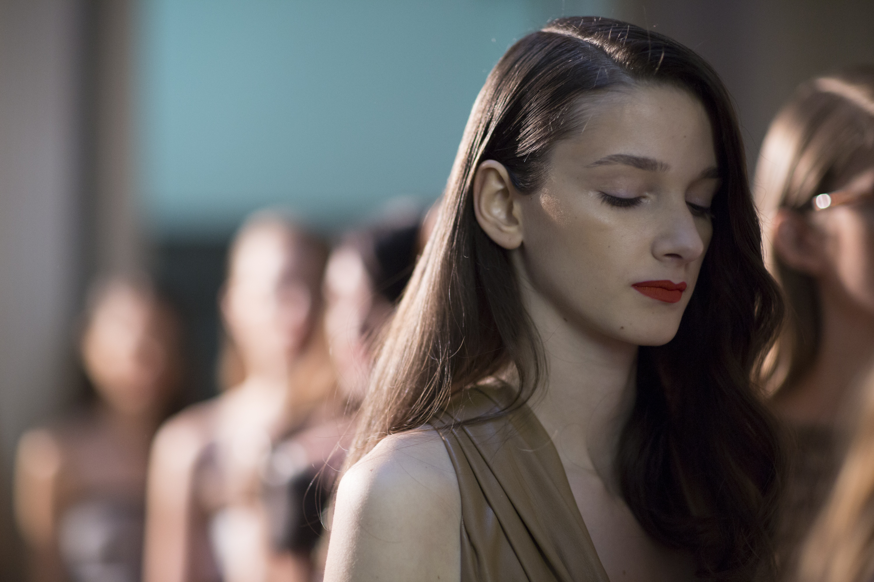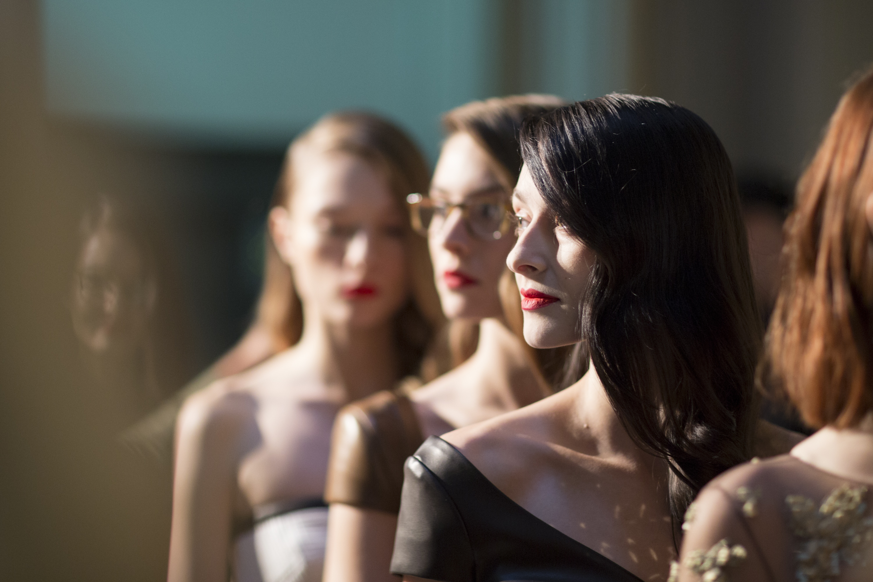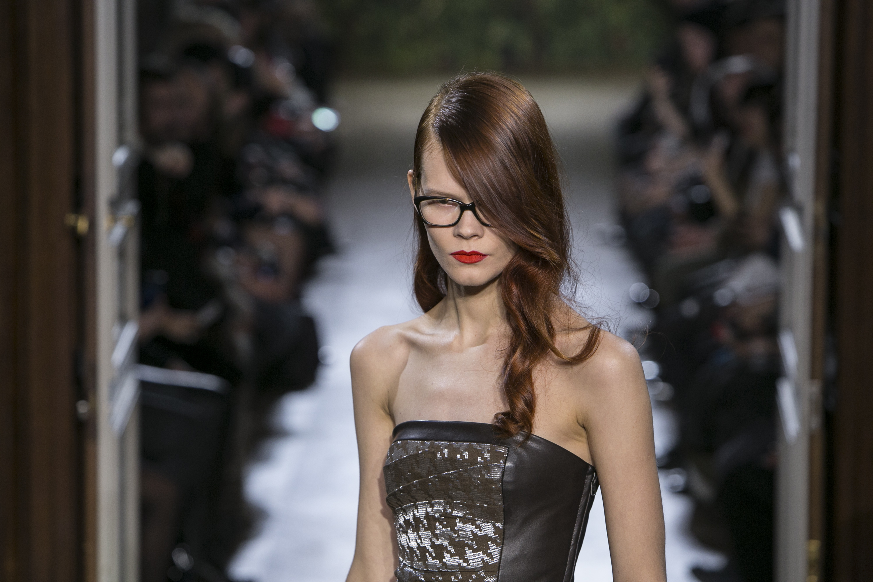 Il y a les épaules étroites, la taille marquée, la coupe au cordeau. Il y a la féminité à fleur de peau, la chair nue révélée au gré d’un décolleté, le volume d’une jupe trapèze légère comme un souffle. Qu’importe les réminiscences d’une décennie fifties ou les sensations d’une escapade à Napa Valley, les couleurs d’une saison californienne impriment subtilement cette couture parisienne affranchie de toute tentation vintage.