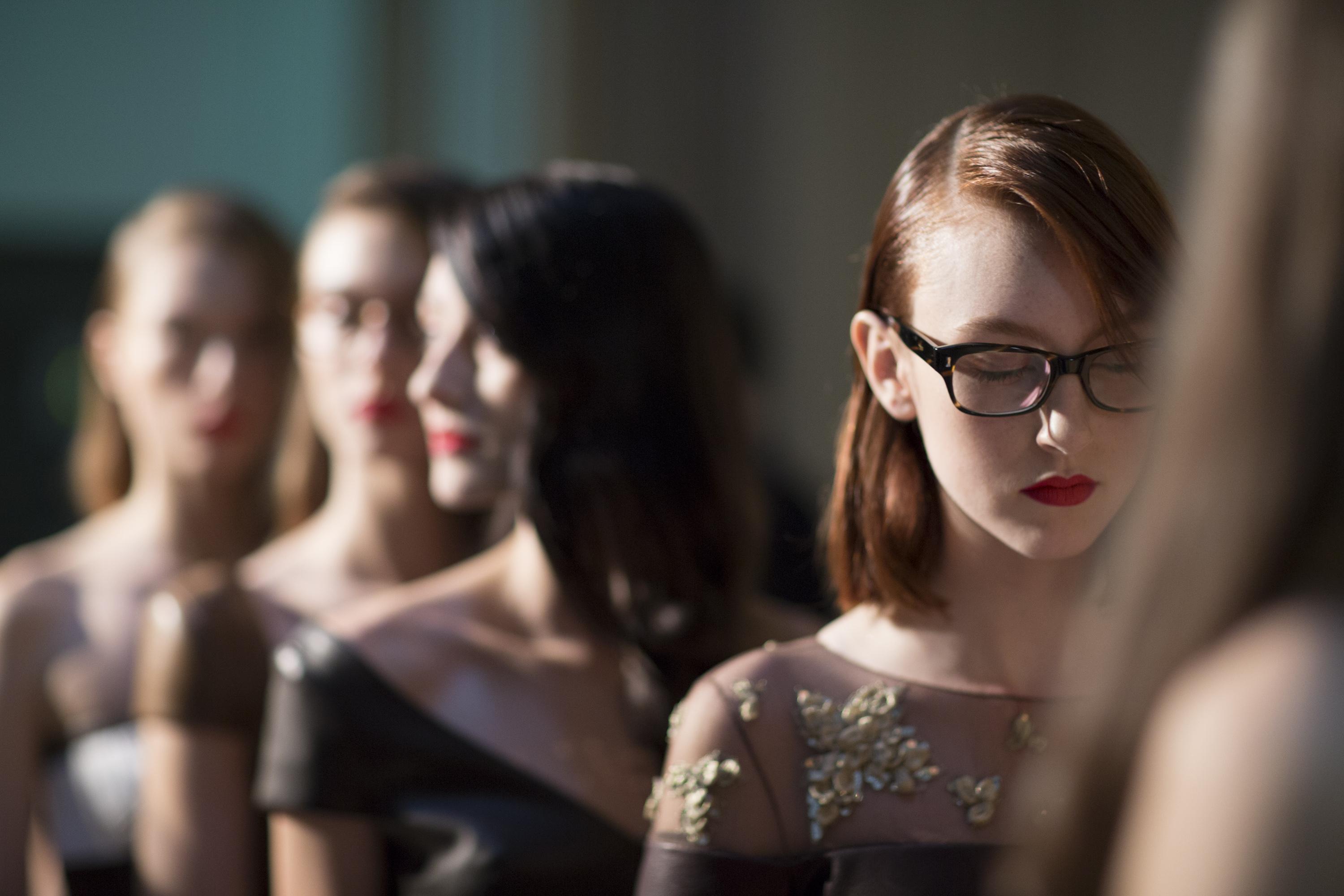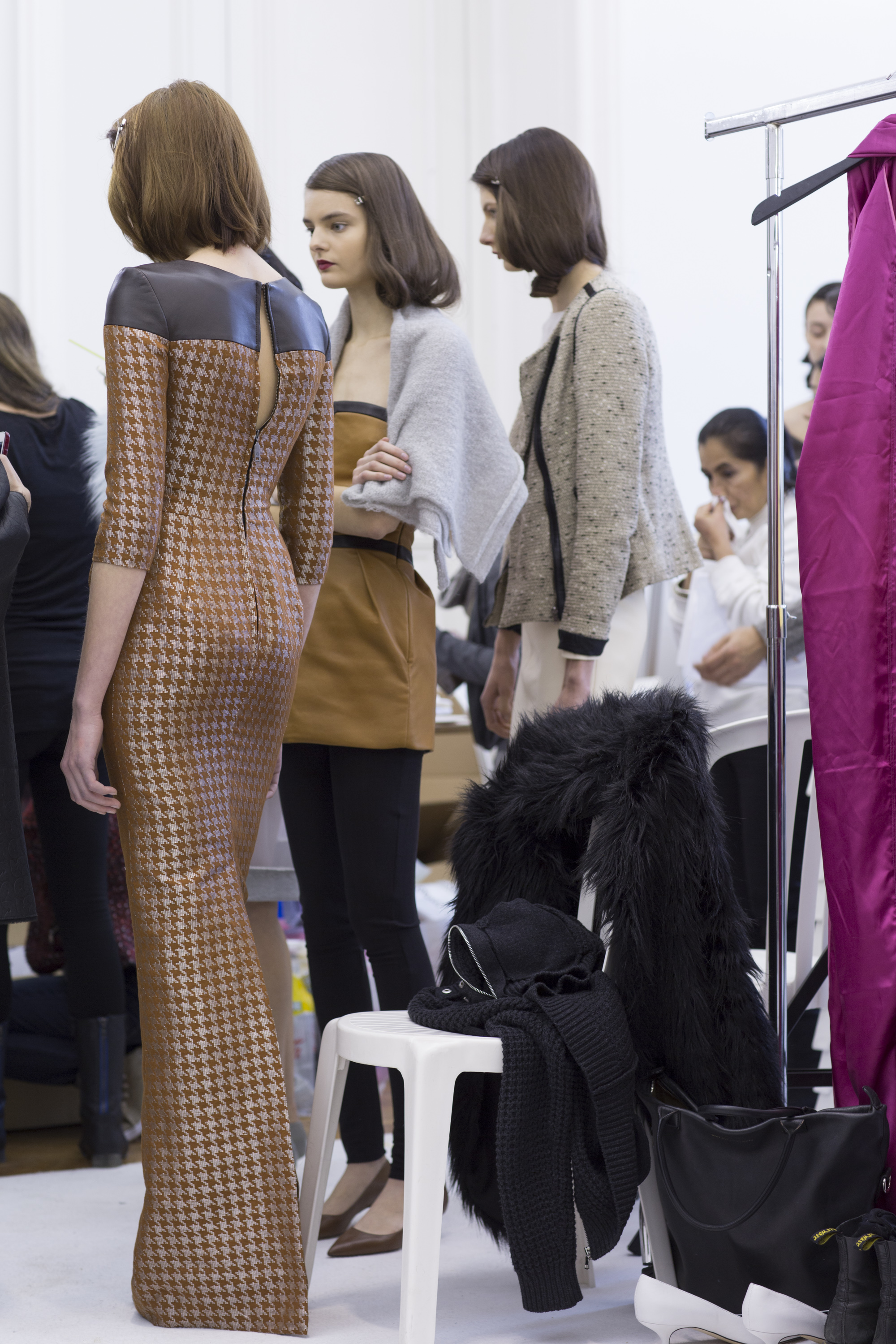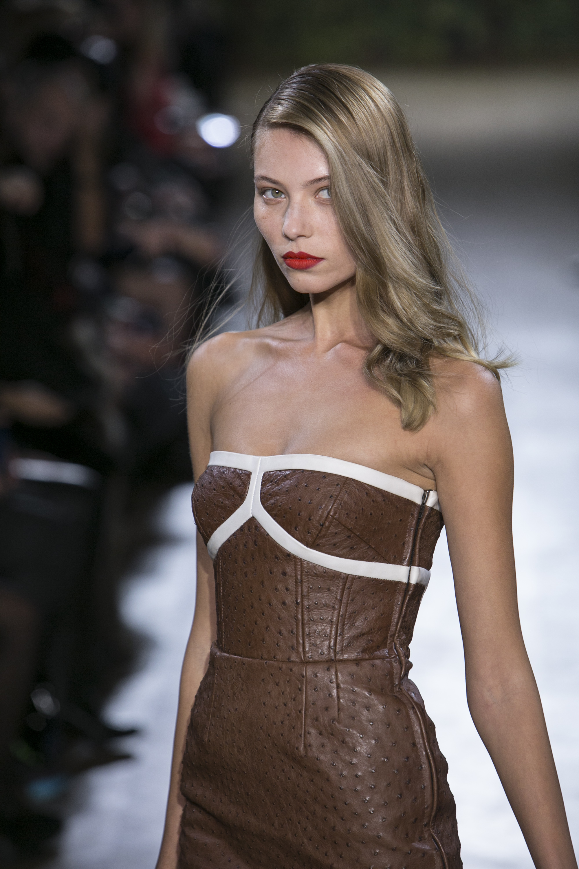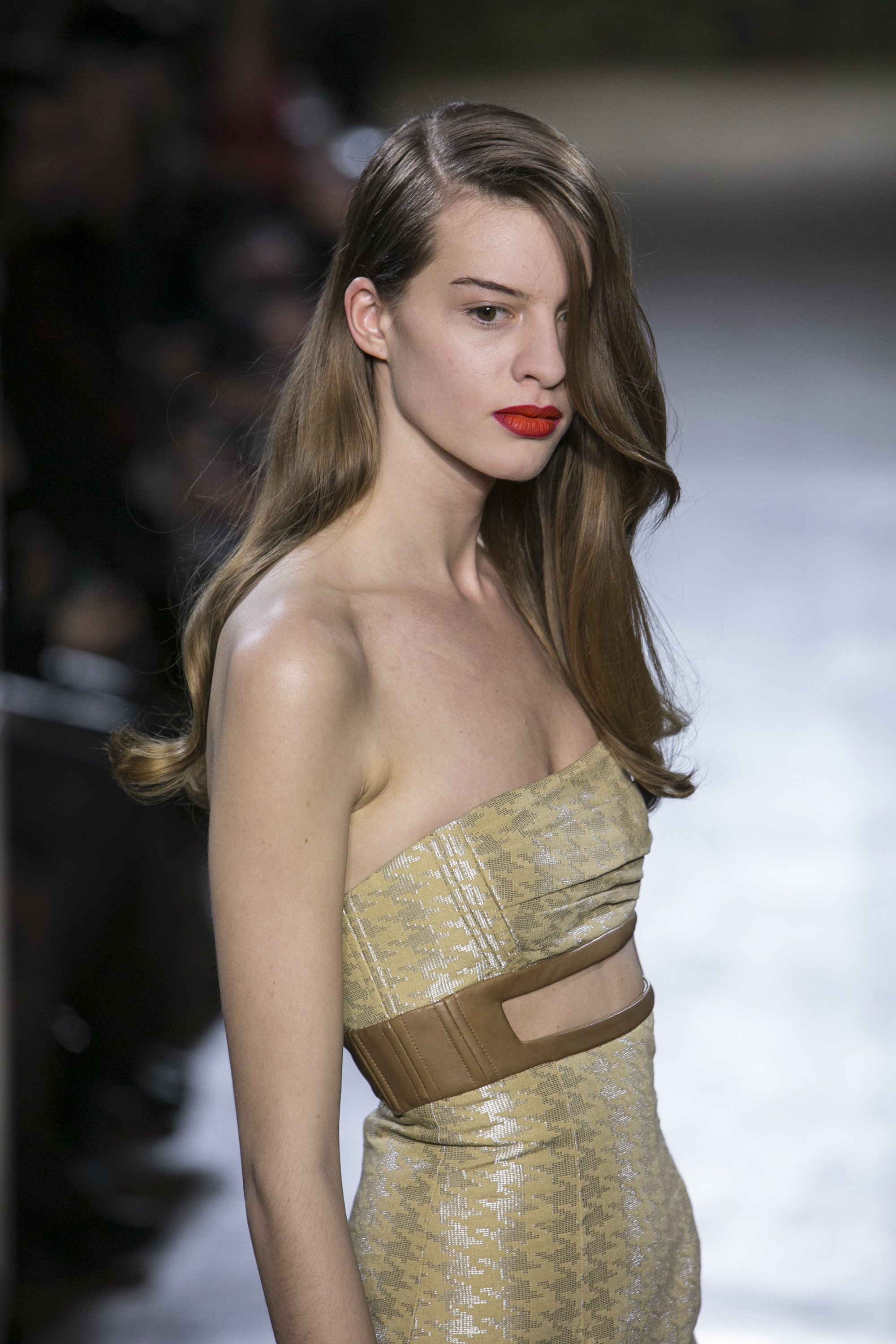 Il y a les épaules étroites, la taille marquée, la coupe au cordeau. Il y a la féminité à fleur de peau, la chair nue révélée au gré d’un décolleté, le volume d’une jupe trapèze légère comme un souffle. Qu’importe les réminiscences d’une décennie fifties ou les sensations d’une escapade à Napa Valley, les couleurs d’une saison californienne impriment subtilement cette couture parisienne affranchie de toute tentation vintage.