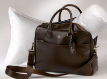Vendu dans un sac de cuir marron italien élégant, l’oreiller de voyage se compose d’un oreiller en 70% duvet, 30% plumettes de canard neuf ainsi que d’un cale-nuque du même type de garnissage. La rolls de l’oreiller, avec un style de dandy. Idéal.