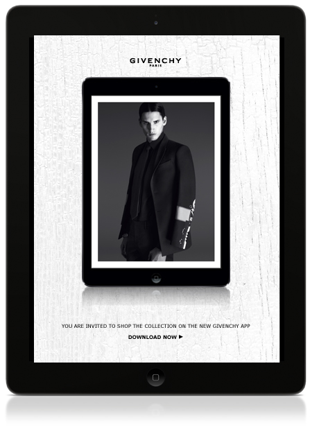 Givenchy inaugure sa e-boutique homme disponible sur mobiles et tablettes avec la collection Printemps/Eté 2014.
