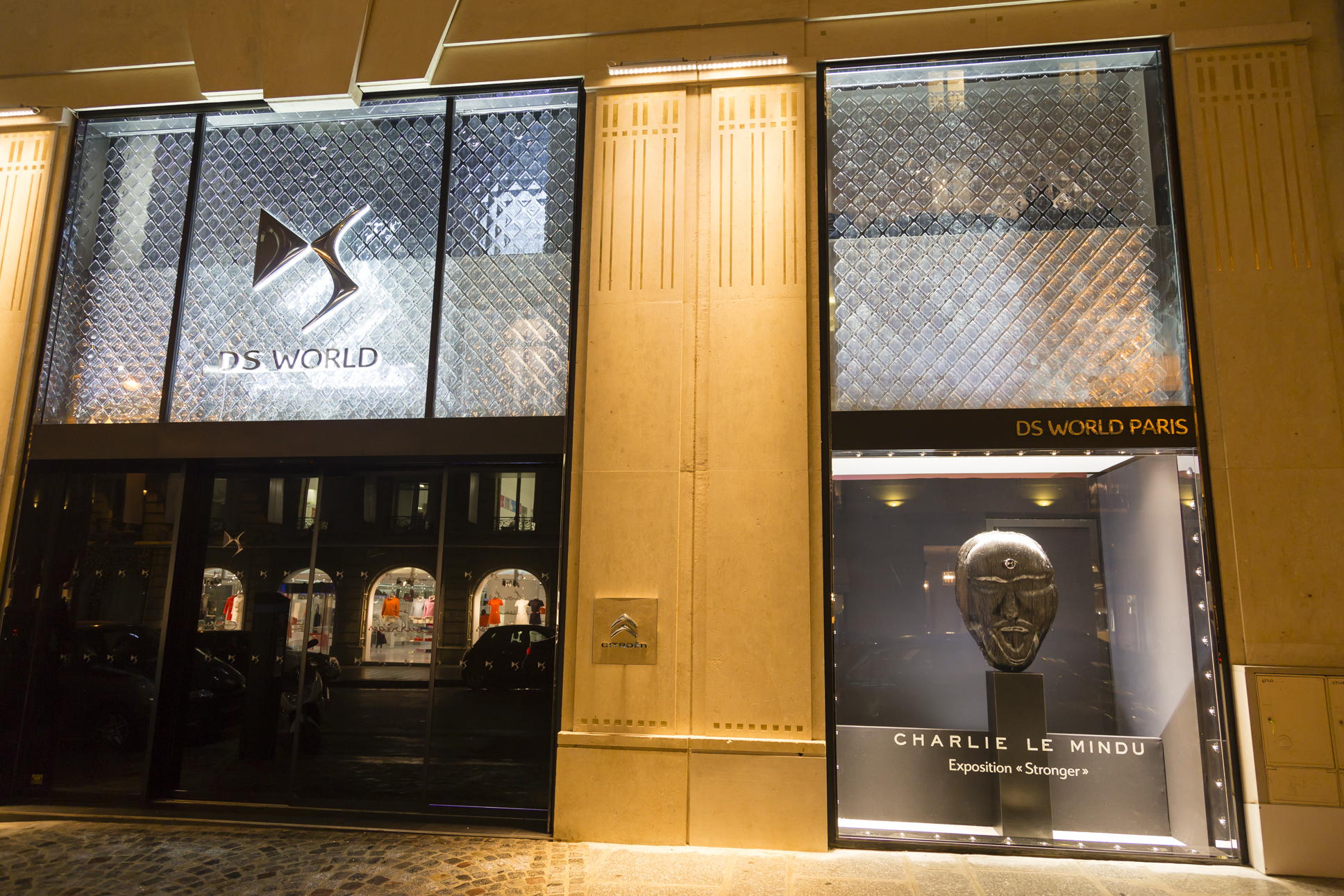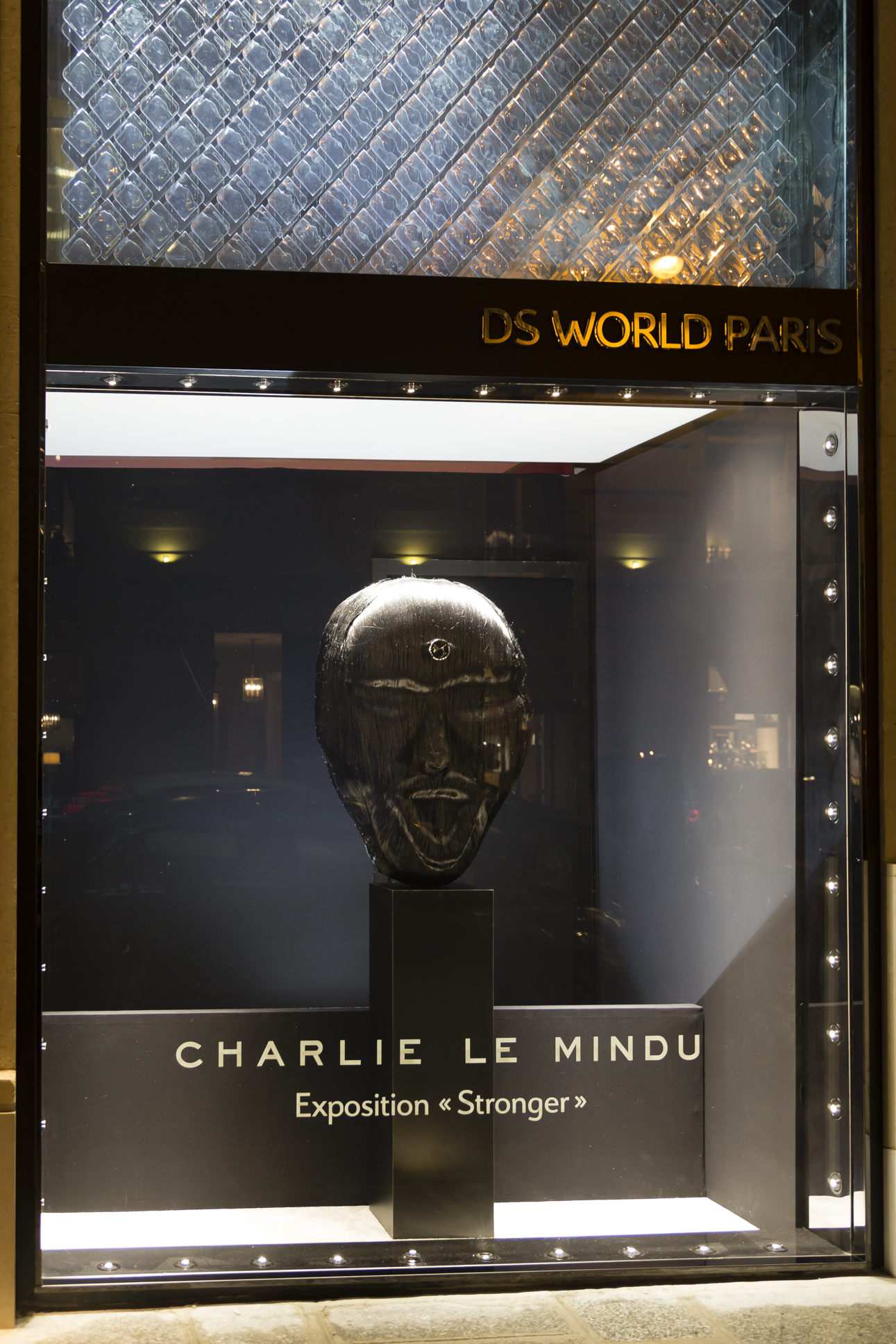 En vitrine, il donne sa vision de l’univers DS au travers d’un masque extravagant. « Cette création unique est ma ‘Déesse DS’. La femme DS est pour moi une femme élégante, forte et originale à la fois et cette sculpture en est ma vision ». Pour Julien Faux, Directeur du DS WORLD PARIS, « nous sommes heureux d’accueillir Charlie Le Mindu et son oeuvre inédite spécialement conçue pour la vitrine du DS WORLD PARIS. Charlie Le Mindu inaugure notre programmation 2014 et donne le ton pour la suite des événements dont l’audace, la créativité et le raffinement seront toujours de mise. »