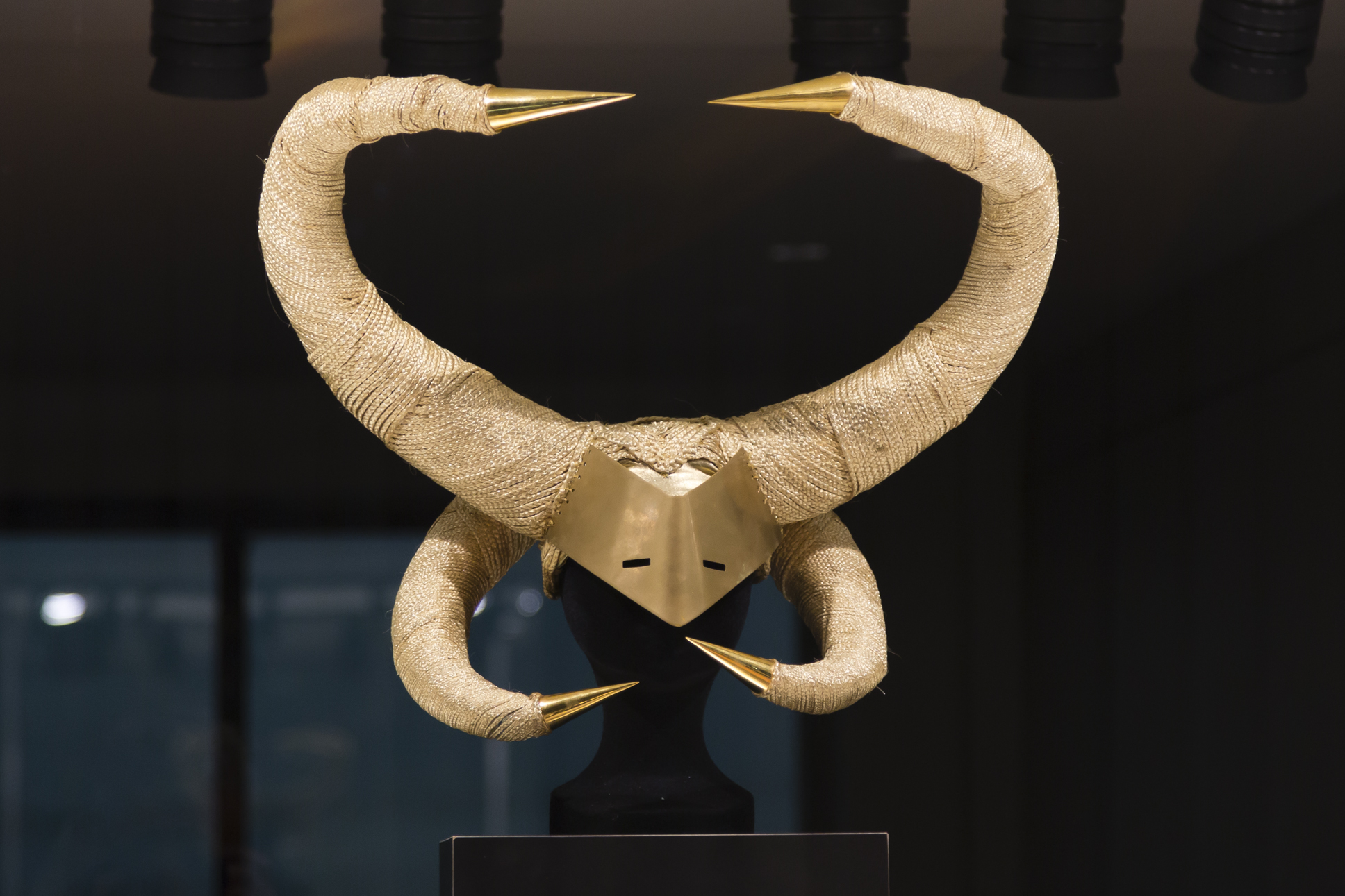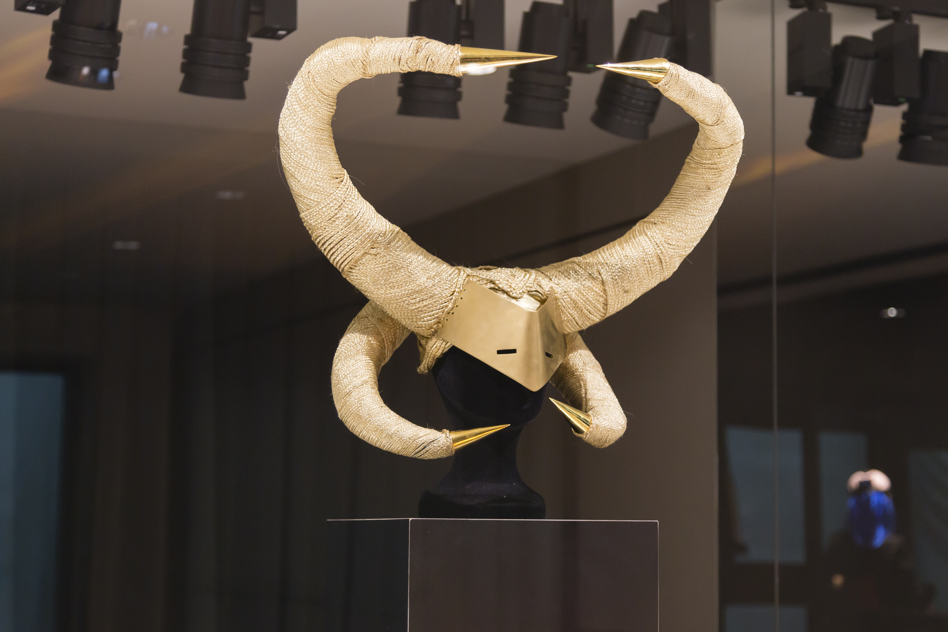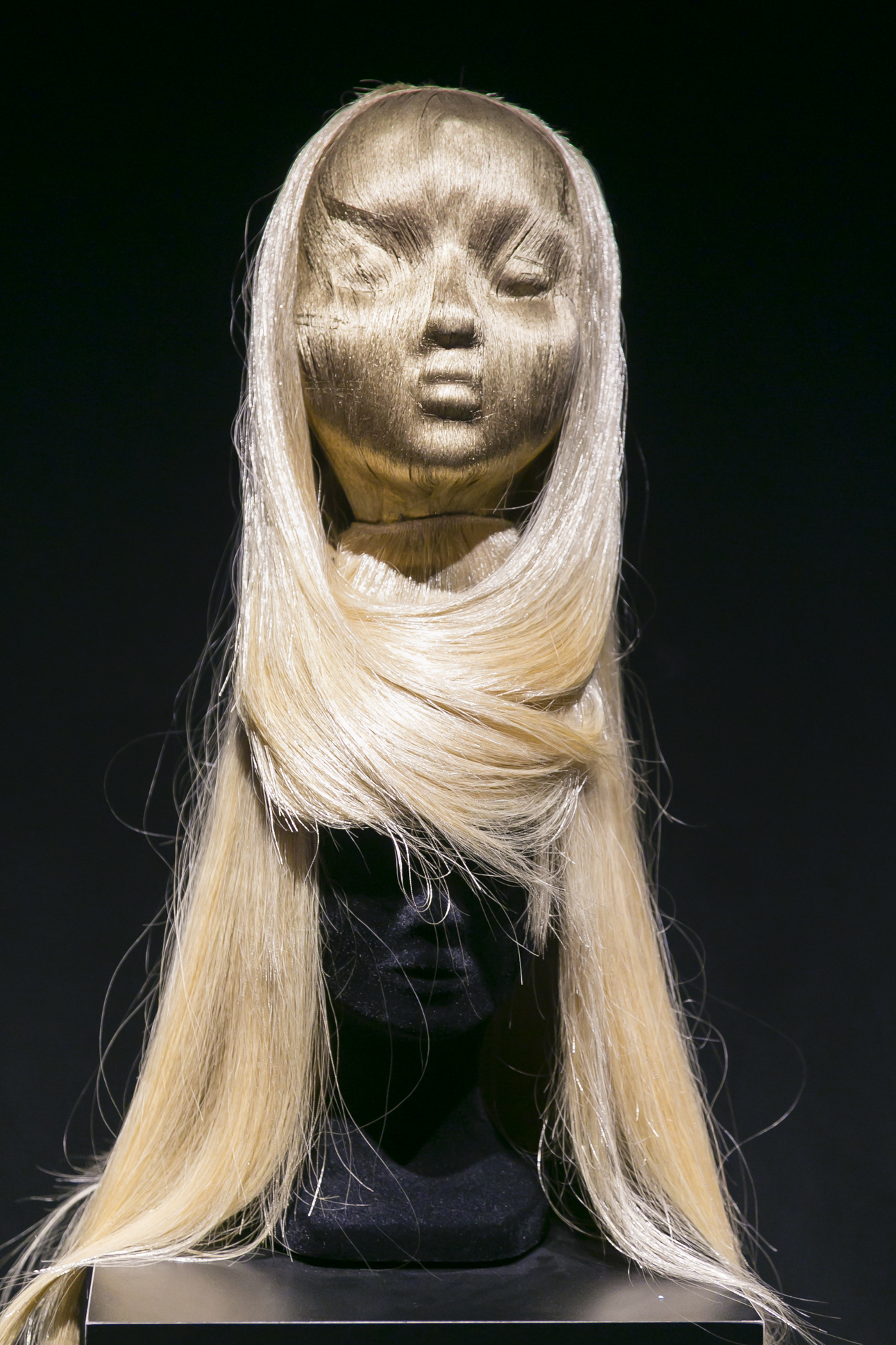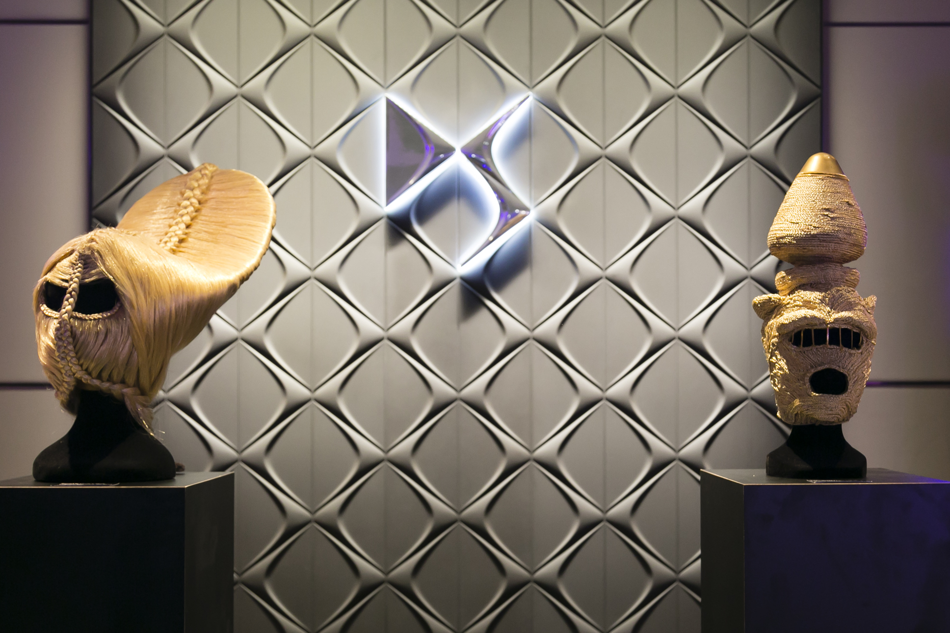 « Le DS WORLD PARIS est un lieu idéal et atypique, un écrin pour mes Déesses. L’incarnation de femmes de pouvoir et de séduction » commente Charlie Le Mindu. Coupes afro XXL, masque tribal traditionnel, sculptures de cheveux démesurées… autant de créations inspirées de masques et statues traditionnels d’Afrique sub-saharienne et de la fameuse reine de Saba qui représente pour lui la femme de pouvoir par excellence. « J’ai choisi cette teinte dorée et chaude pour mettre en lumière une nouvelle technique consistant à tremper chaque cheveu naturel dans de la peinture dorée pour leur offrir un rendu métallique » explique Charlie Le Mindu.