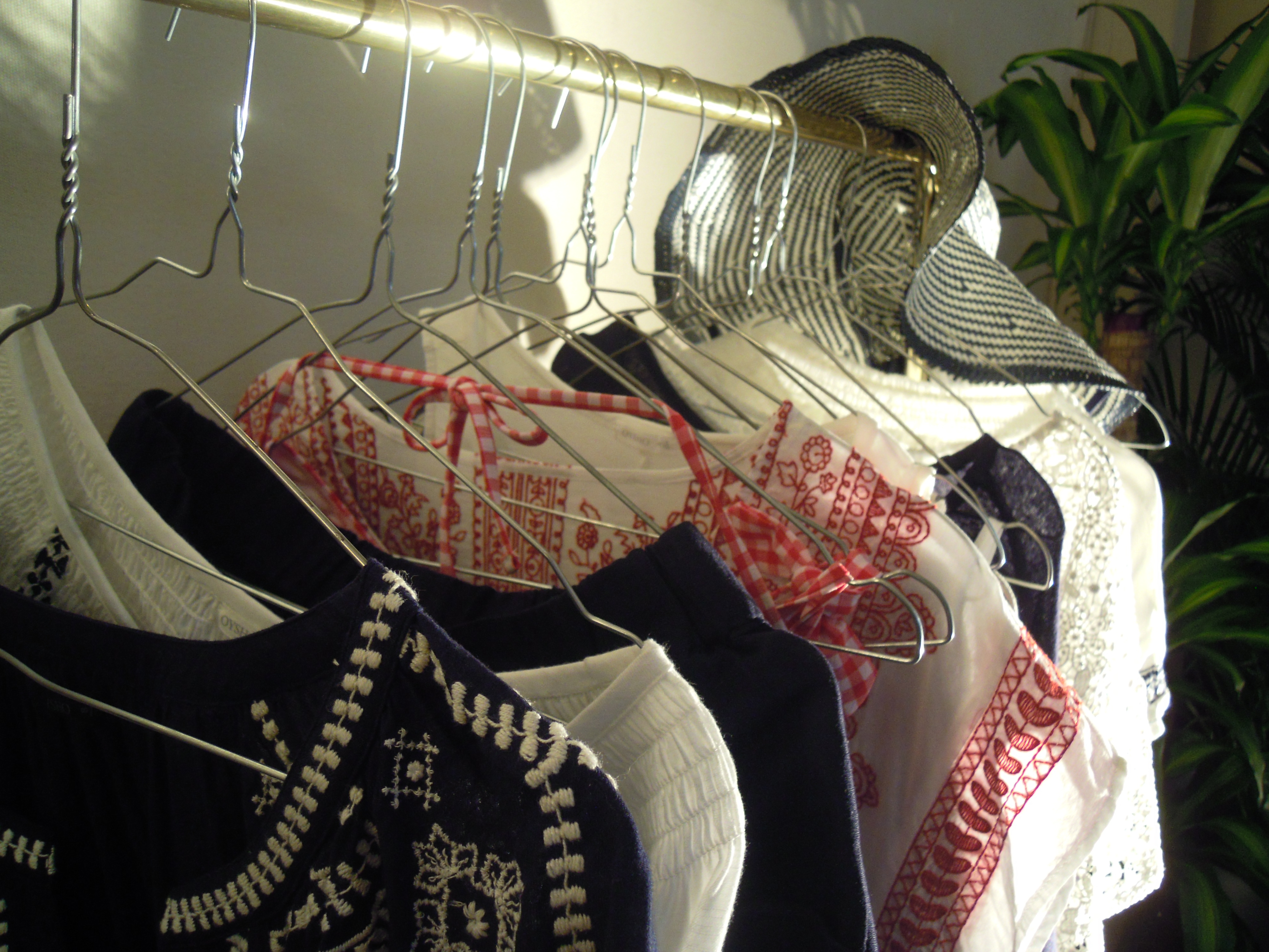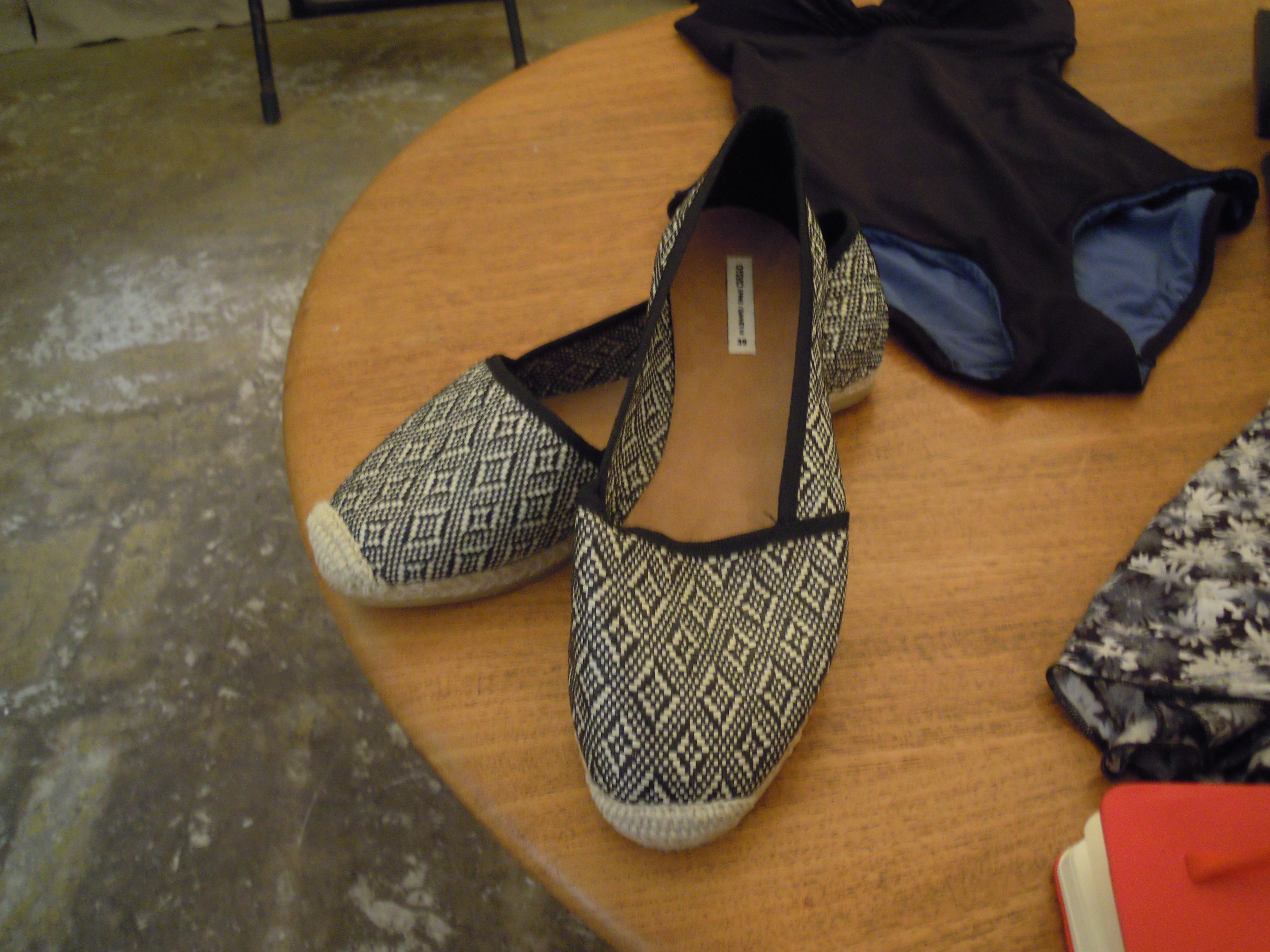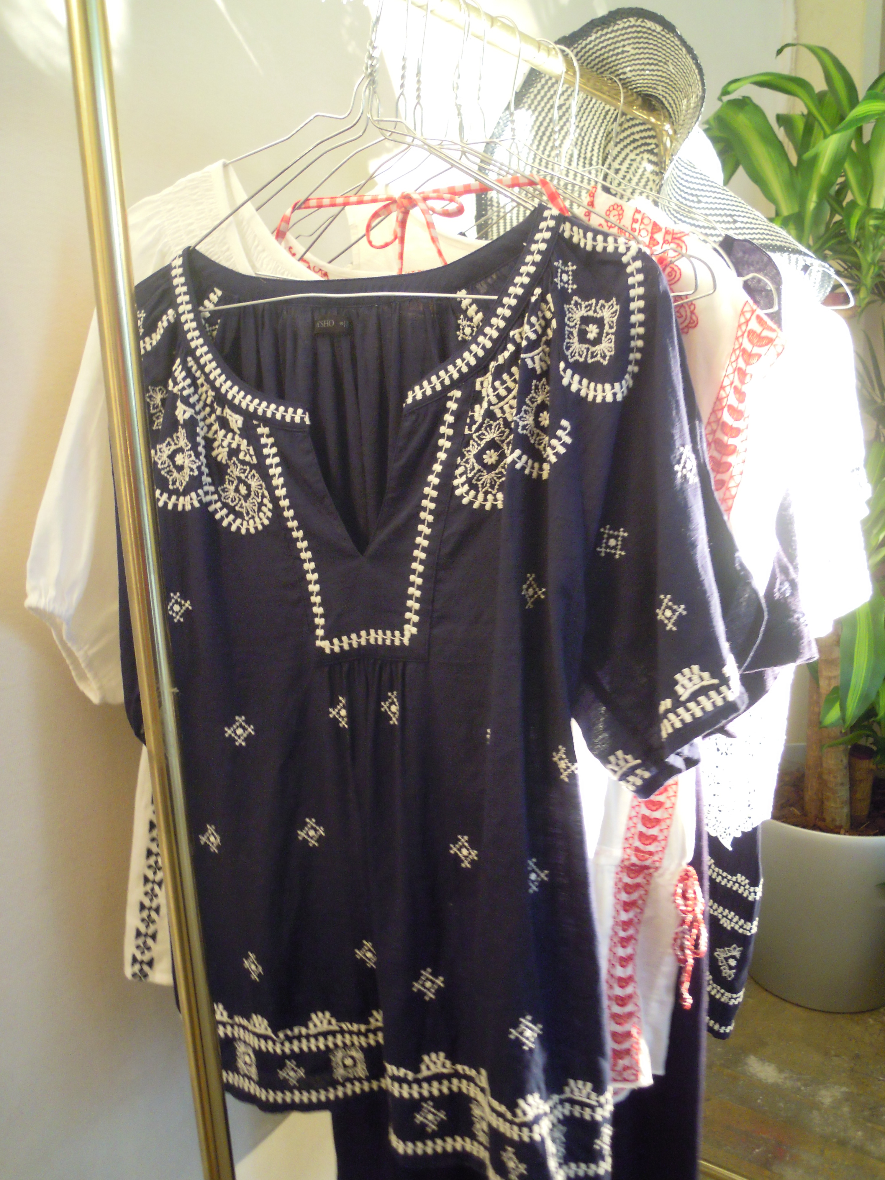 Côté chaussures, la tendance est à l’espadrille, que cela soit en baskets ou en forme classique. Les détails sont là encore très importants, avec ce travail de tissage et de broderie. Les couleurs sont d’un côté solaires, avec du jaune, du rose, du rouge et une touche de bleu, et de l’autre plus classiques, avec du bleu, du rouge et du blanc. Autre pièce phare, ce haut entièrement brodé très finement !