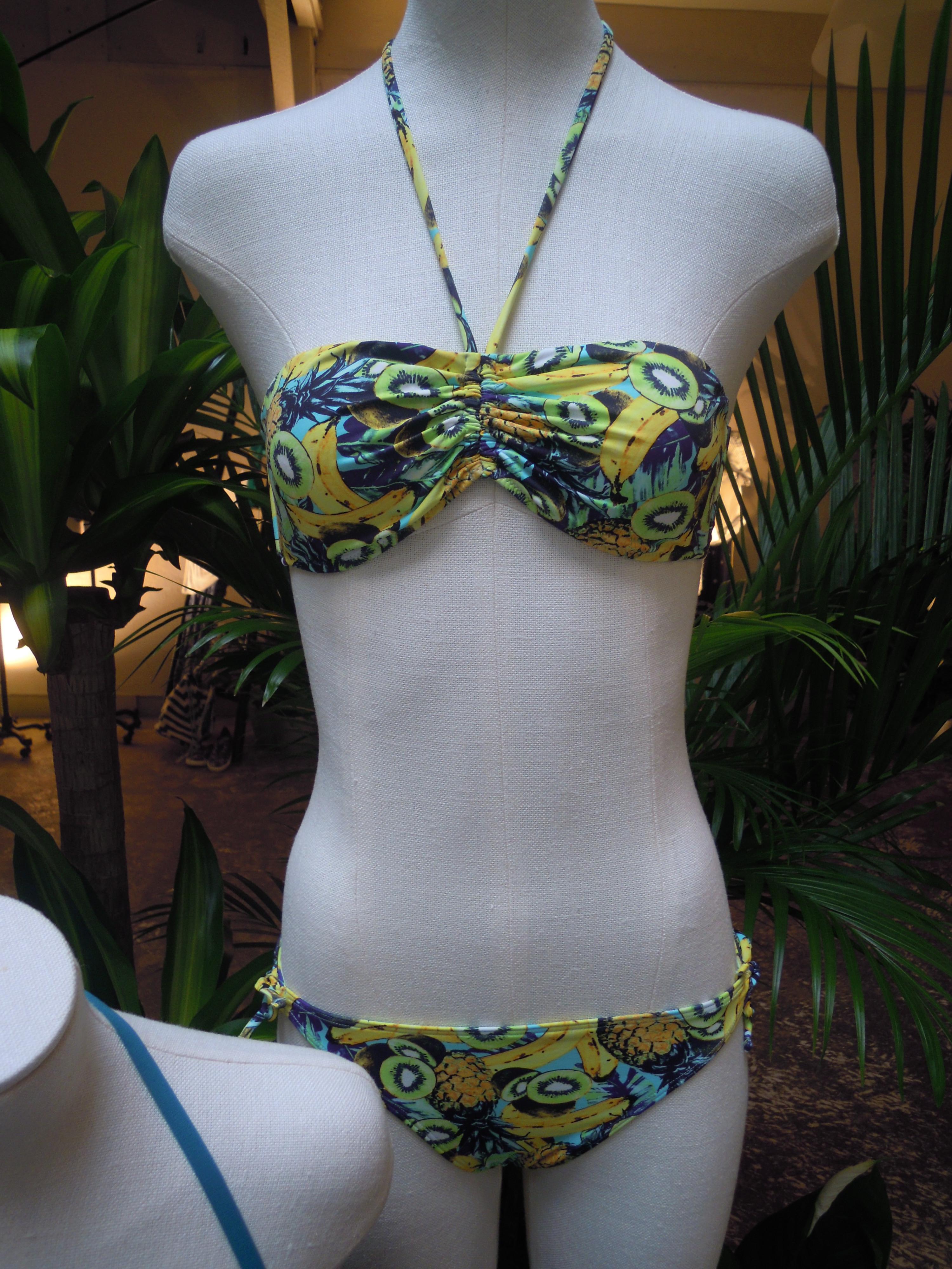 Pour la plage, Oysho s’est inspiré de la tendance tropicale et fruitée ; On retrouve ainsi sur les maillots de bain une salade de fruits, avec des kiwis, des bananes et des citrons, accompagnés de détails volantés qui donnent de la fantaisie aux maillots. Les autres maillots de bain, unis, se démarquent par leurs drapés flatteurs sur la poitrine.
