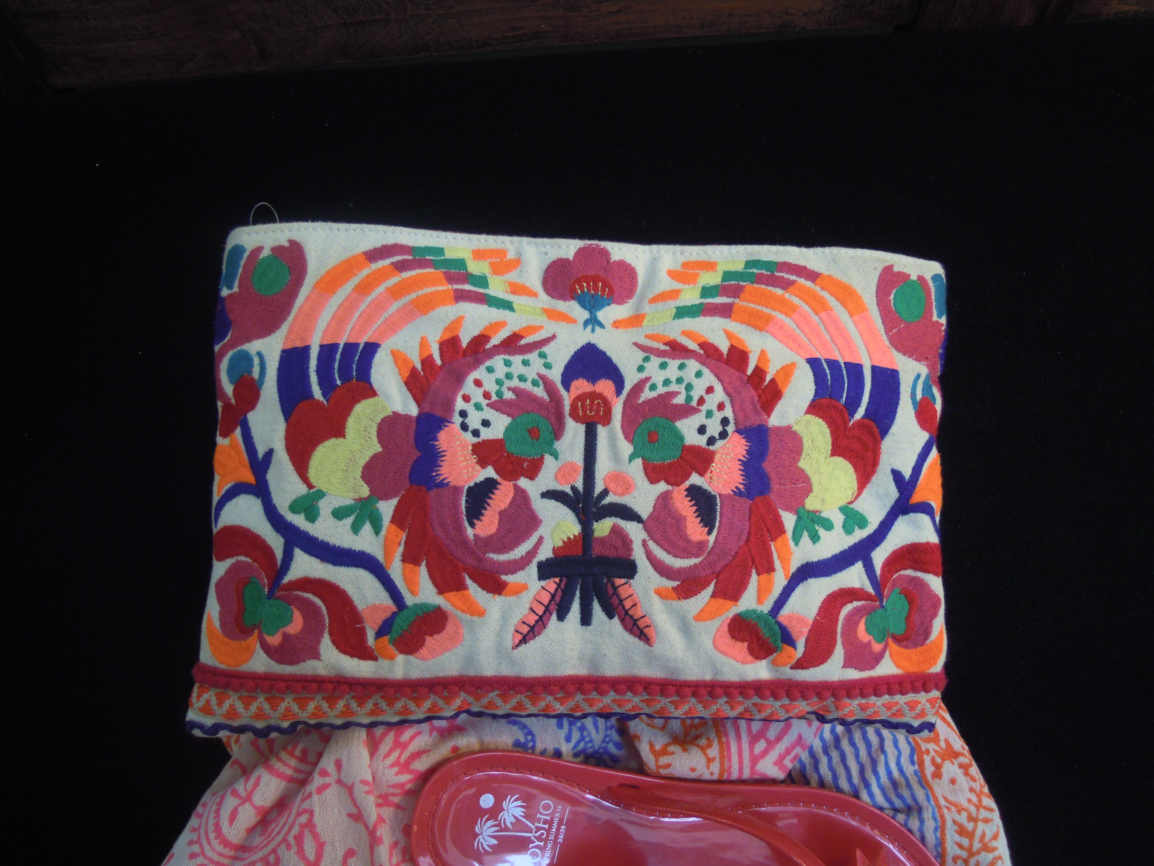 D’un autre côté, le beachwear s’envole pour le Mexique et nous donne envie de soleil et de plages ; les imprimés navajo et ethniques sont flashy et très travaillés. La pièce phare de Luxsure, cette pochette rebrodée très mode !