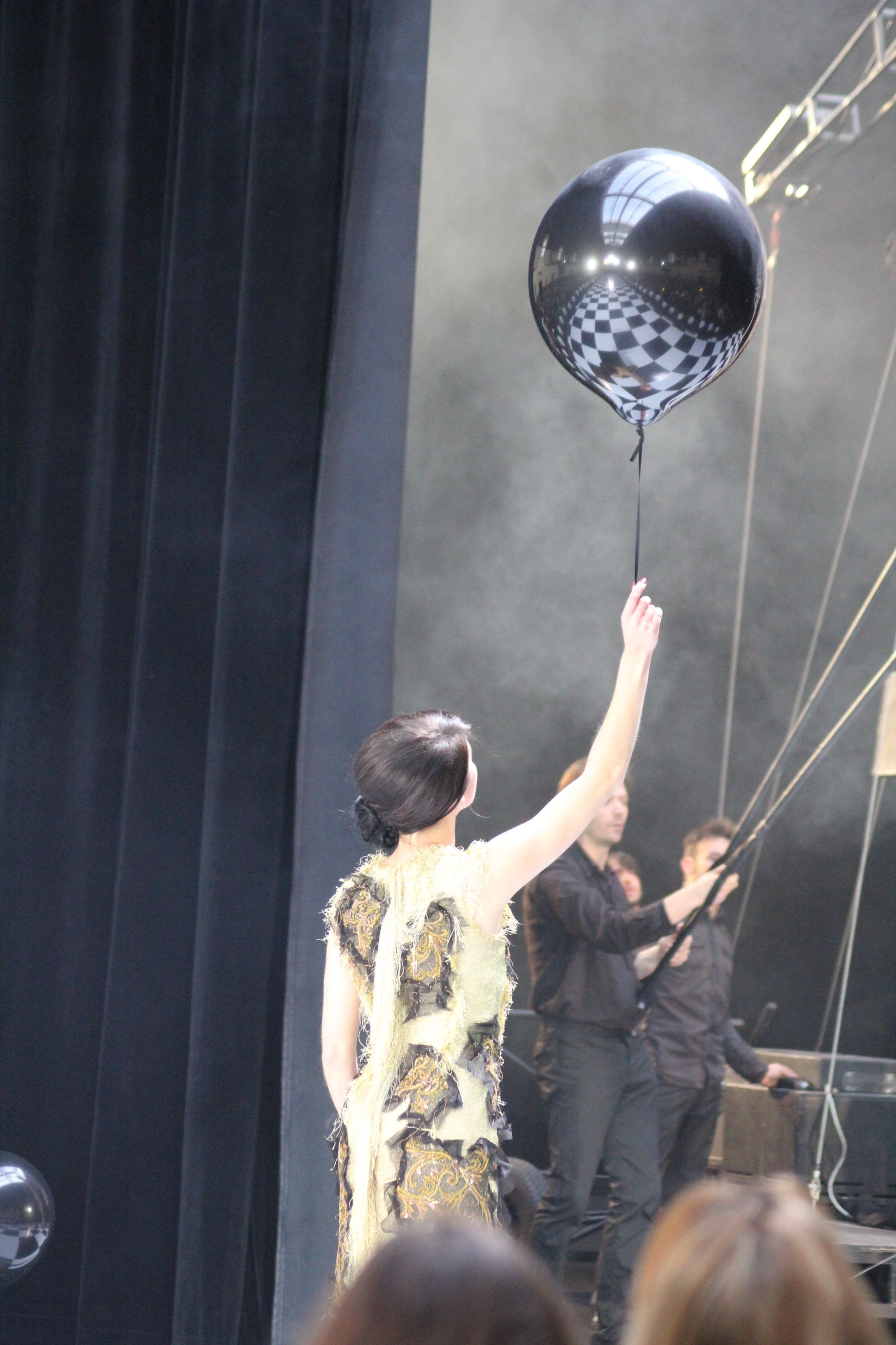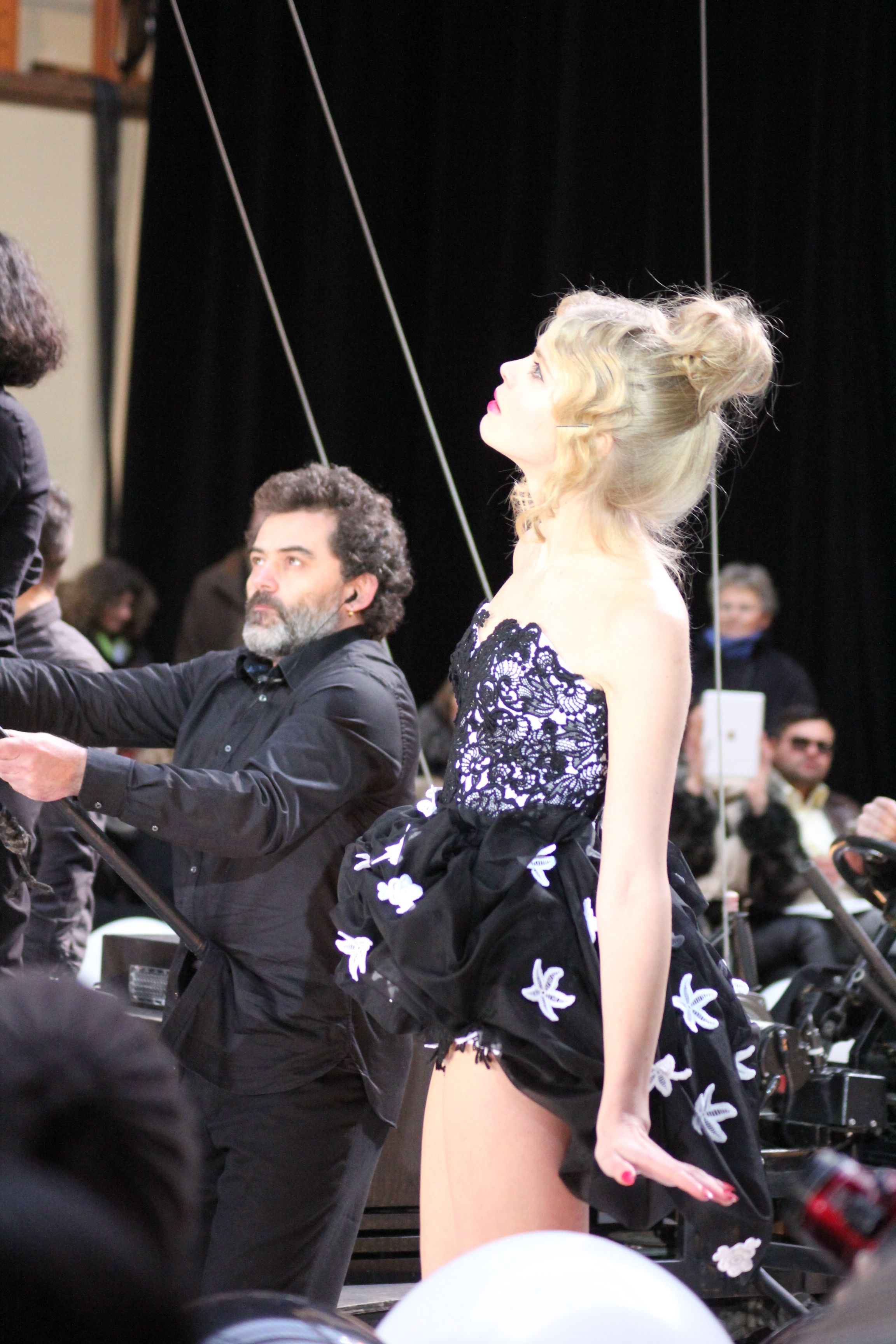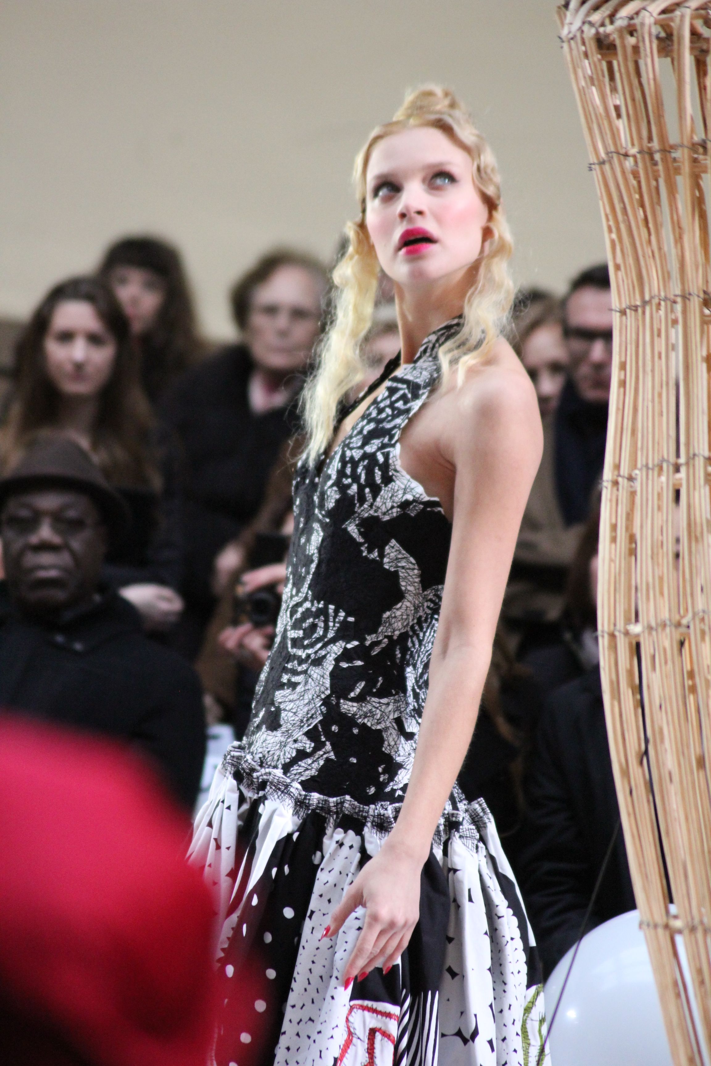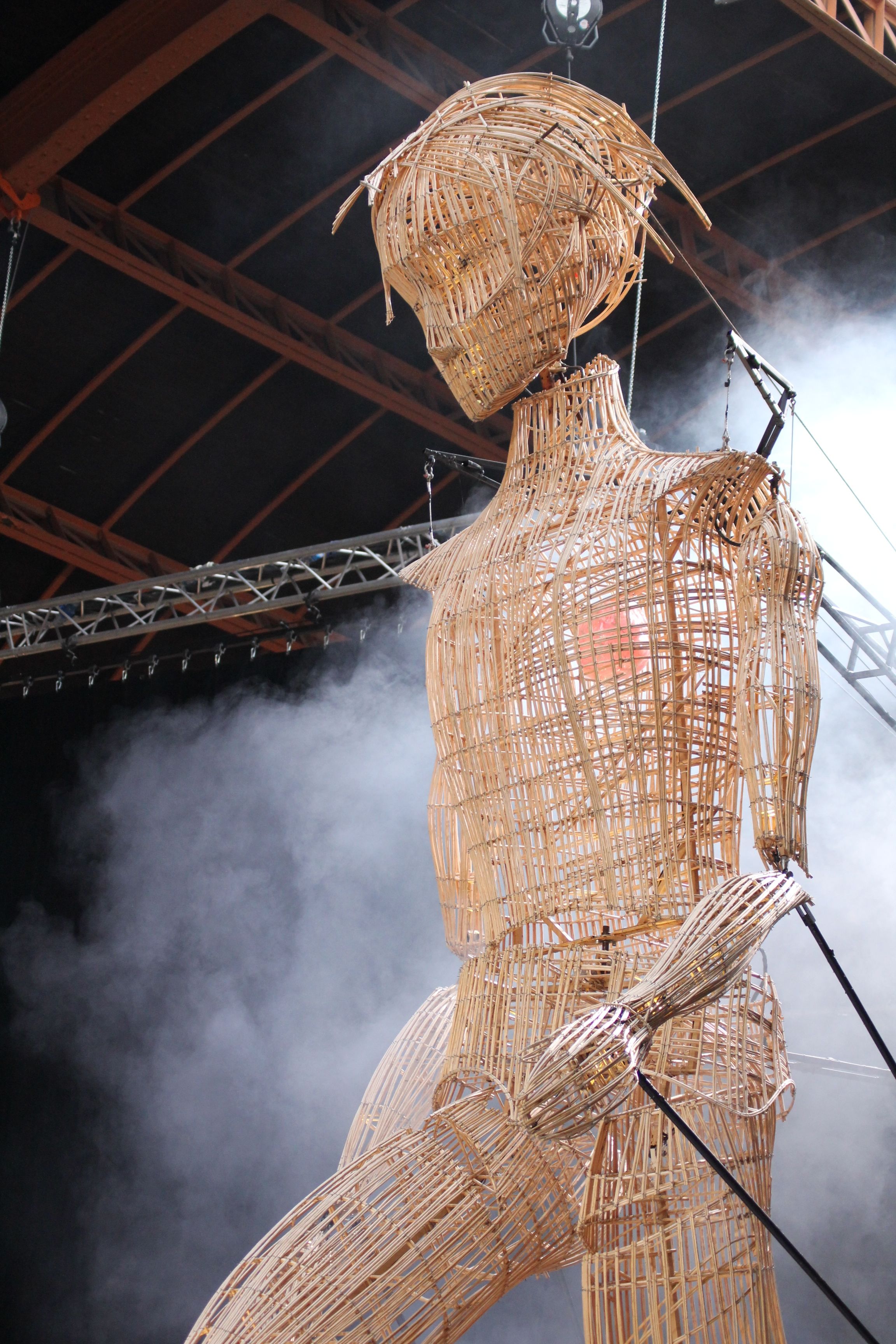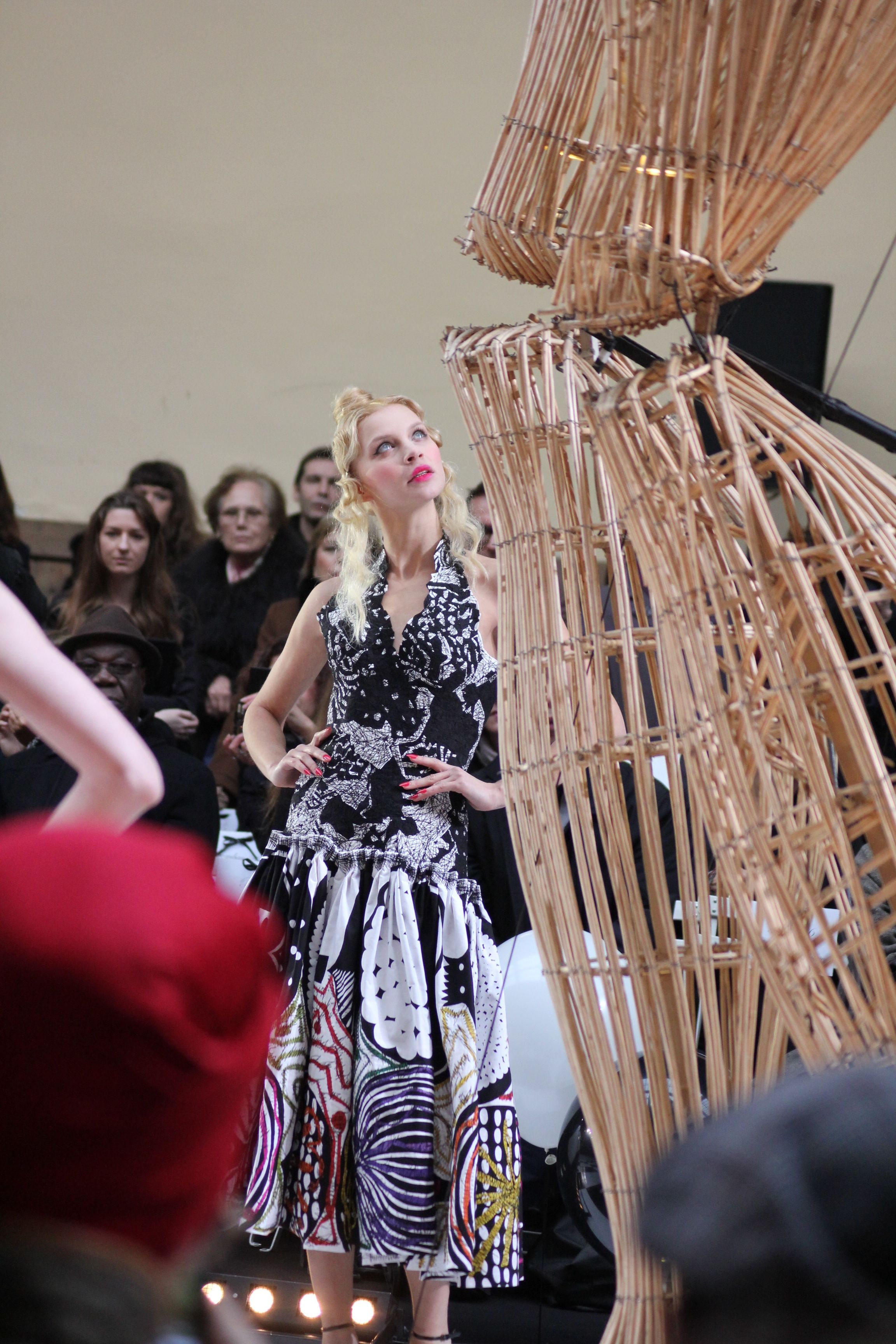 Le rideau s’ouvre et laisse place à un automate en osier géant, articulé et manoeuvré par la compagnie de L’homme Debout et accompagné de la chanteuse néo-zélandaise Kimbra qui donne l’ouverture aux mondes merveilleux de Franck Sorbier.