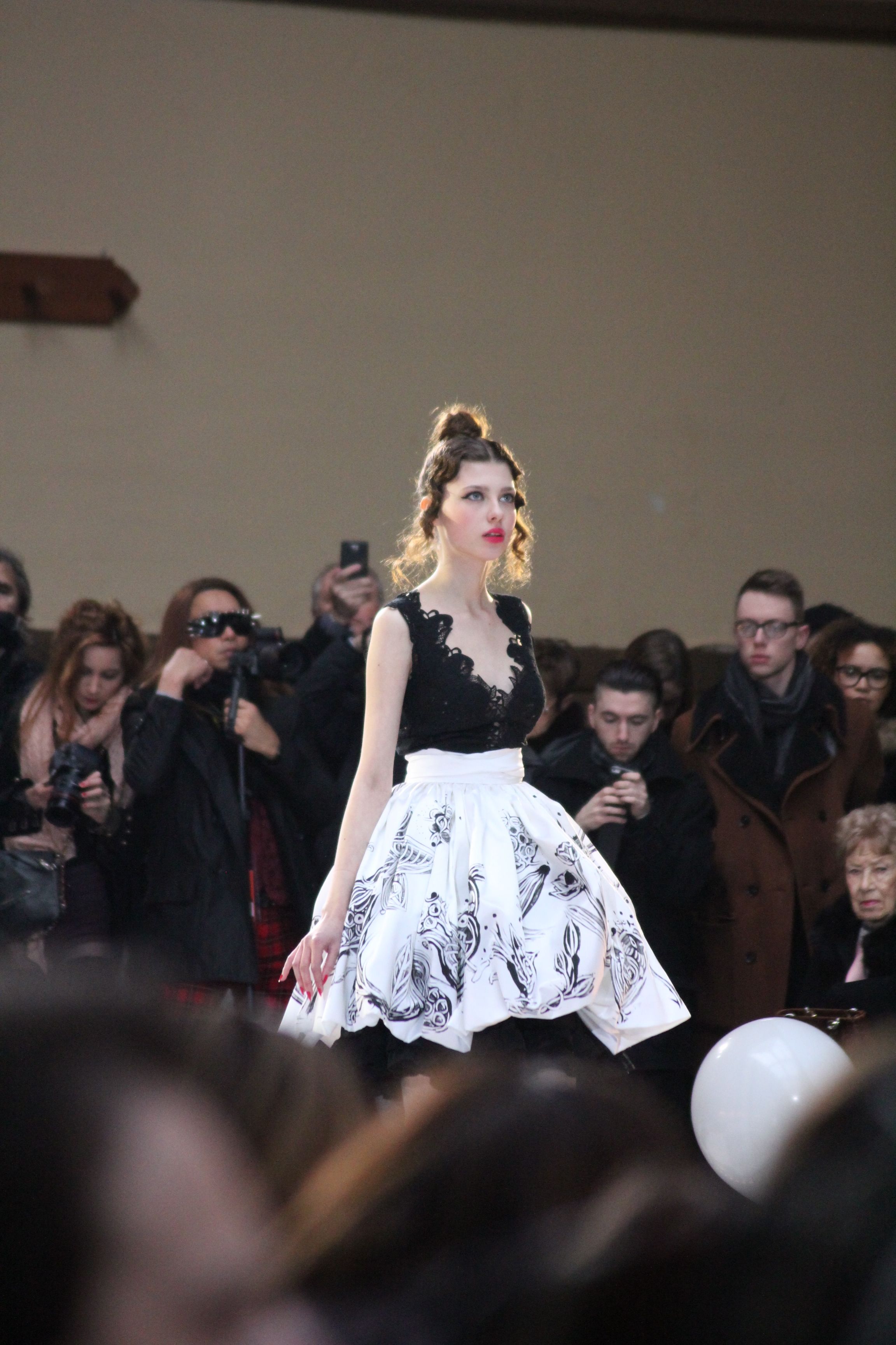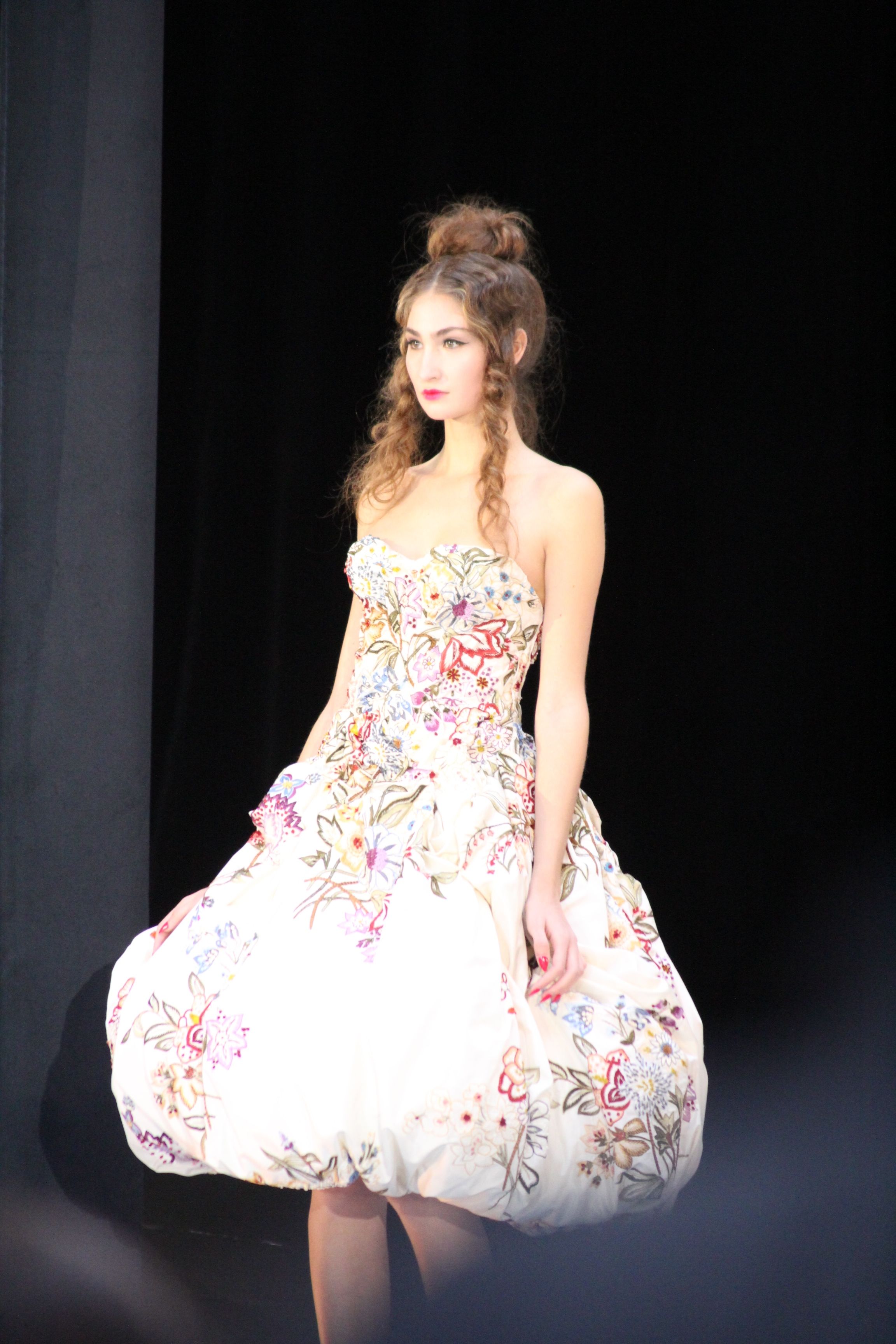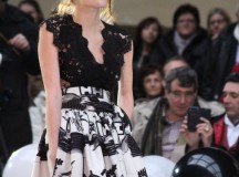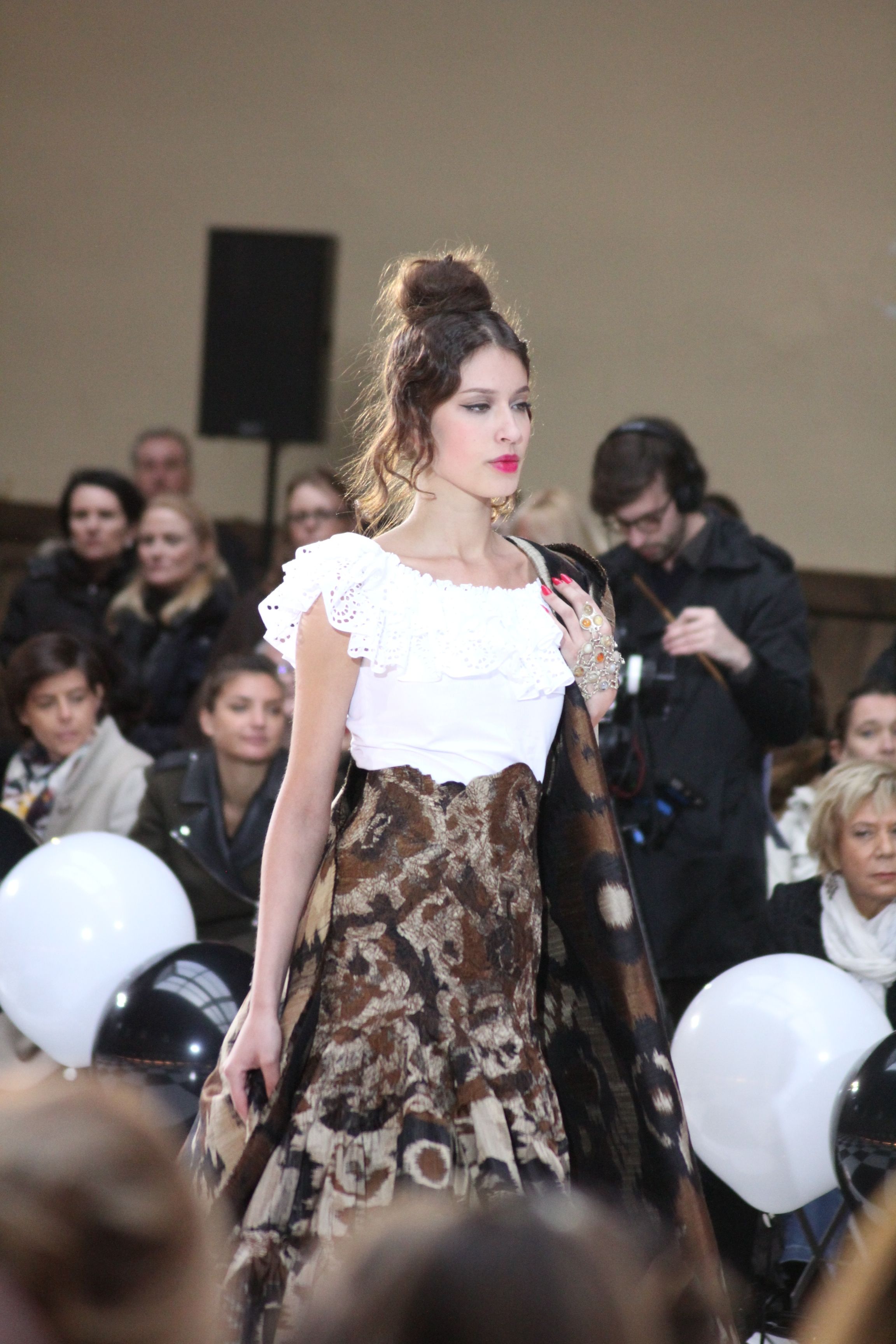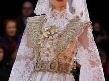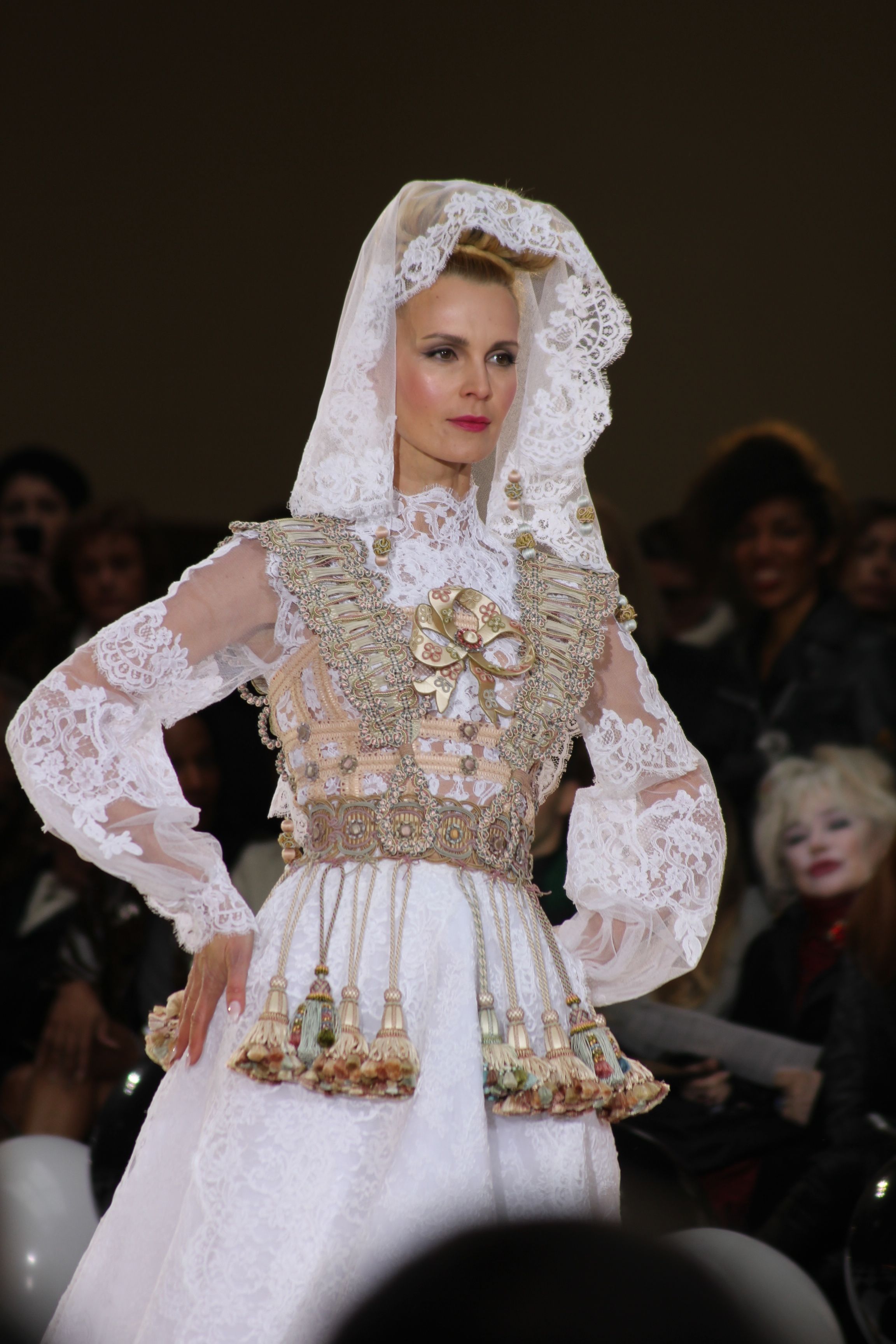 Pour finir « Russie des Contes », la Femme Franck Sorbier rentrée dans le corps d’une mariée russe revisitée, entièrement brodée de dentelle et de tulle, ornée avec sublimation, défile sous nos yeux admiratifs de cet art.