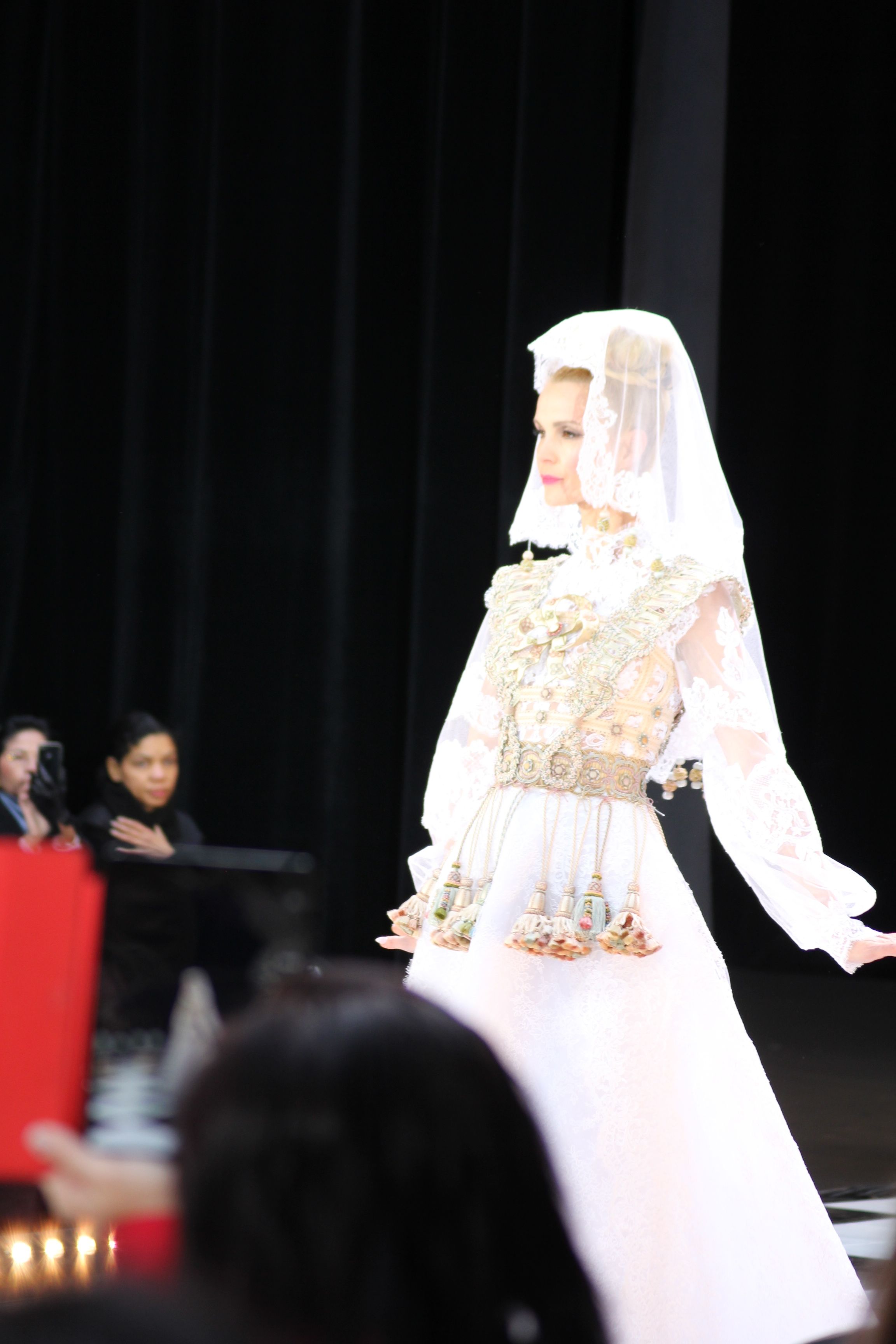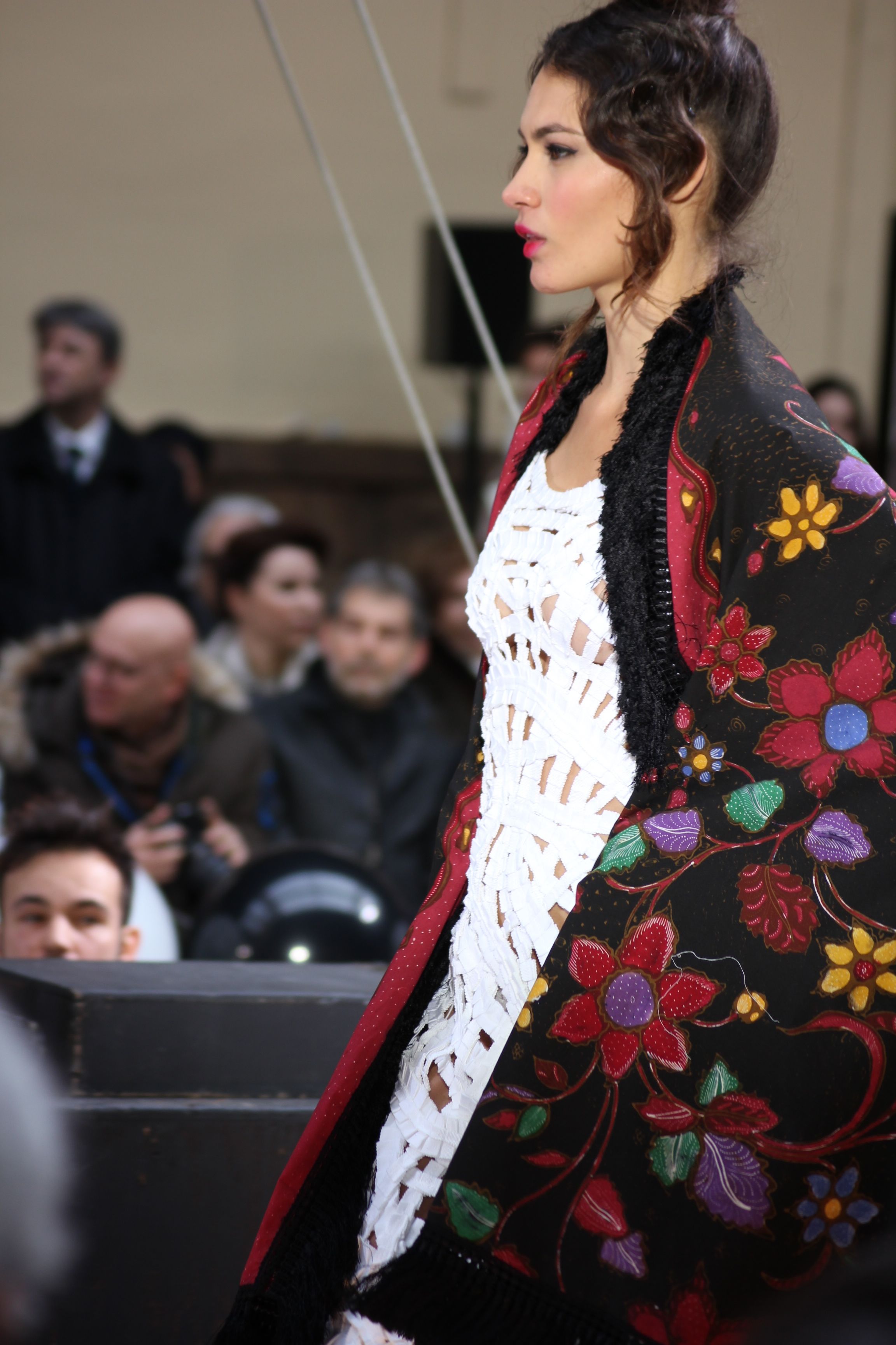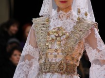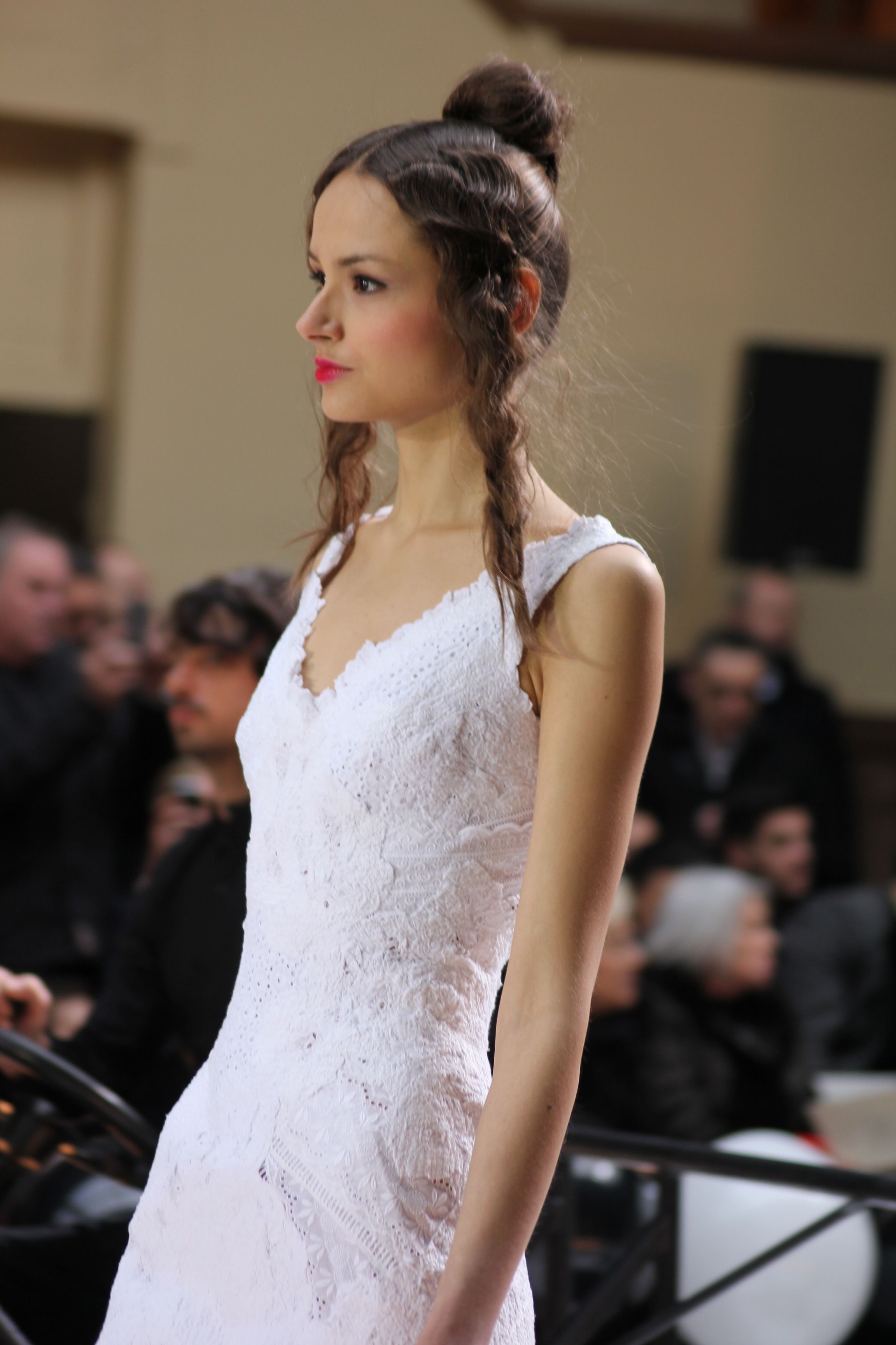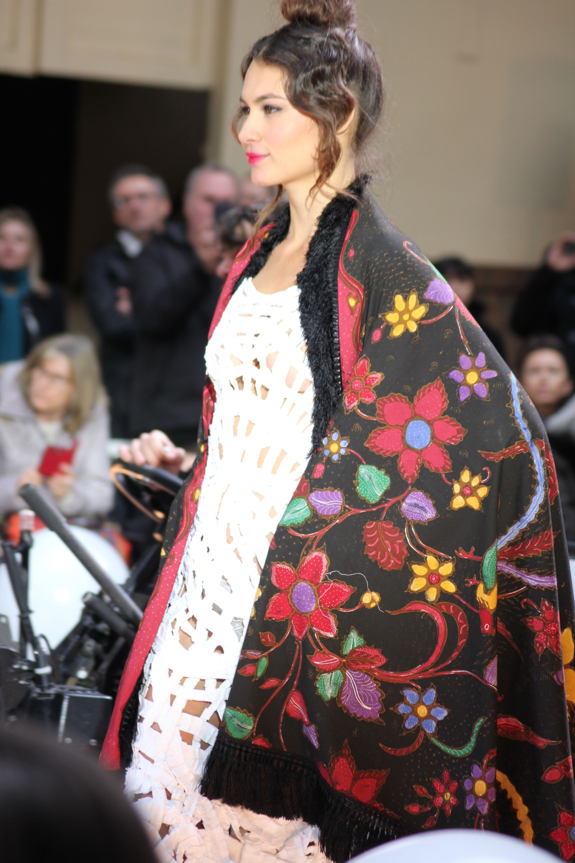 Pour finir « Russie des Contes », la Femme Franck Sorbier rentrée dans le corps d’une mariée russe revisitée, entièrement brodée de dentelle et de tulle, ornée avec sublimation, défile sous nos yeux admiratifs de cet art.