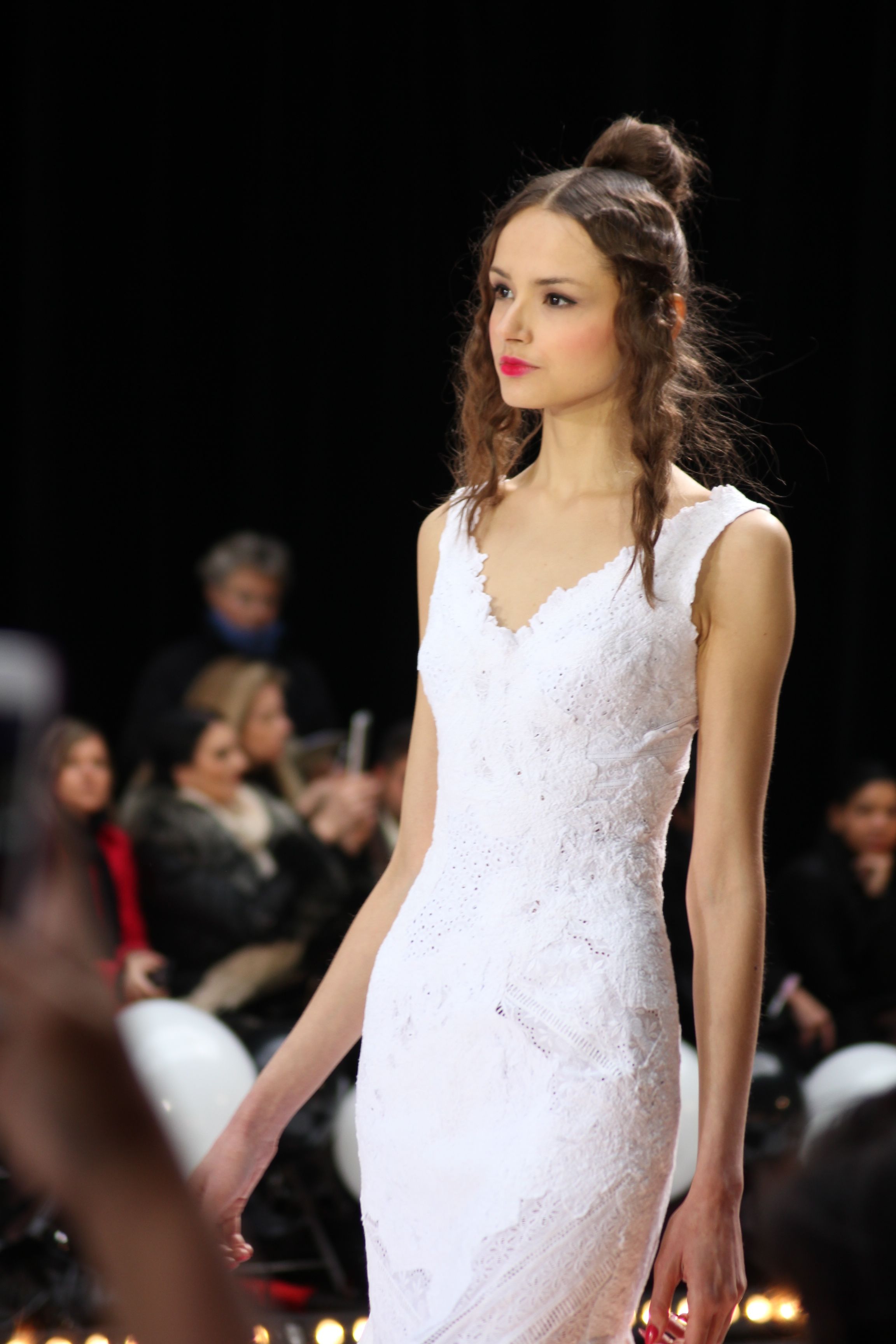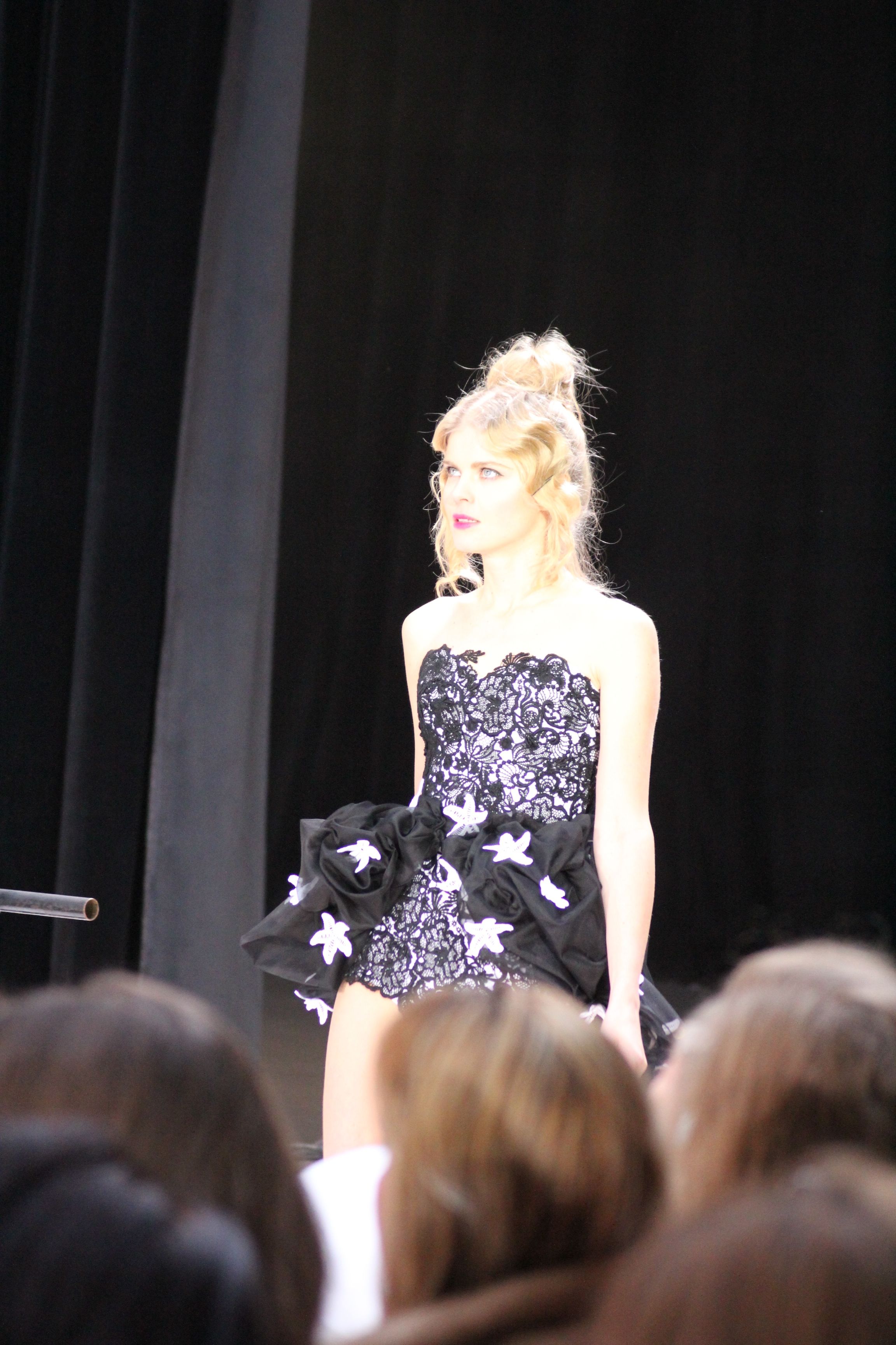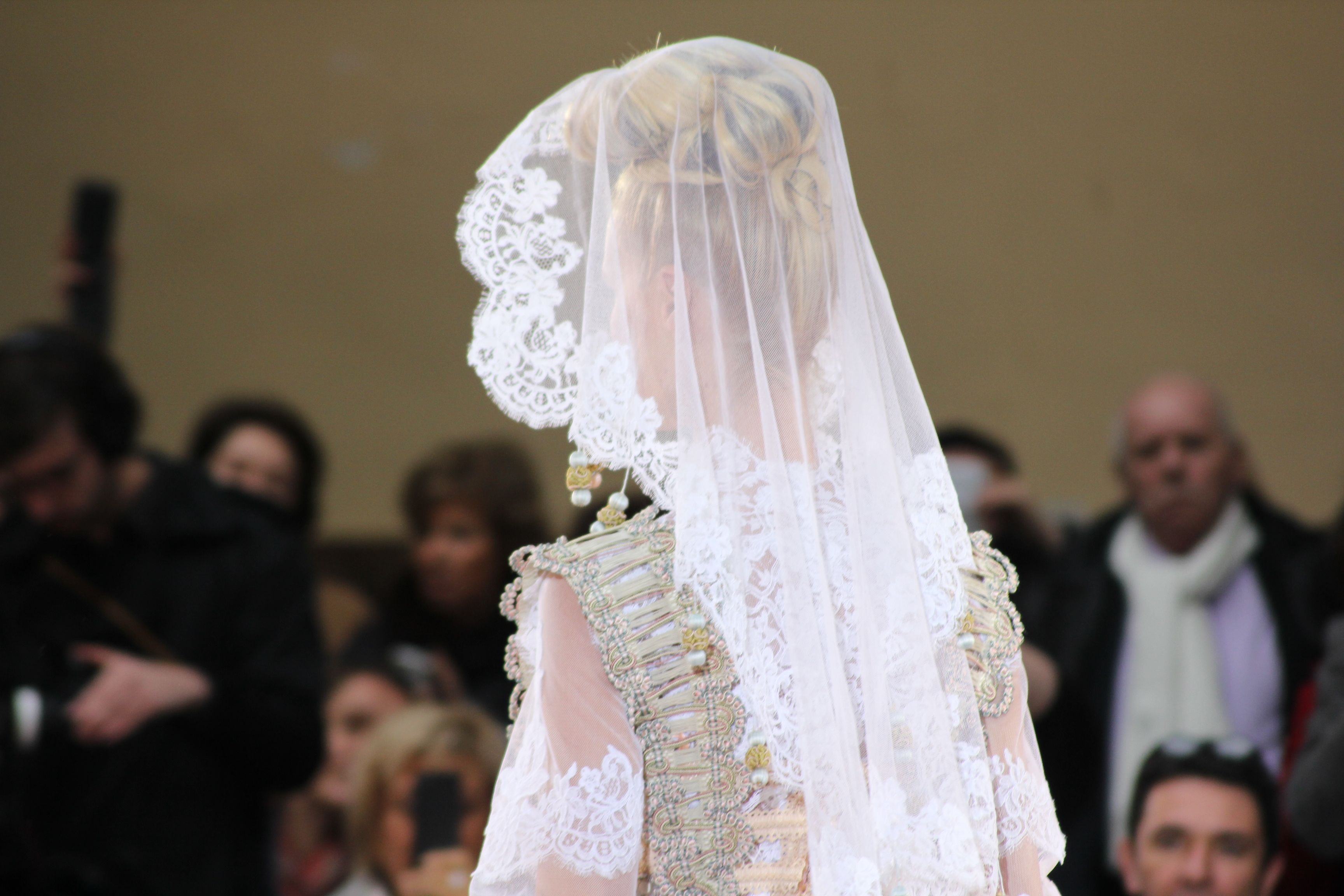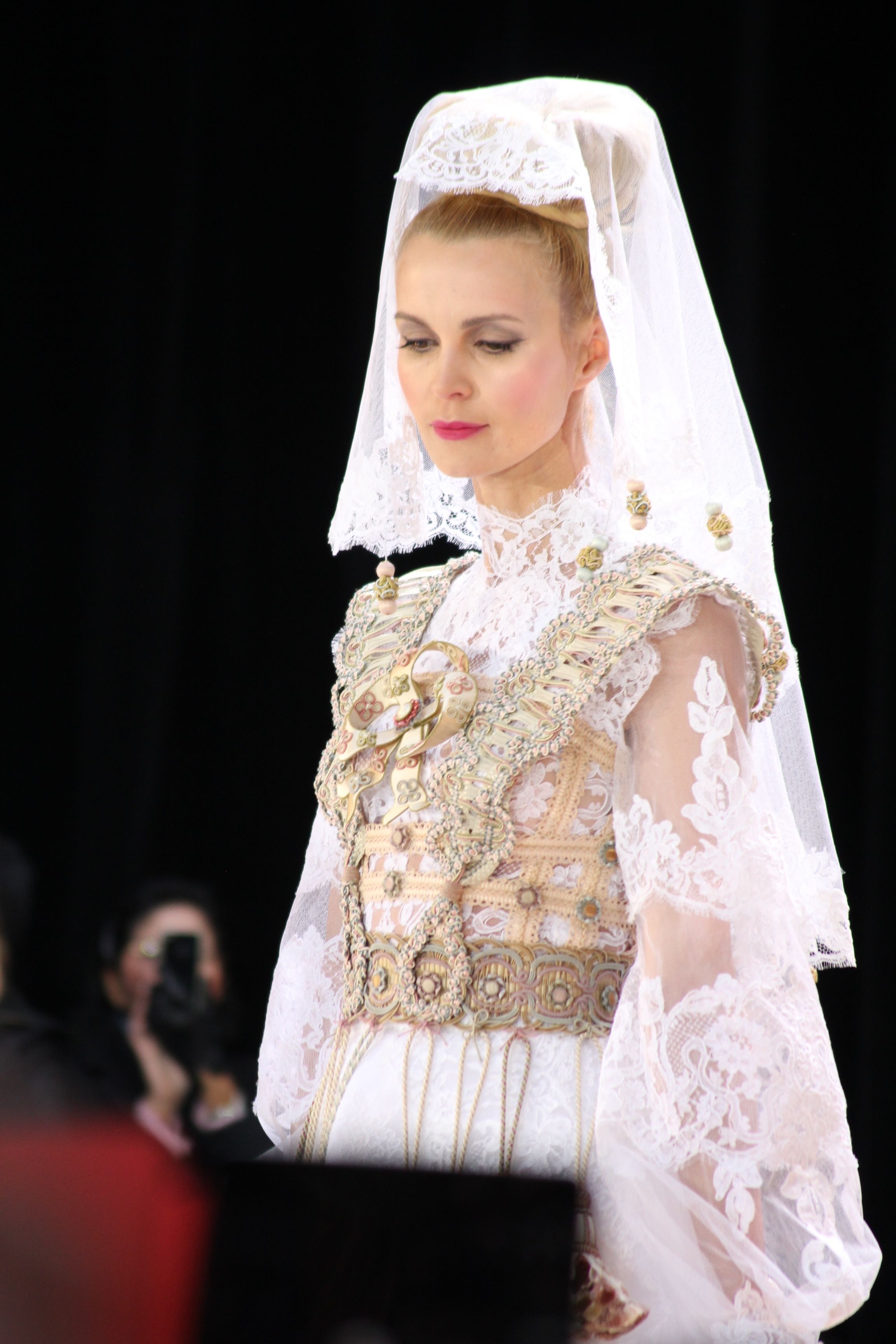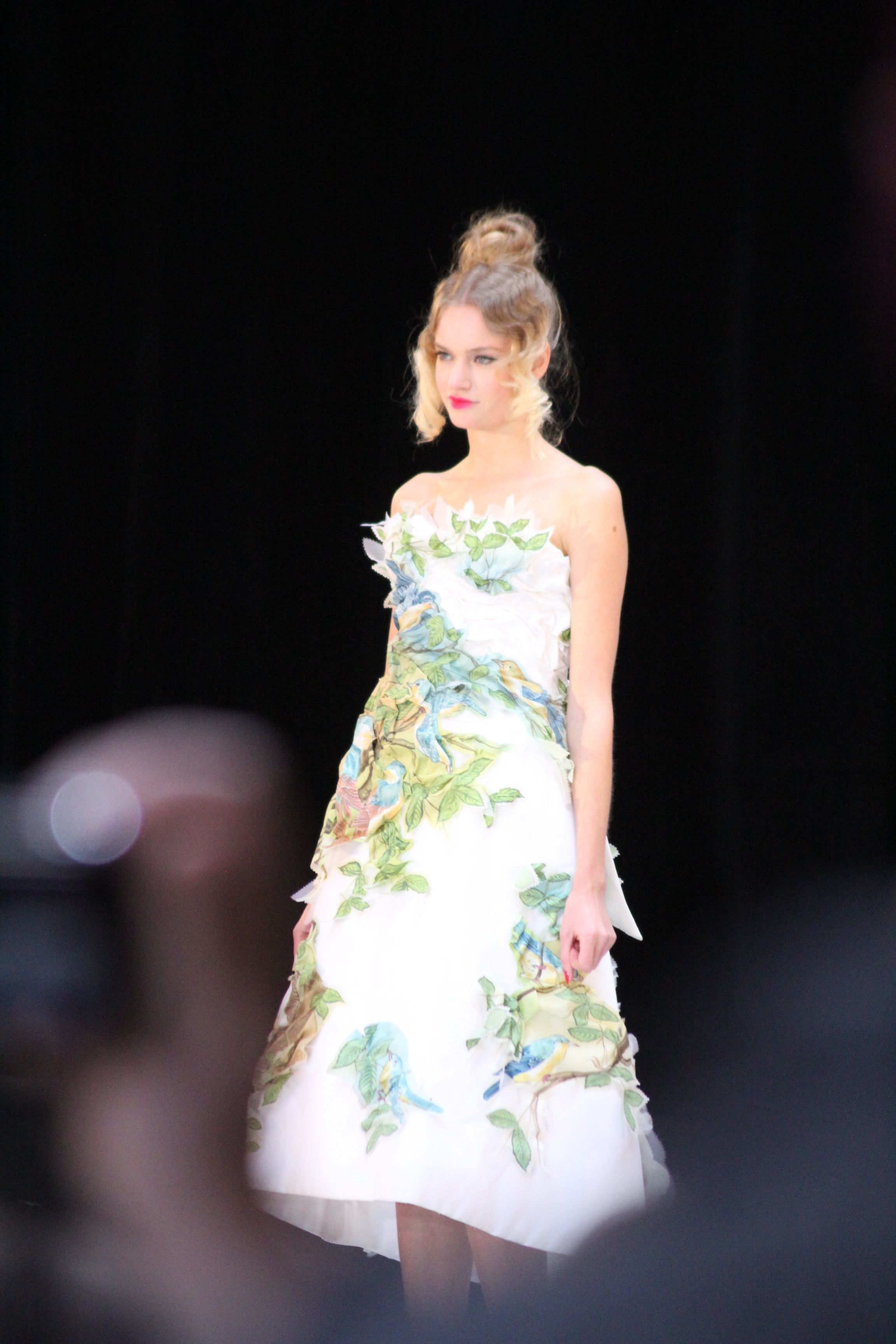 Pour finir « Russie des Contes », la Femme Franck Sorbier rentrée dans le corps d’une mariée russe revisitée, entièrement brodée de dentelle et de tulle, ornée avec sublimation, défile sous nos yeux admiratifs de cet art.