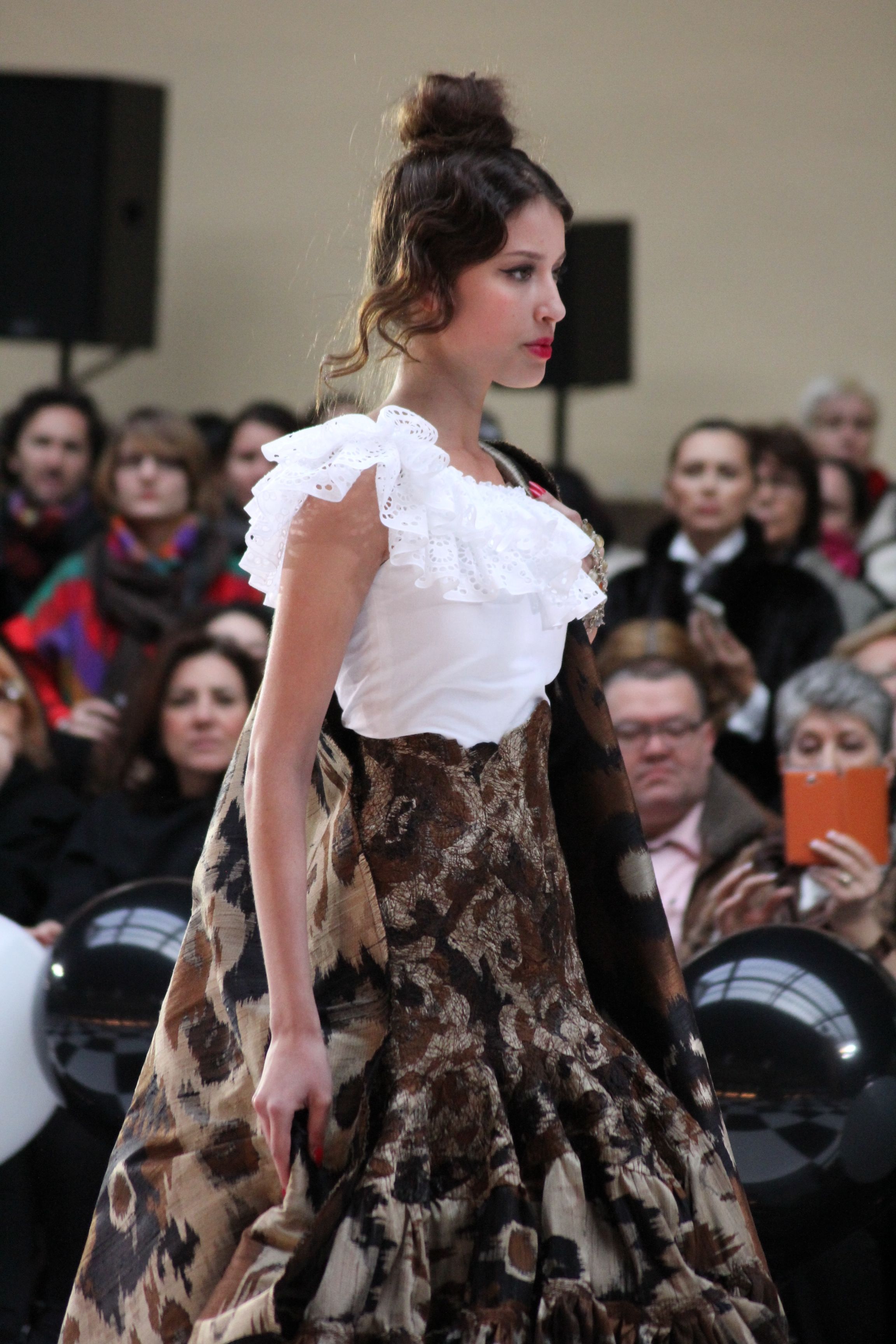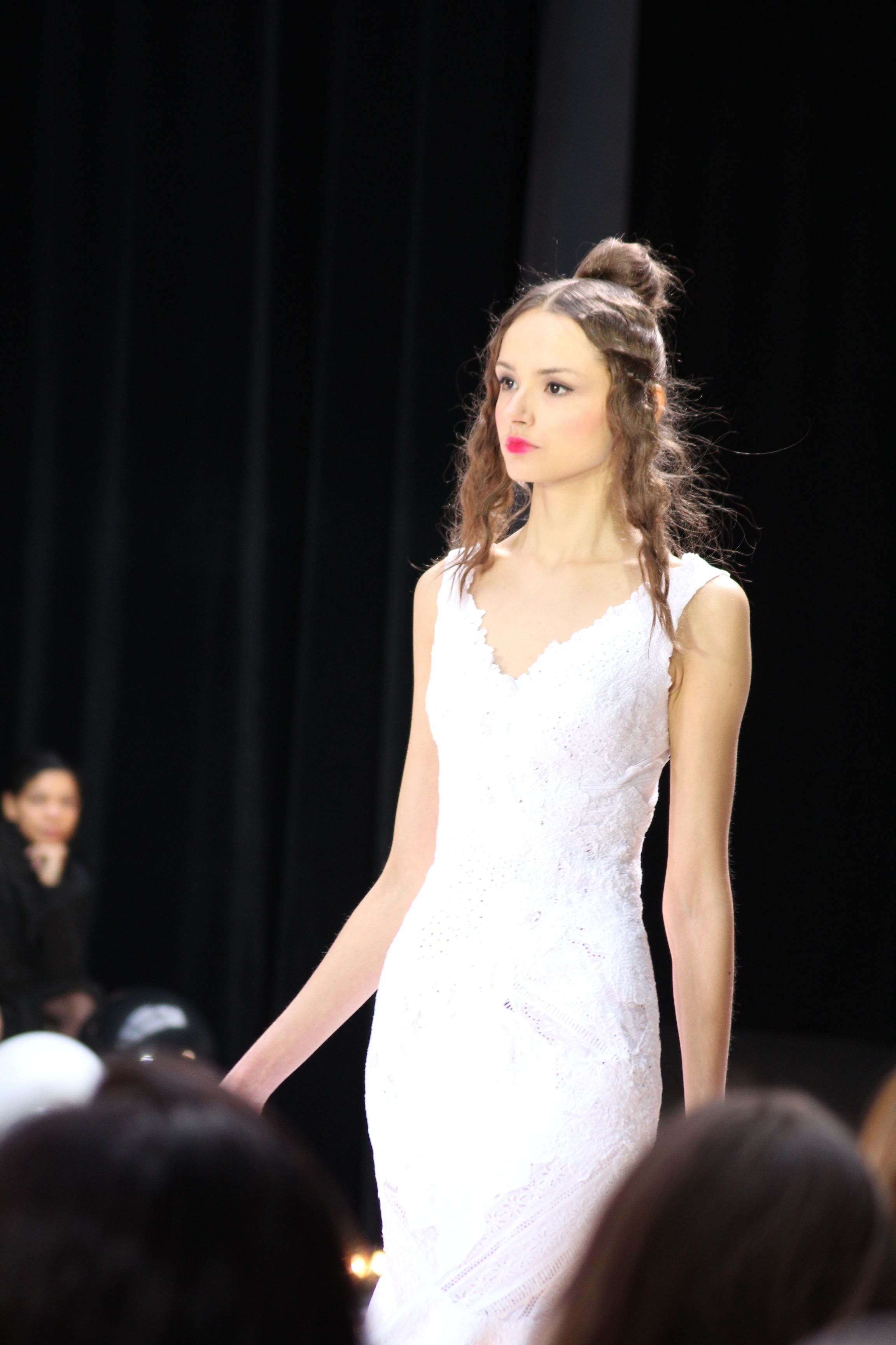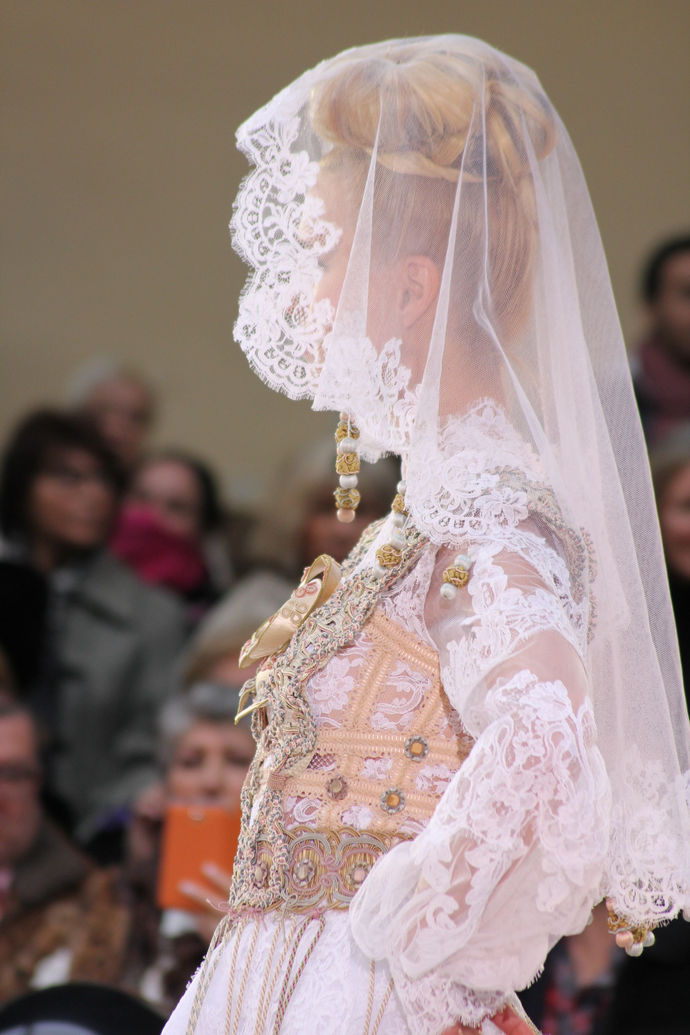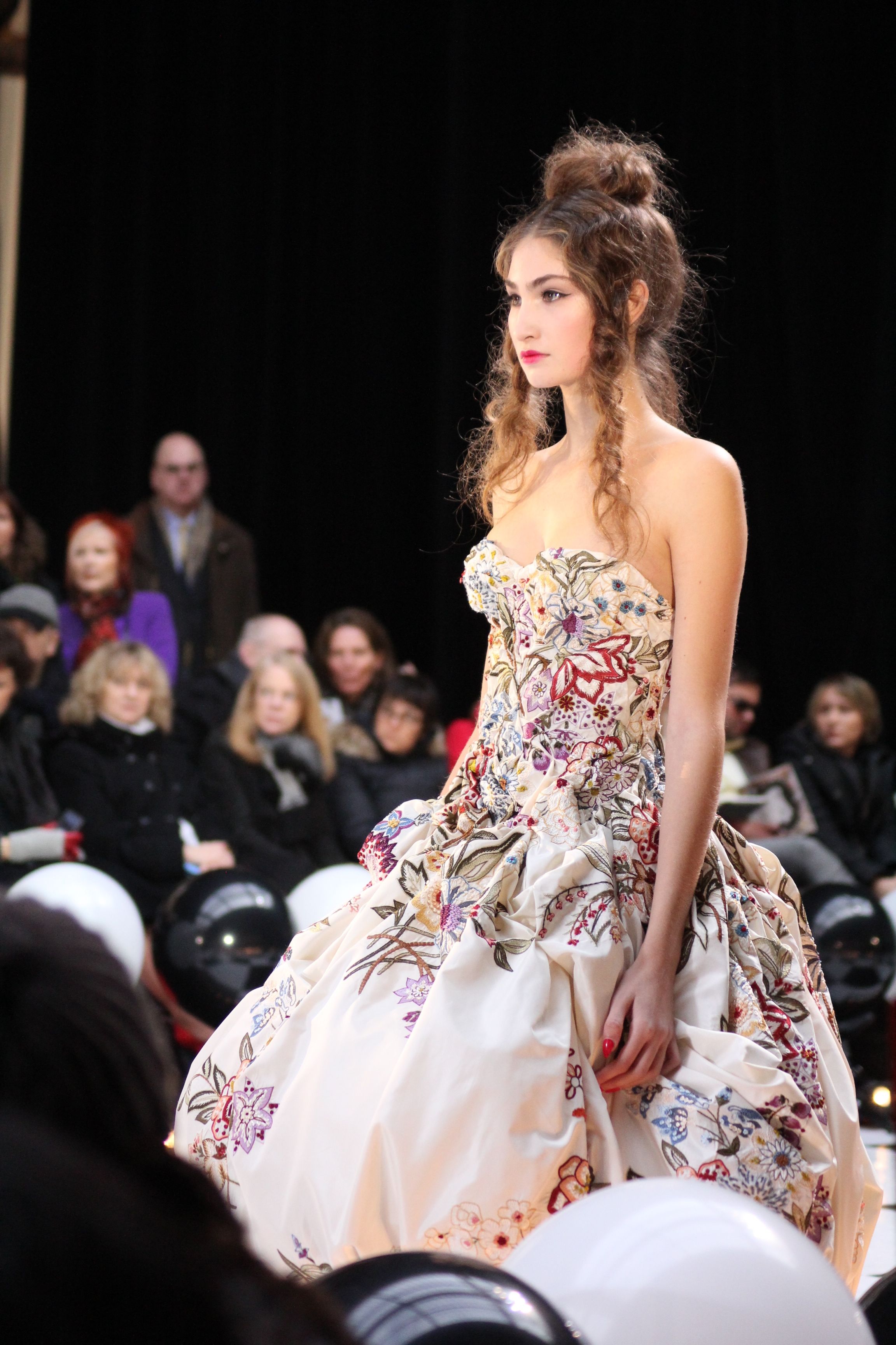 Pour finir « Russie des Contes », la Femme Franck Sorbier rentrée dans le corps d’une mariée russe revisitée, entièrement brodée de dentelle et de tulle, ornée avec sublimation, défile sous nos yeux admiratifs de cet art.