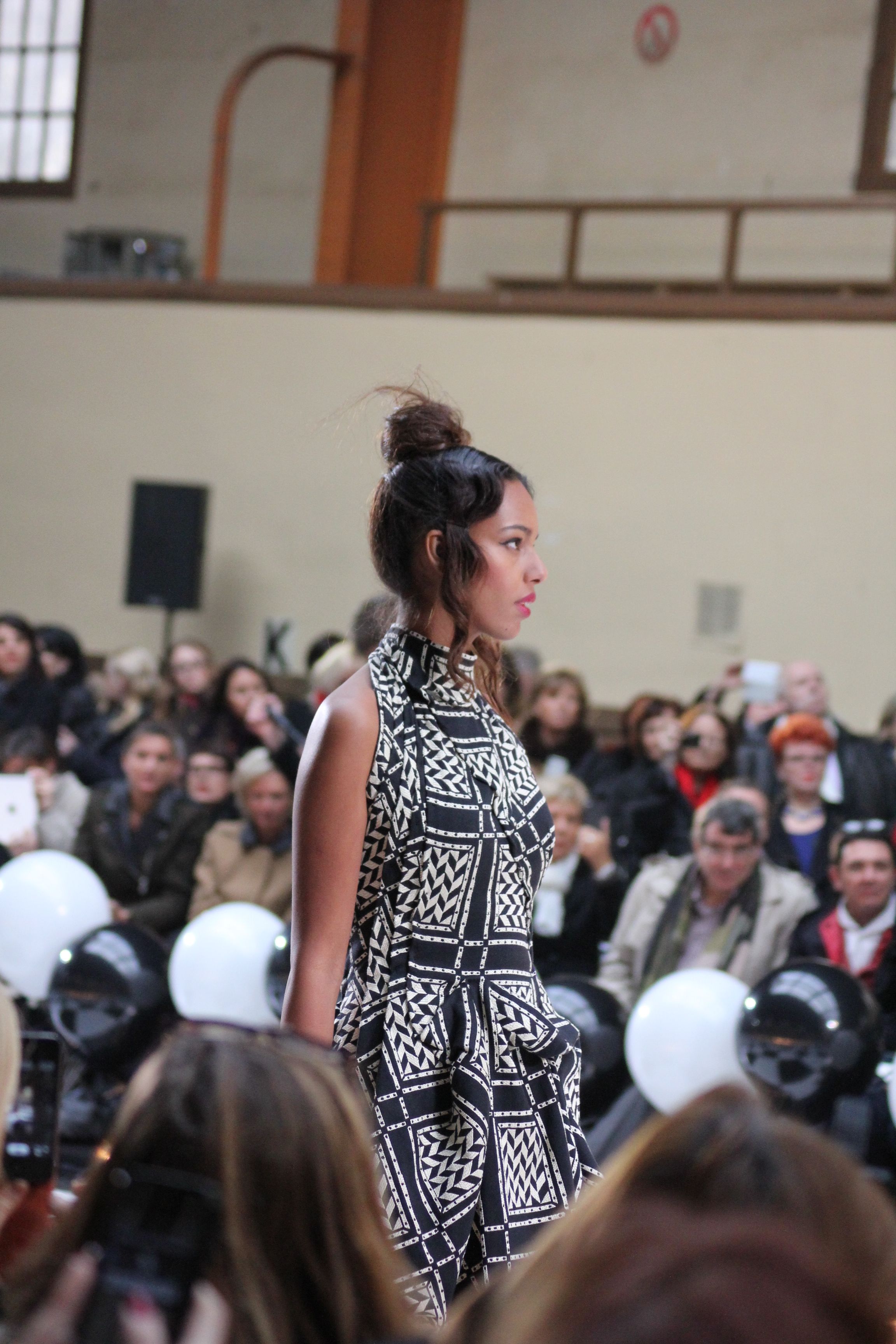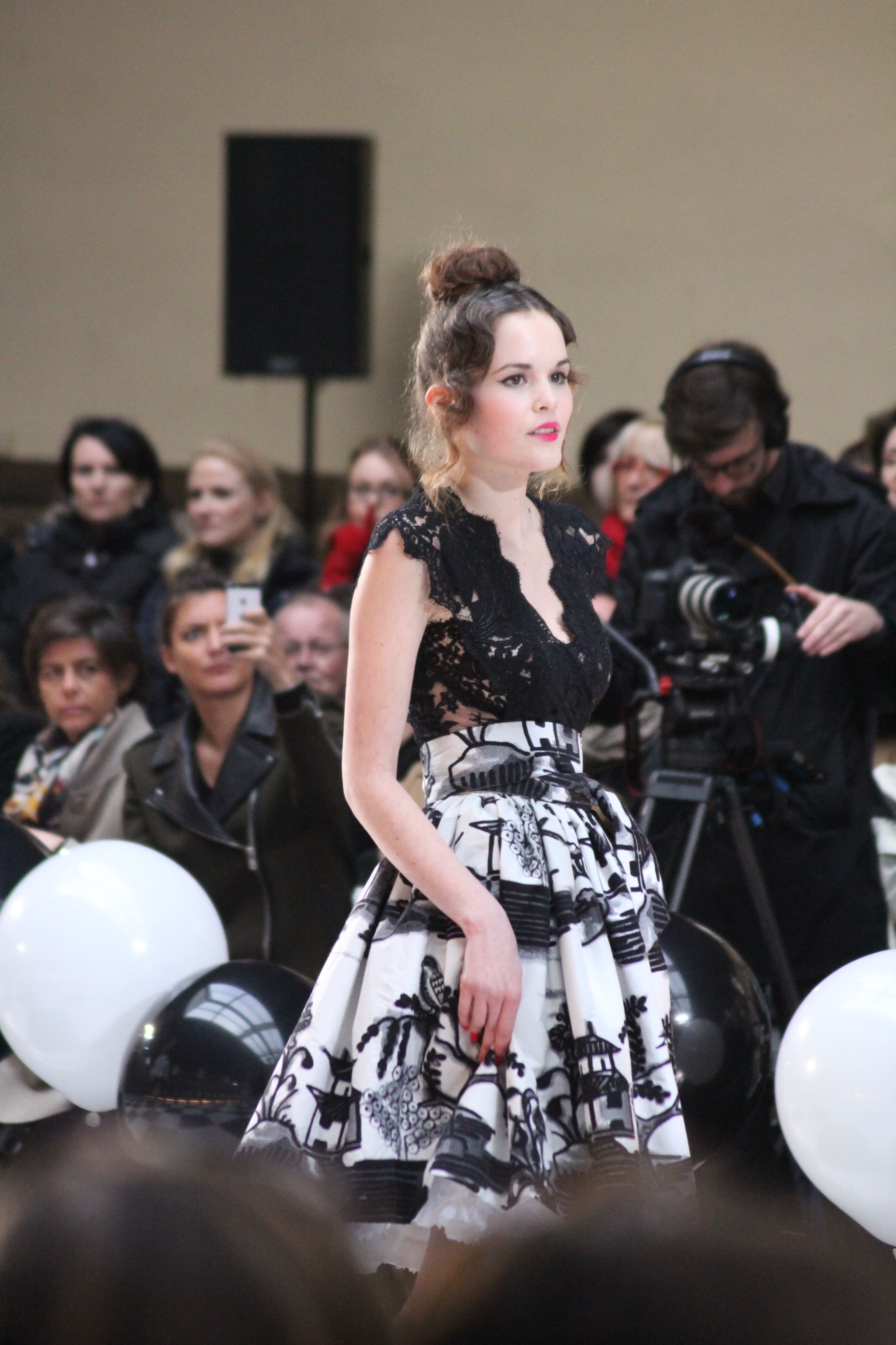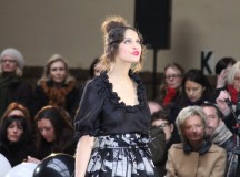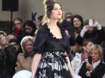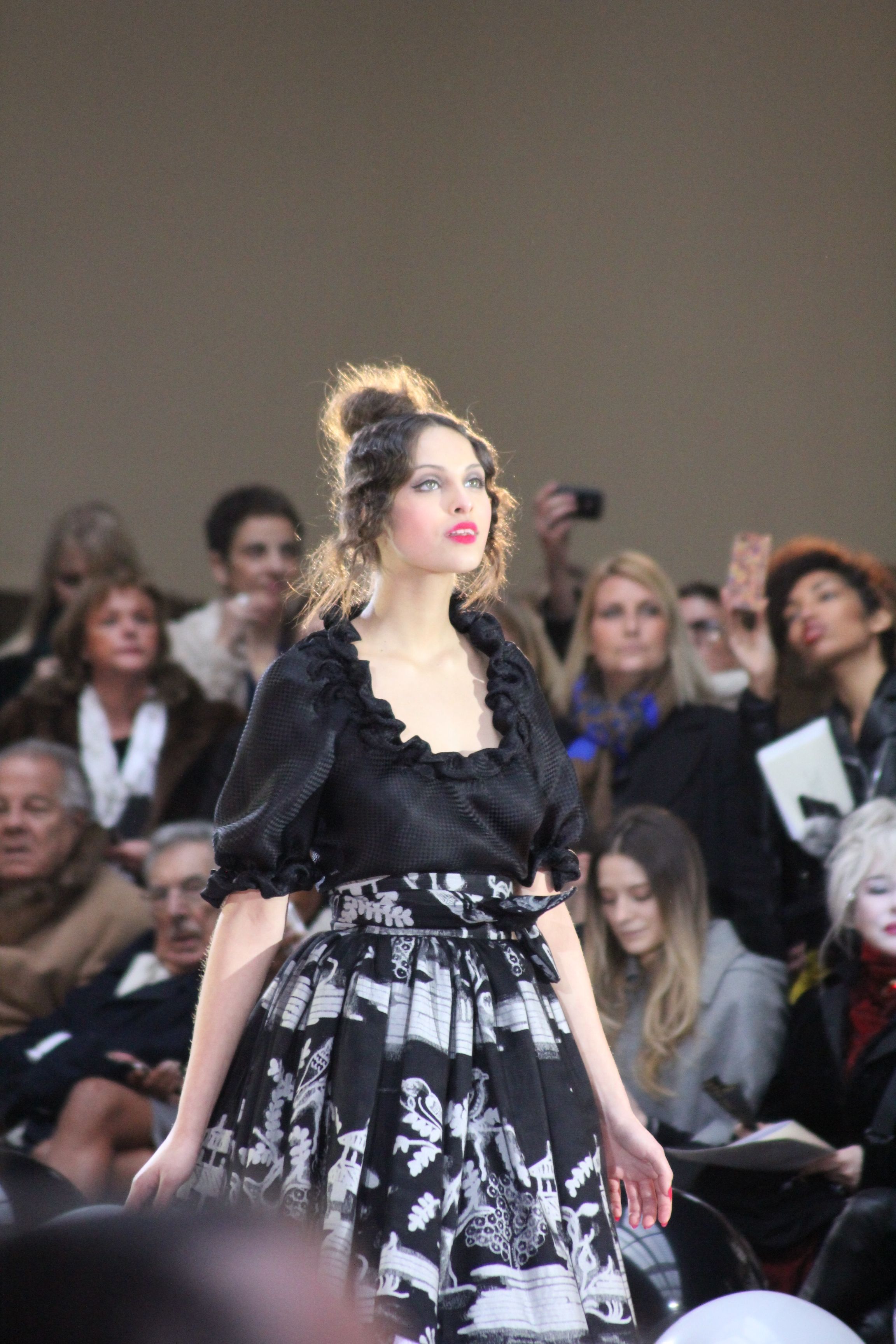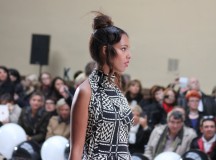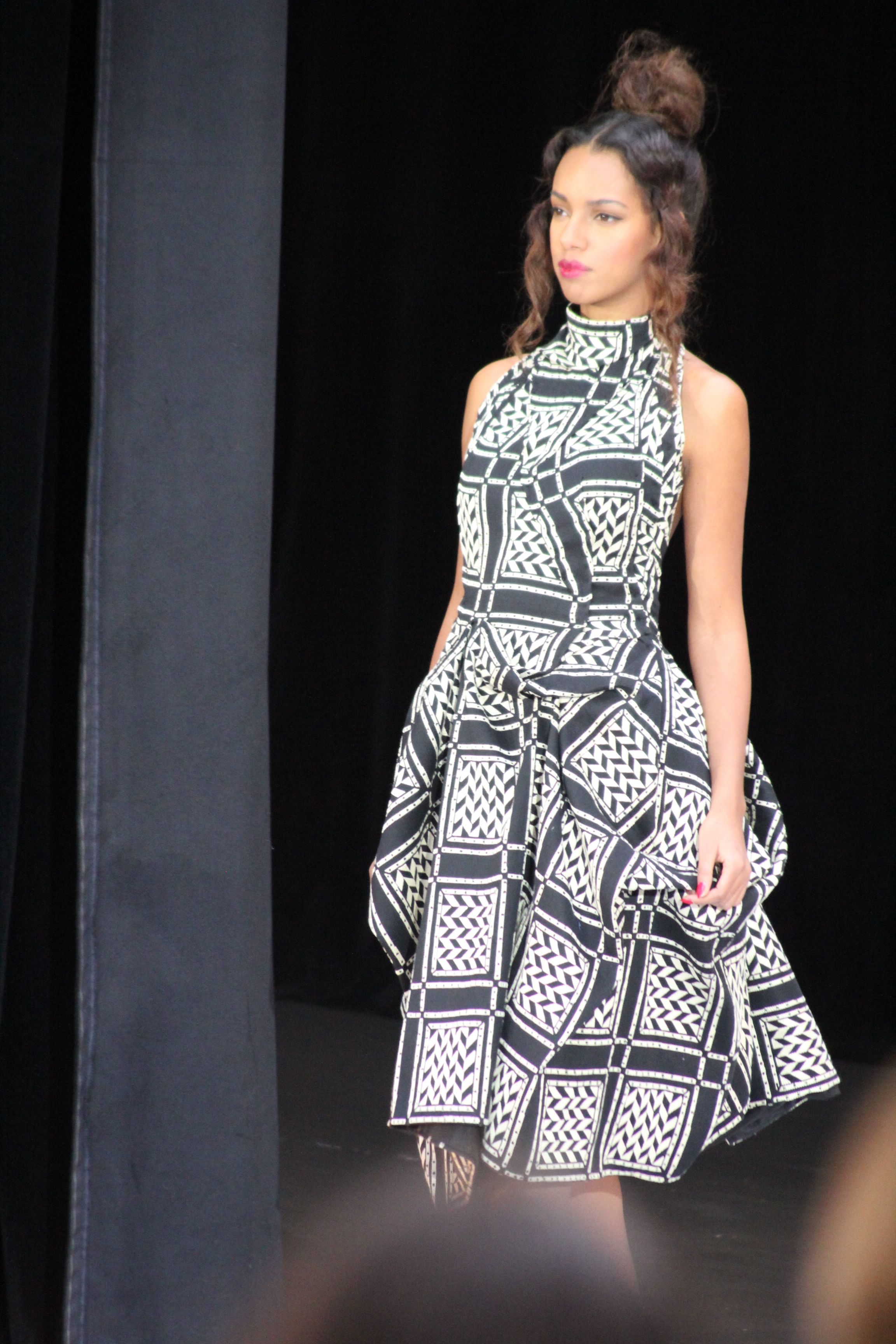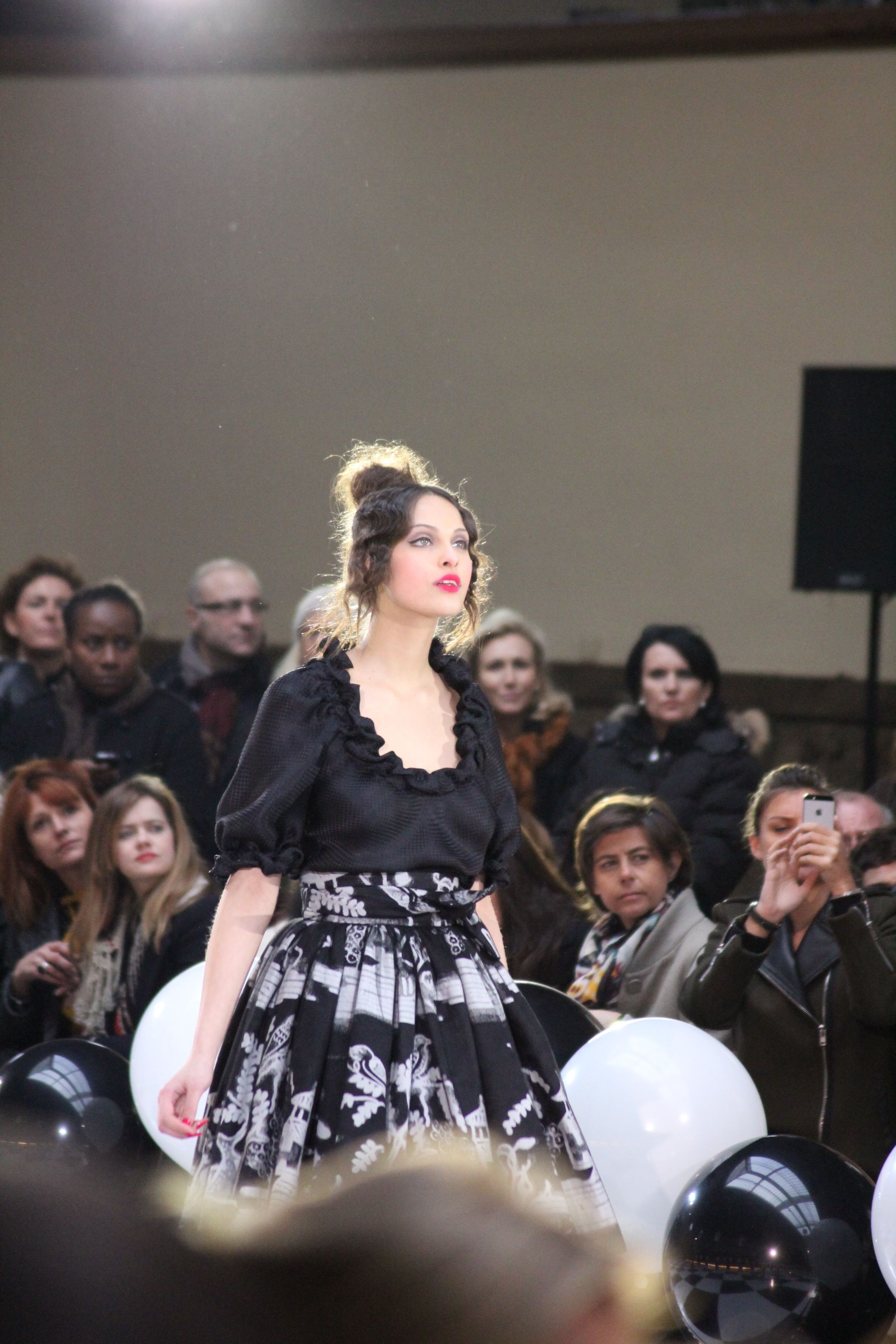 « Jolies pépées canailles » est un monde où le jacquard en noir et blanc est souverain, décliné, sur des jupes évasées ou froncées.