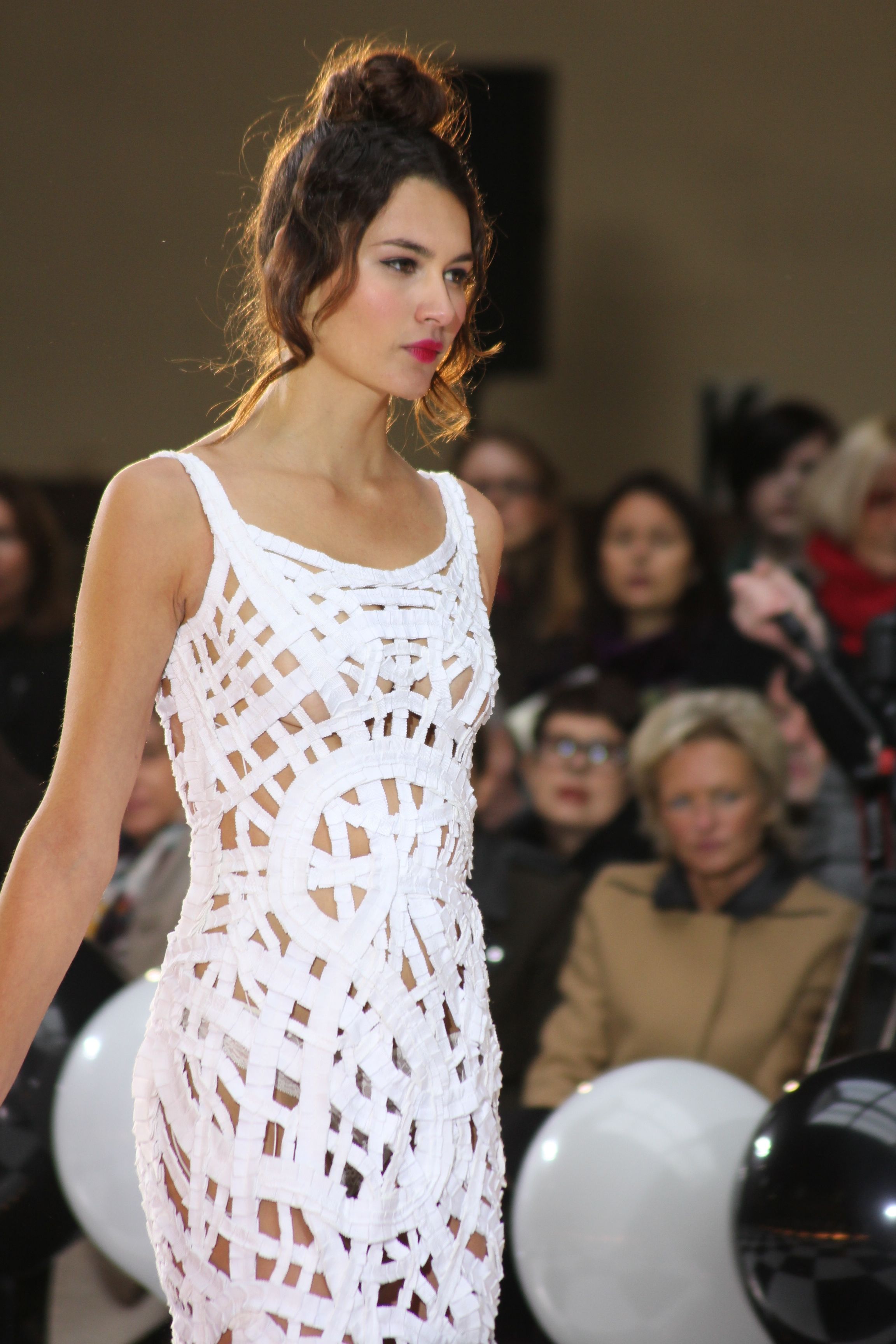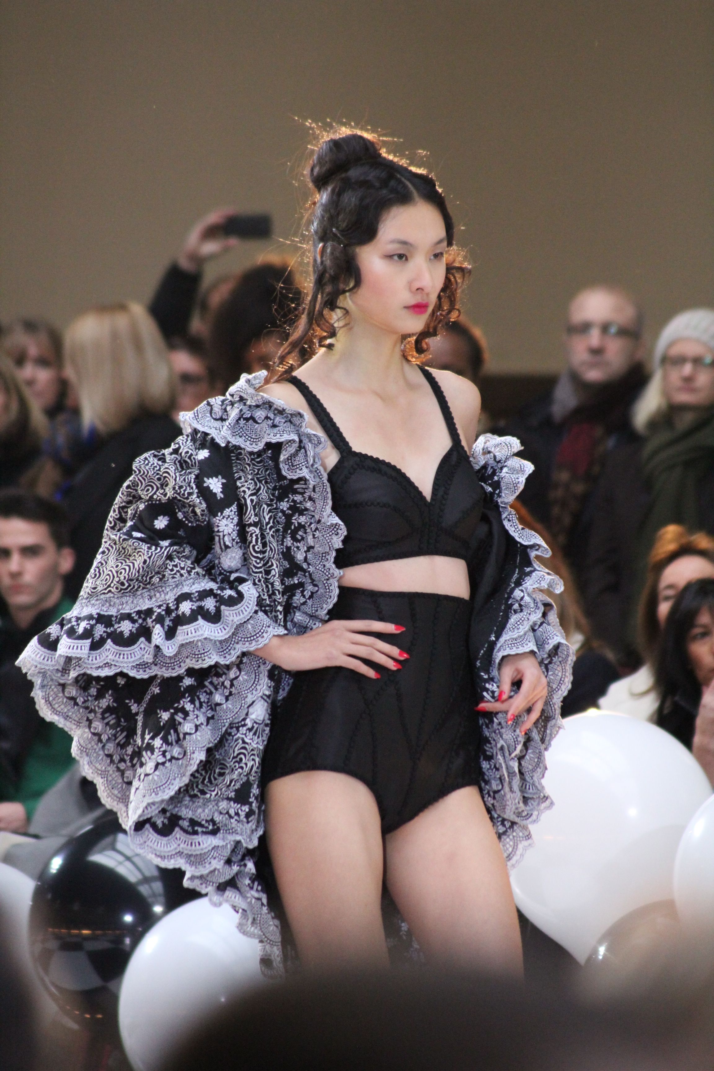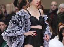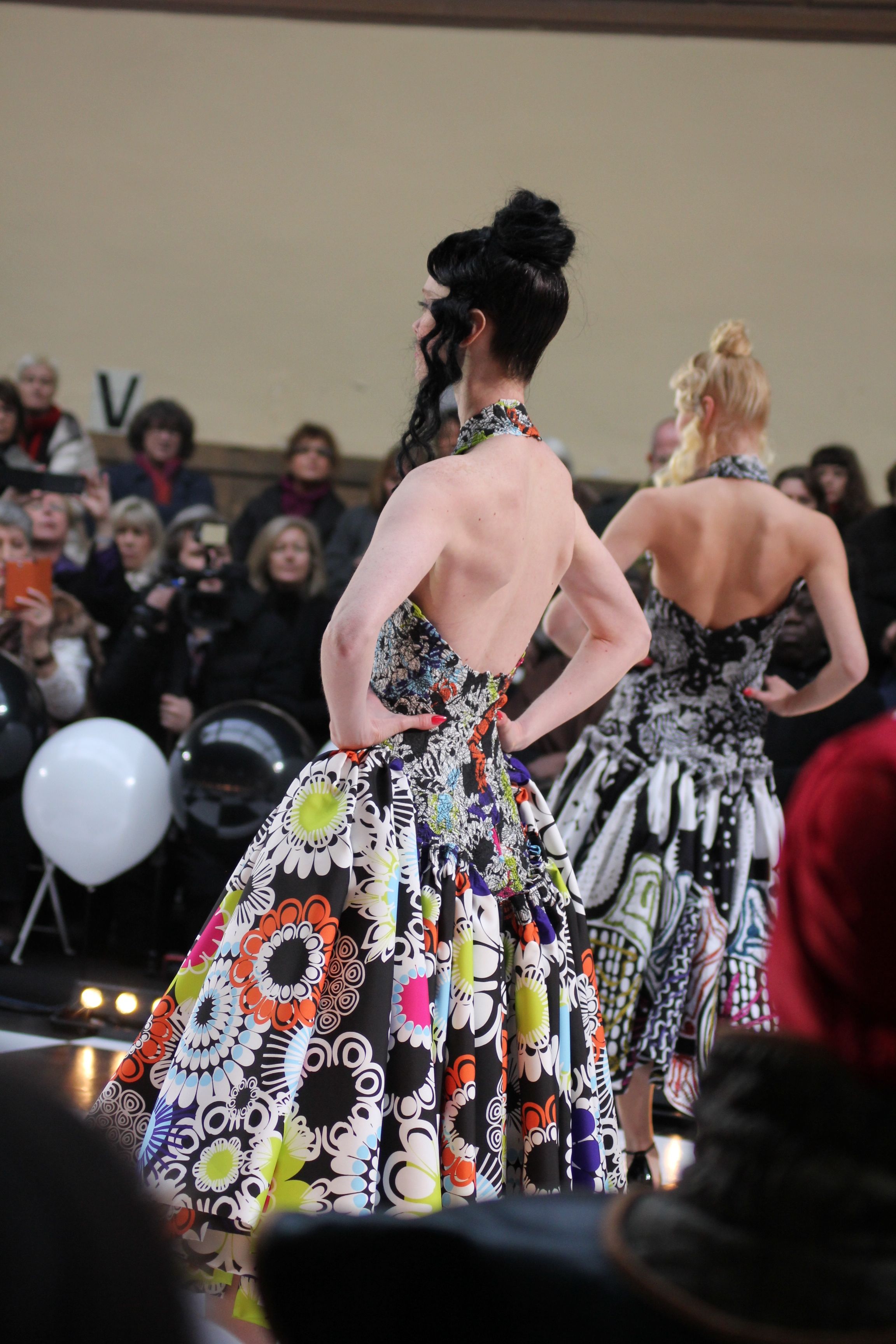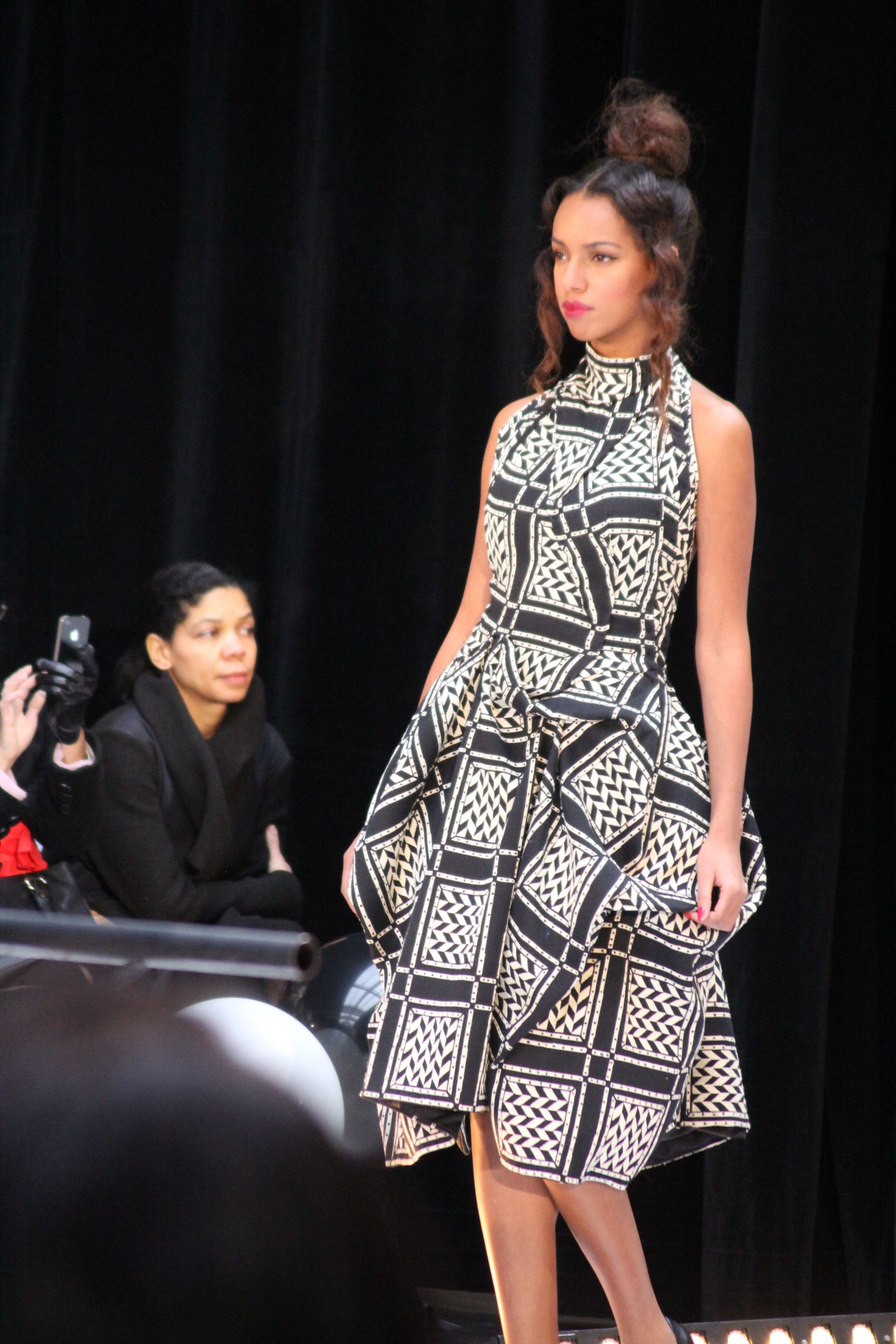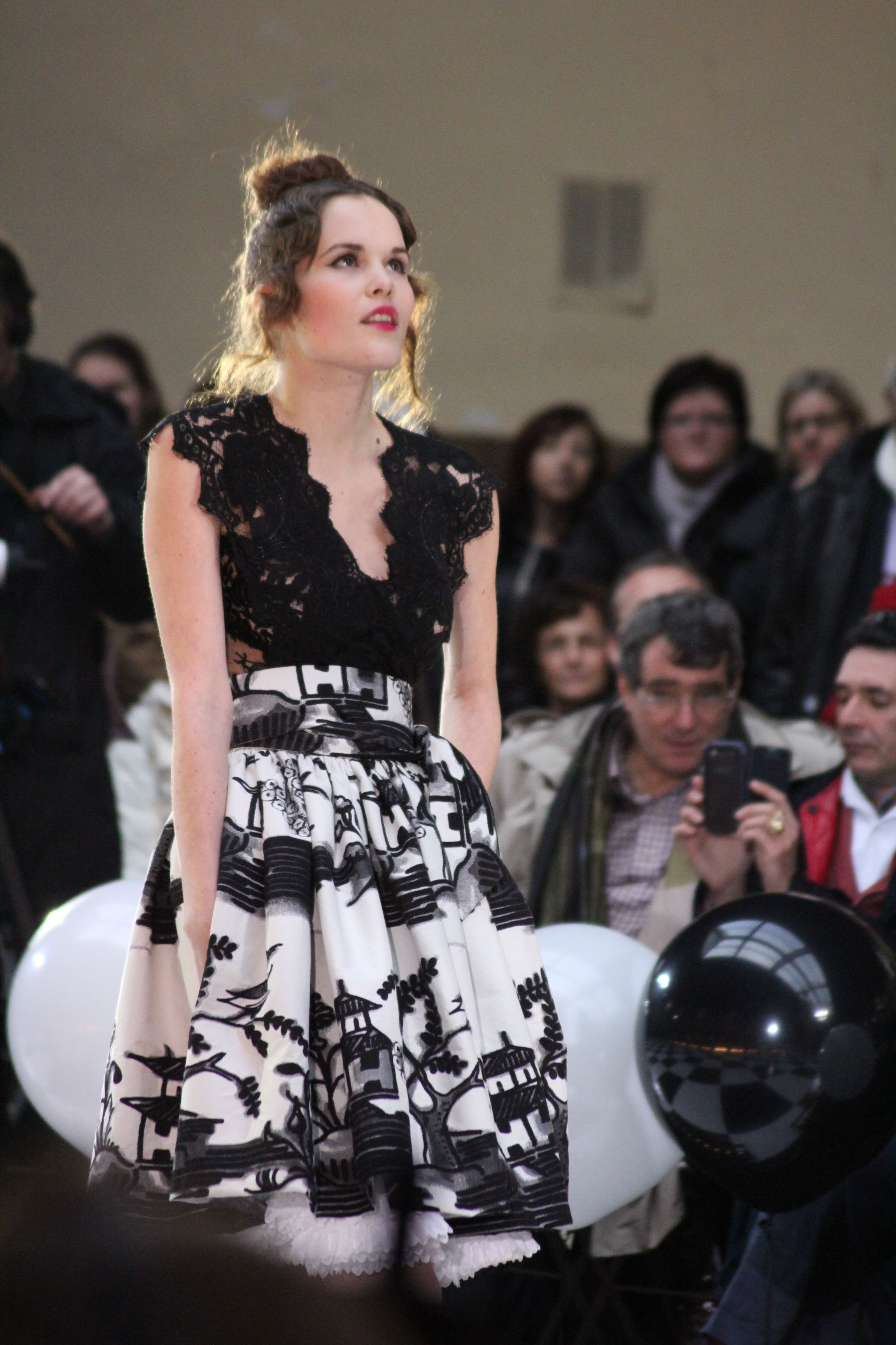 « Jolies pépées canailles » est un monde où le jacquard en noir et blanc est souverain, décliné, sur des jupes évasées ou froncées.