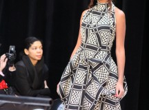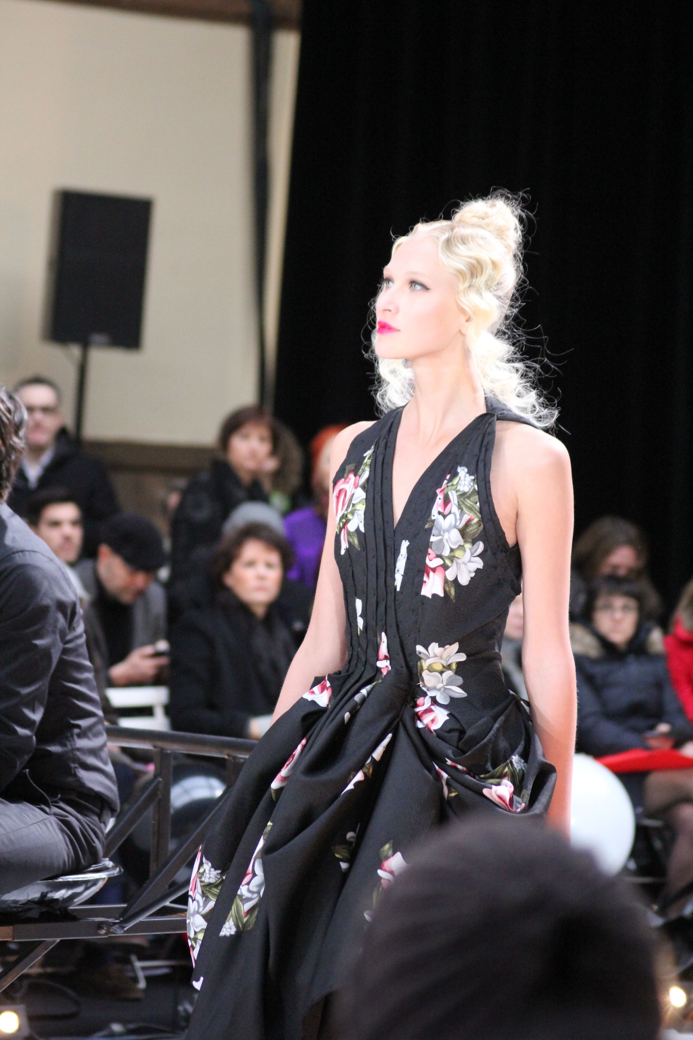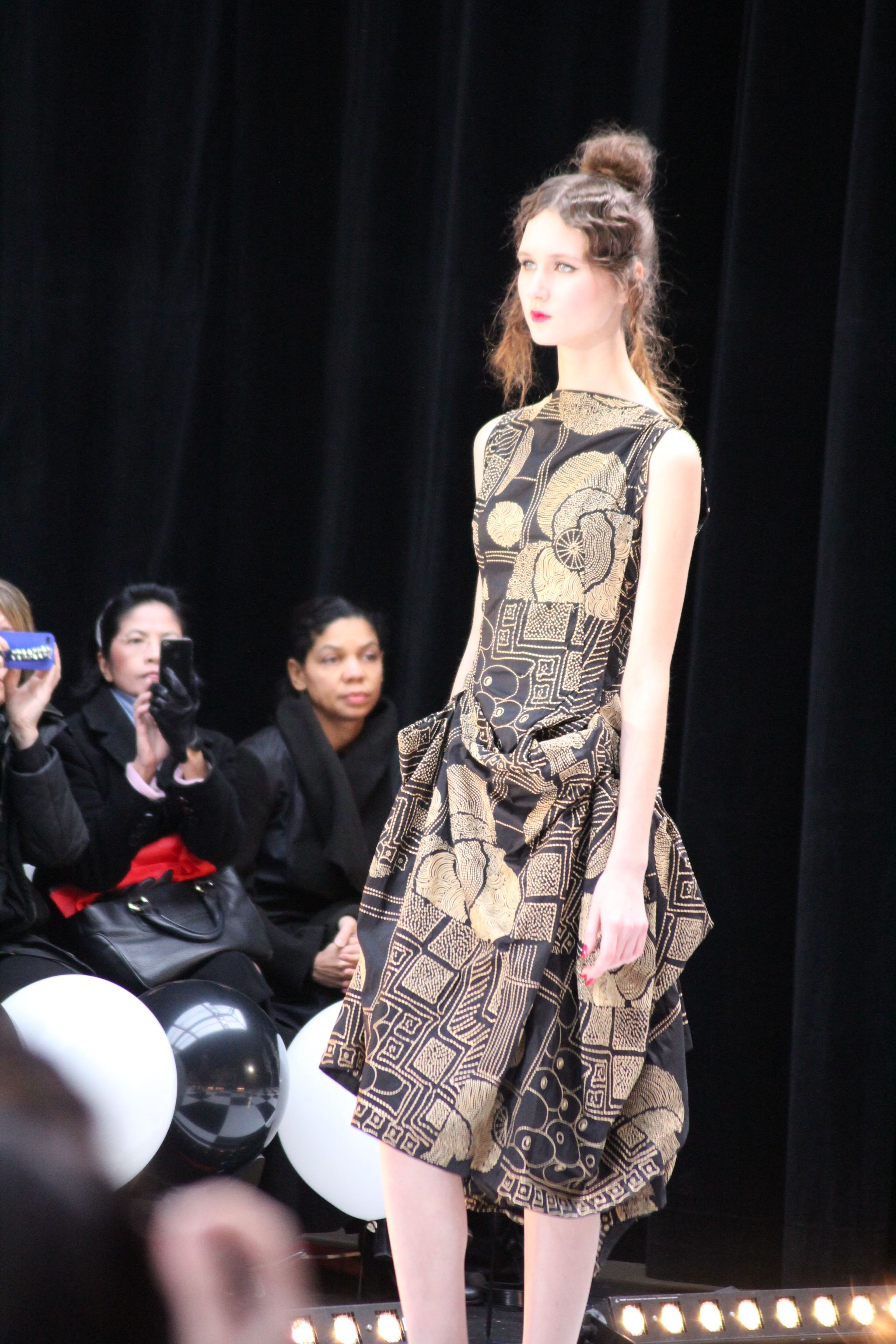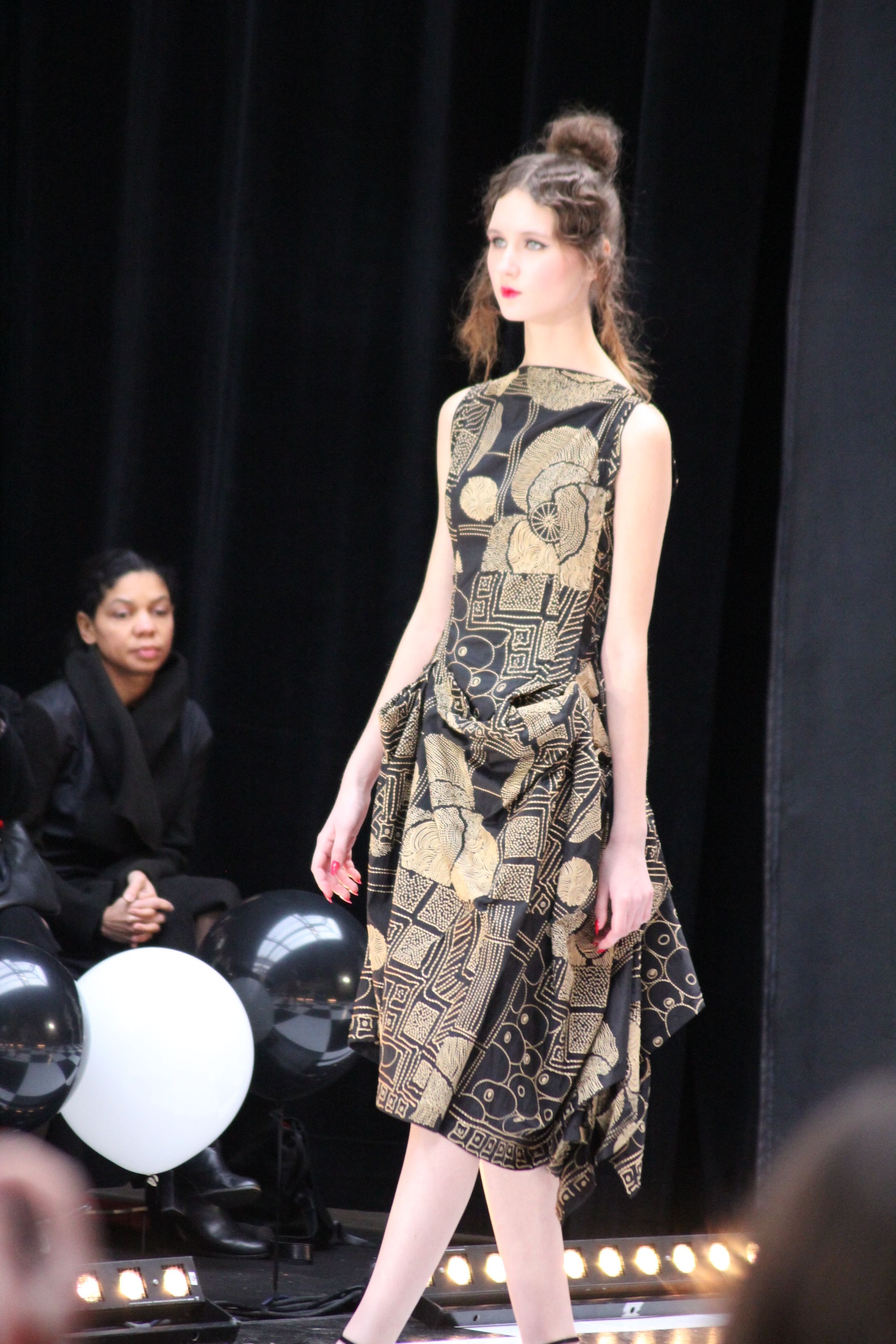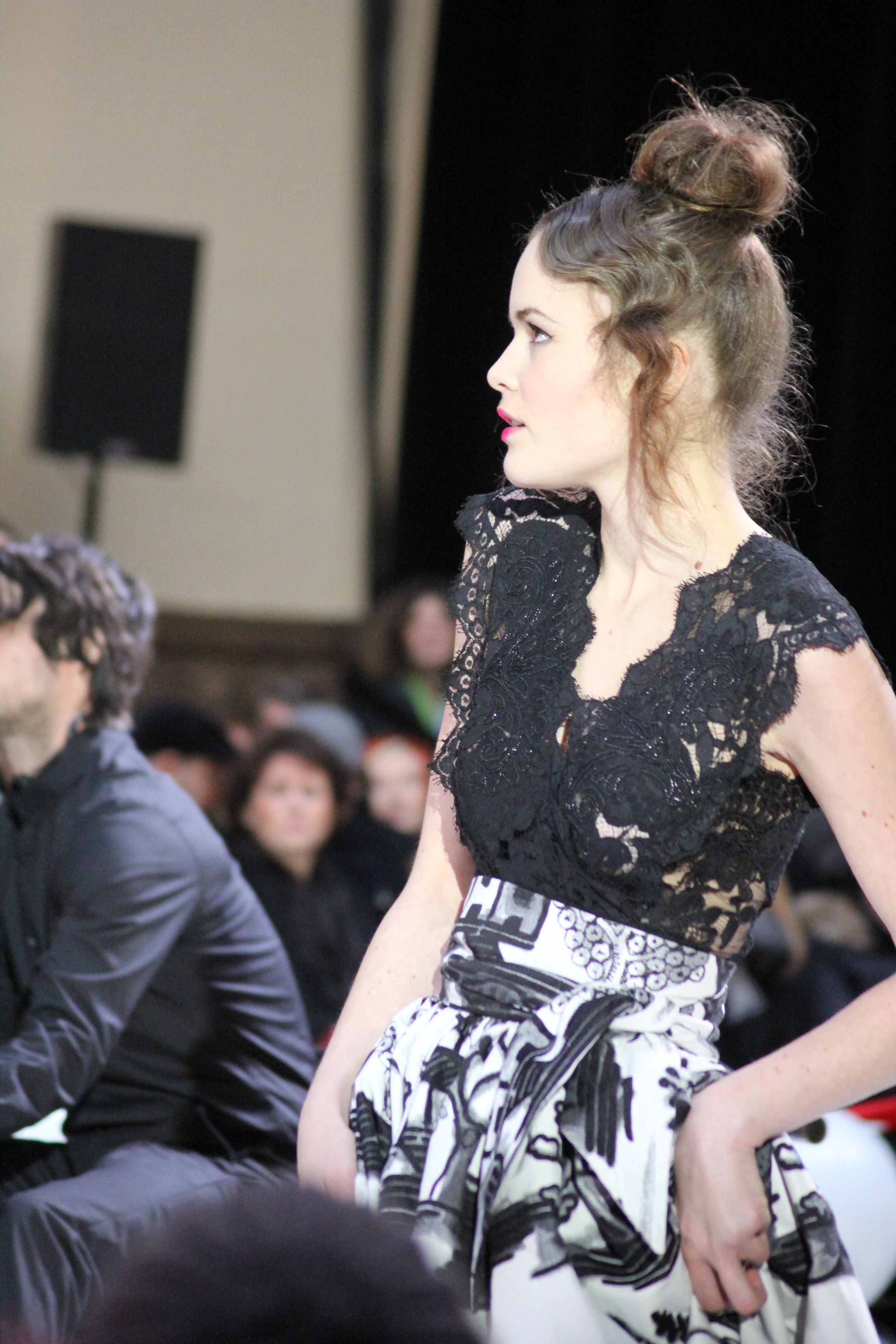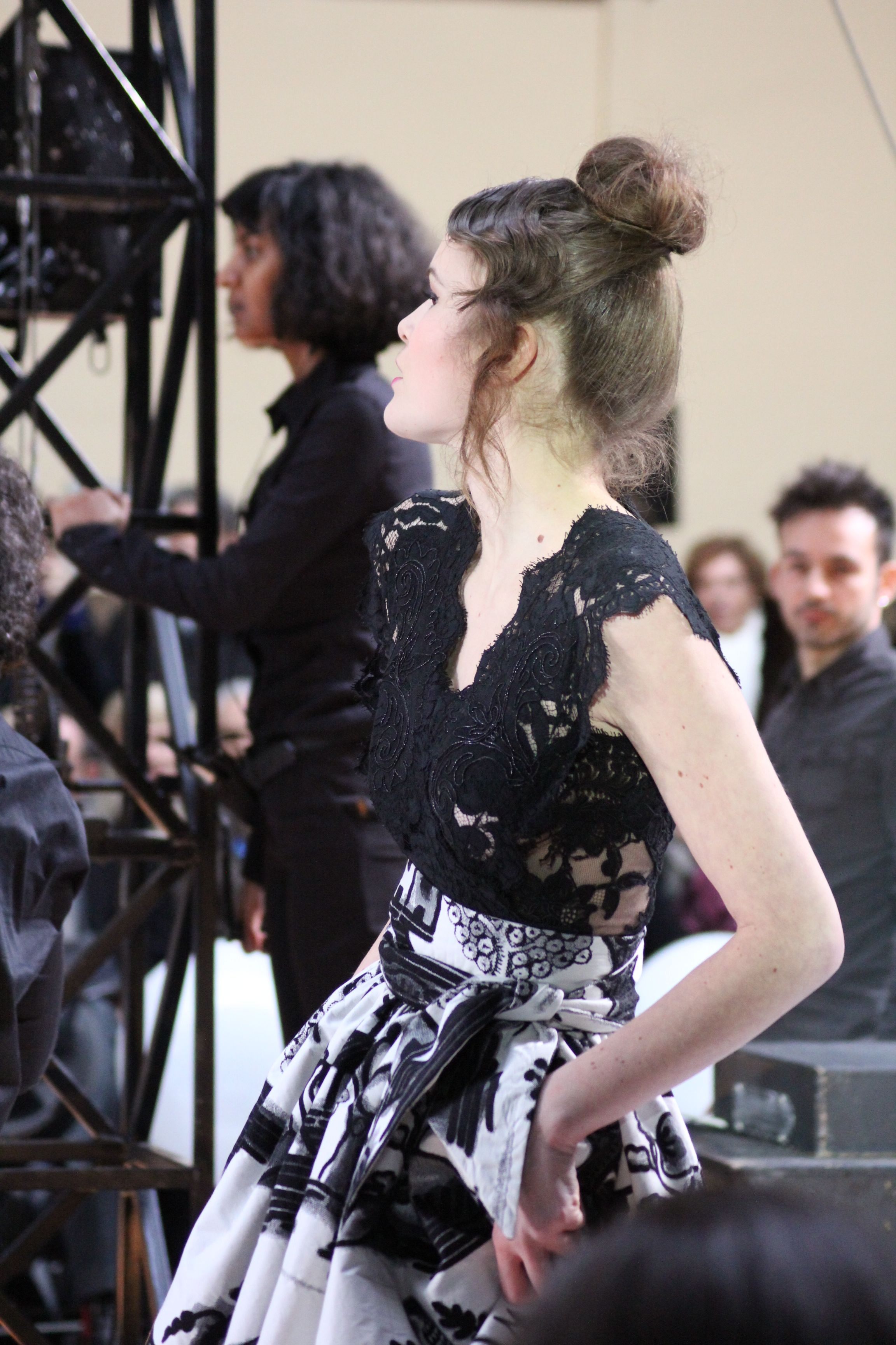 « Jolies pépées canailles » est un monde où le jacquard en noir et blanc est souverain, décliné, sur des jupes évasées ou froncées.