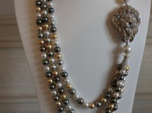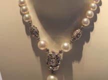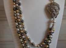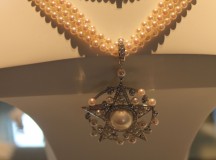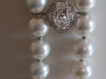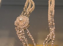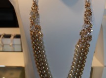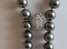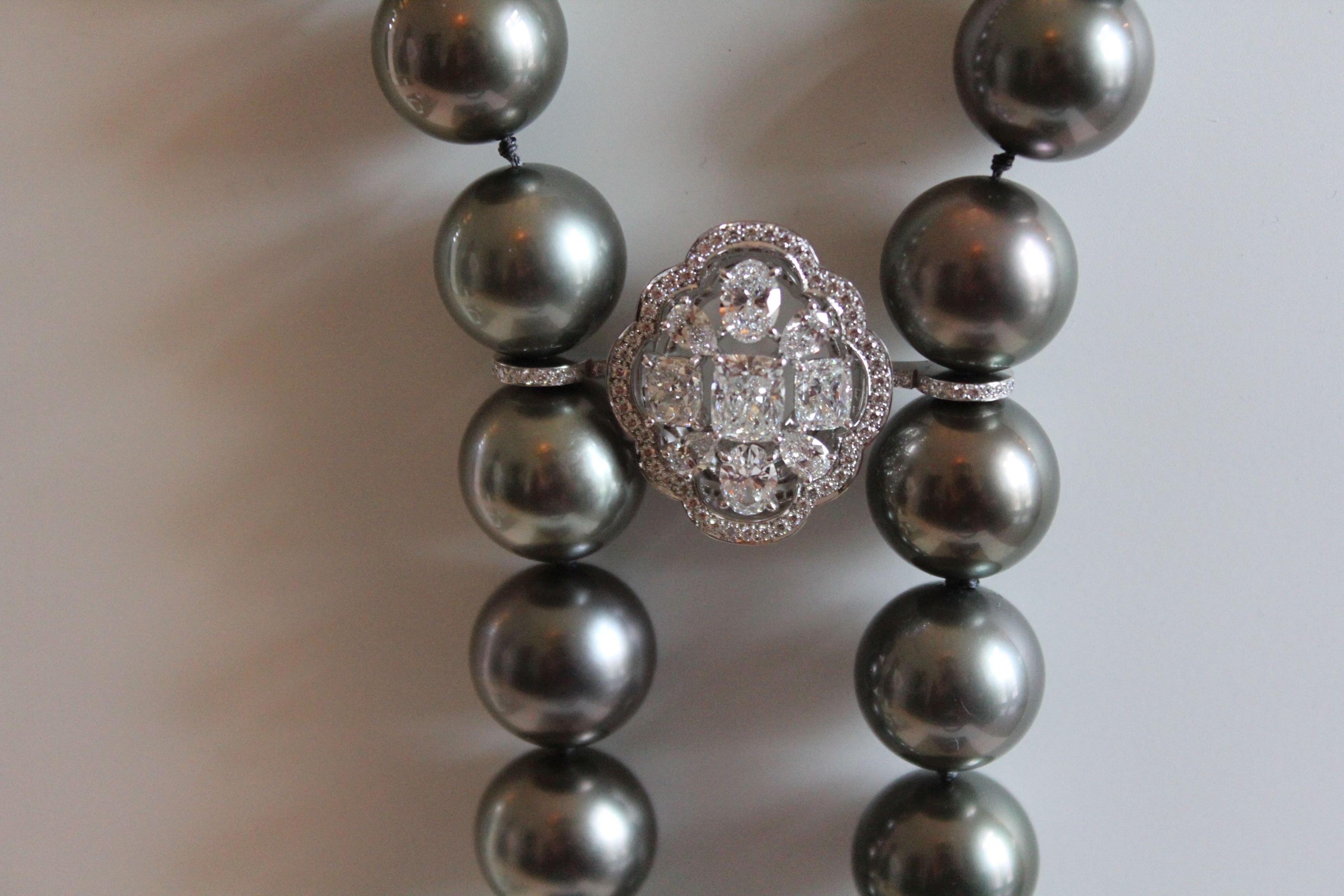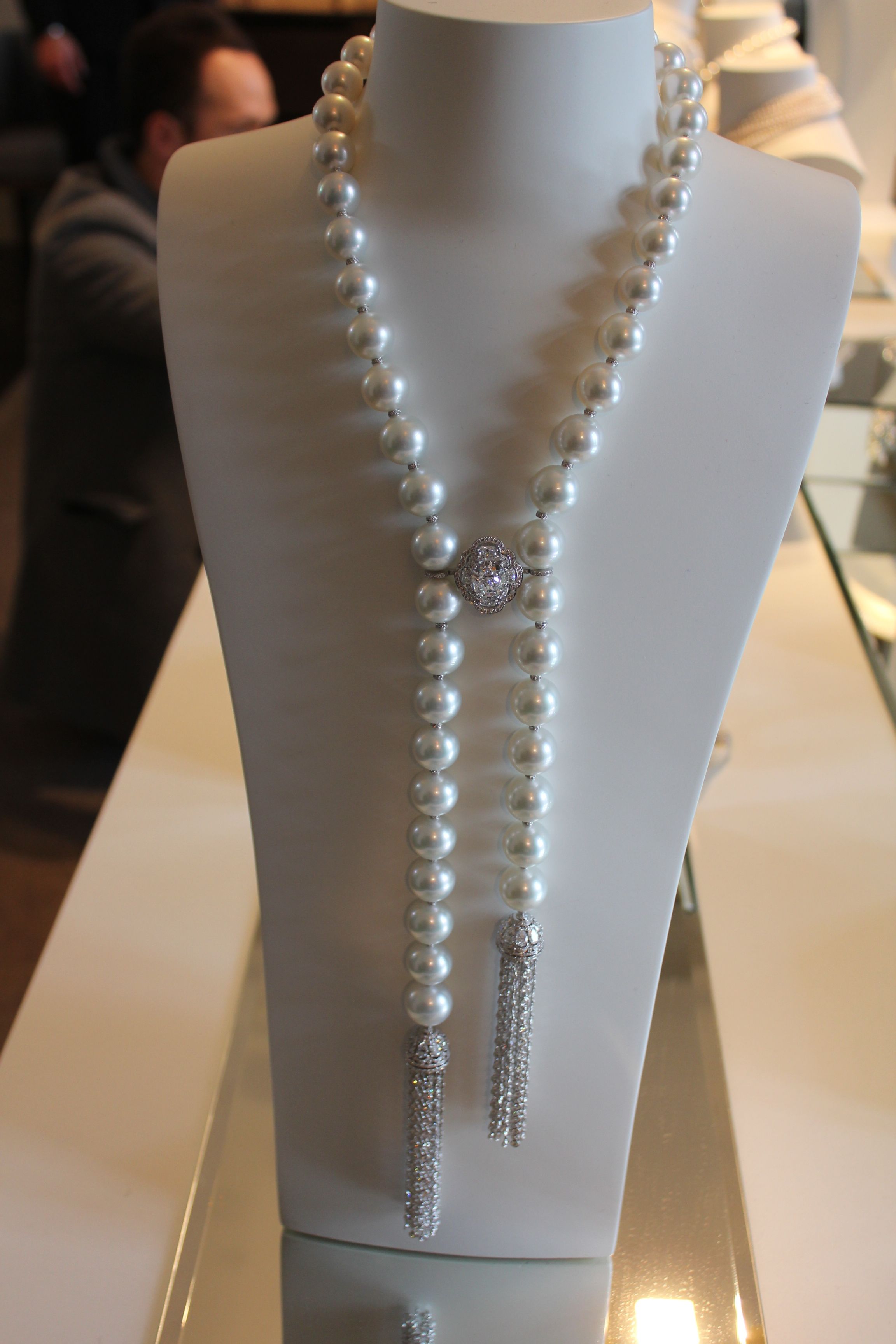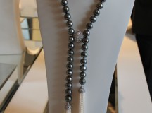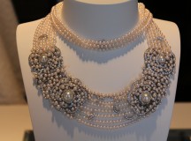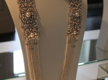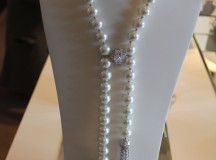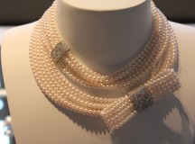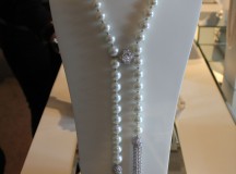 Le collier «Perles de Jour» est une étonnante chute de perles des Mers du Sud d’un diamètre spectaculaire somptueusement ponctuée d’un diamant de 8 carats… Le collier «Perles de Nuit» en est la magnifique réplique en perles grises de Tahiti.