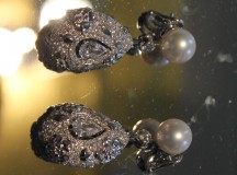 Boucles d’oreilles « Perles de Couture » en or blanc 18 carats serti de 210 diamants taille brillant pour un poids total de 4,6 carats et 44 perles de culture du Japon.