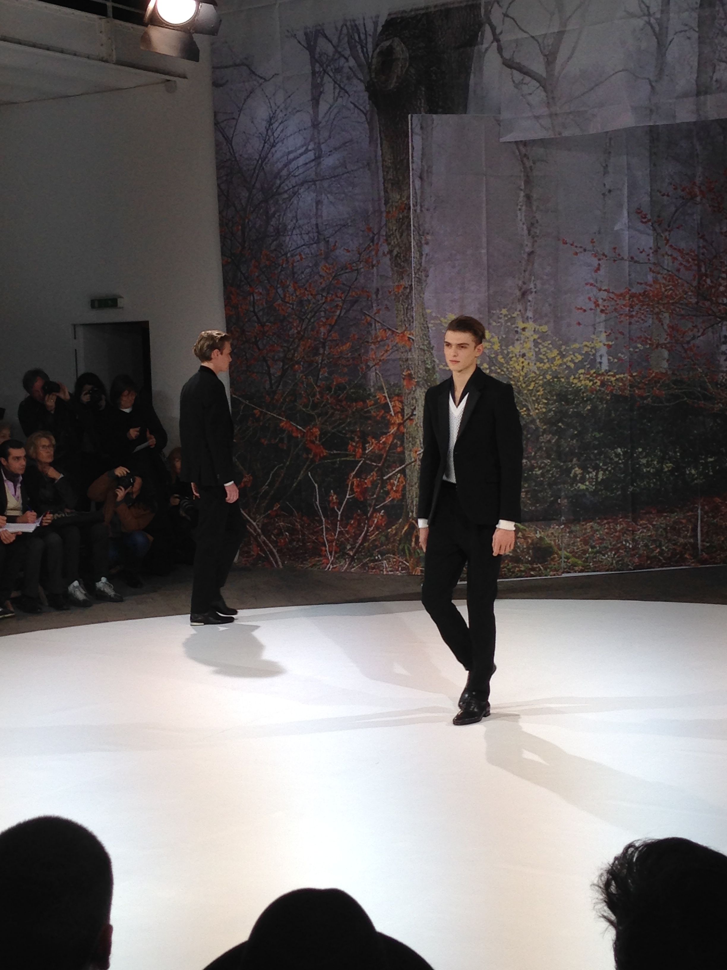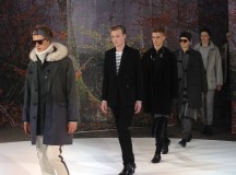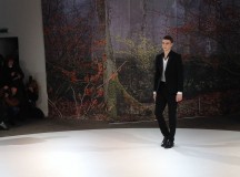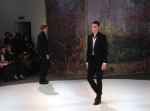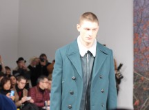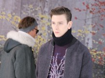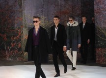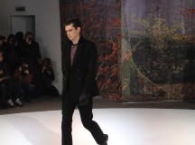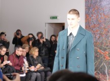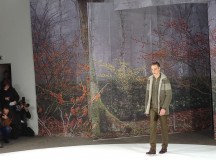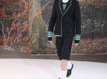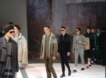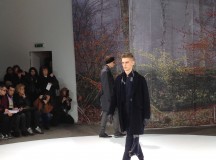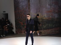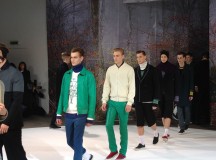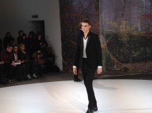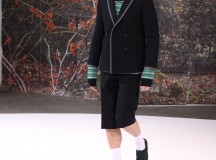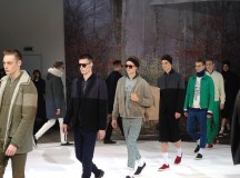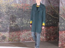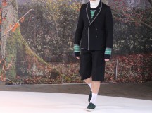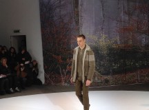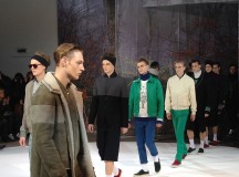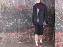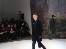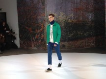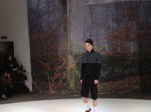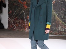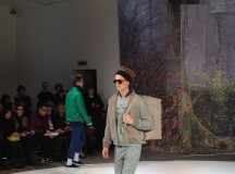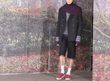 Melinda Gloss propose pour cette collection Automne Hiver 2014/2015 une collection graphique, aux coupes millimétrées et aux textures souples. L’homme Melinda Gloss est stylé et moderne, il mixe le tailoring plus classique avec des silhouettes plus amples. L’inspiration de cette saison sont les arbres généalogiques, les pixélisant à l’extreme pour créer des imprimés graphiques, broderies ou motifs de jacquard. Cet aspect graphique s’oppose aux couleurs « automnales » verts rappelant la foret, prunes, et aux ombrés. Les tricots répondent aux manteaux oversize, mais aussi aux parka bleues omniprésentes. Au pied les sneakers ont été fabriqué en collaboration avec le talentueux Eugène Riconneaus.