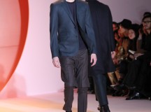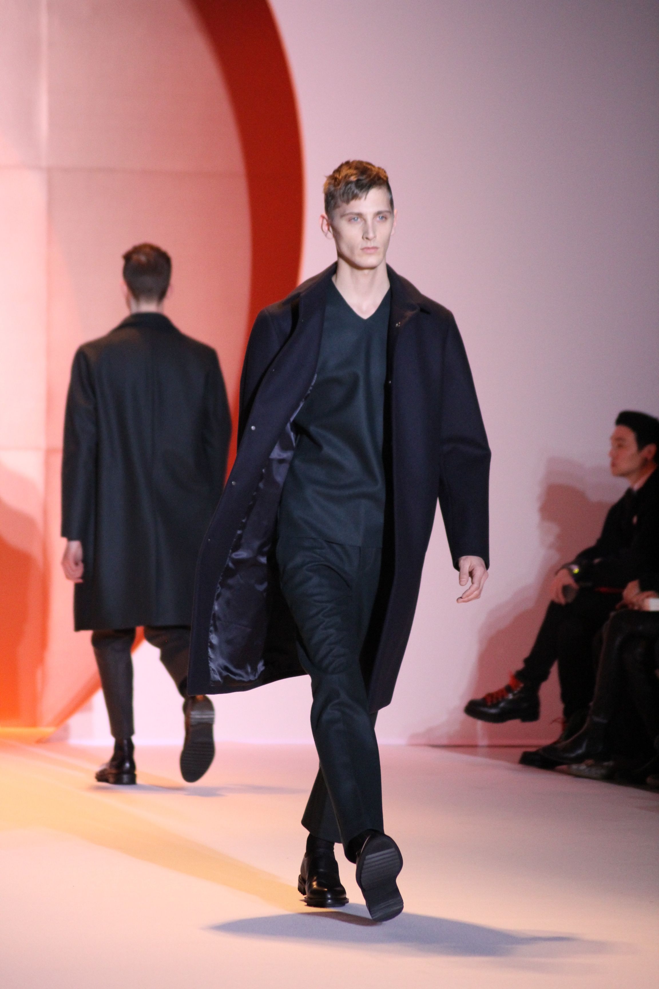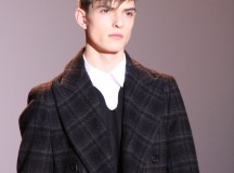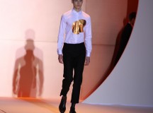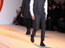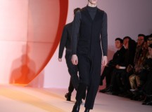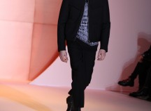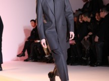 En allant puiser son inspiration dans les musées d’art moderne de la Tate Moderne et du Guggenheim de Bilbao, Wooyoungmi mélange architecture et art pour en tirer l’essence même de la forme et des coupes. Elle créée alors des silhouettes modernes qui défie les lois des proportions, des oeuvres de mode naissent alors sous nos yeux. Côté matière on joue sur le trompe l’oeil, les vestes deviennent des manteaux et vice versa, les épaules sont rondes, les coupes amples nous projetant dans un jeu de silhouette d’une modernité folle. Une fois encore Wooyoungmi nous séduit par cette collection masculine moderne et créative.