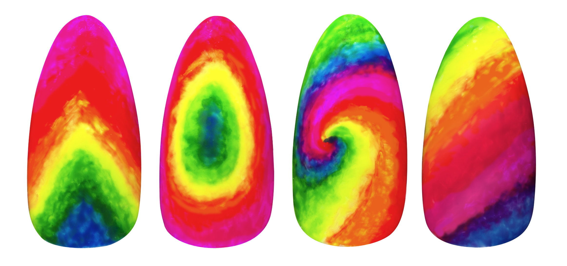 Désormais, pour sa seconde réincarnation, la gamme capture la folie du designer et son amour pour les couleurs en prenant la forme de faux ongles faciles à appliquer, inspirés du visuel kitsch des jeux de société, du tie dye des années 90 et de la nostalgie du rétro.