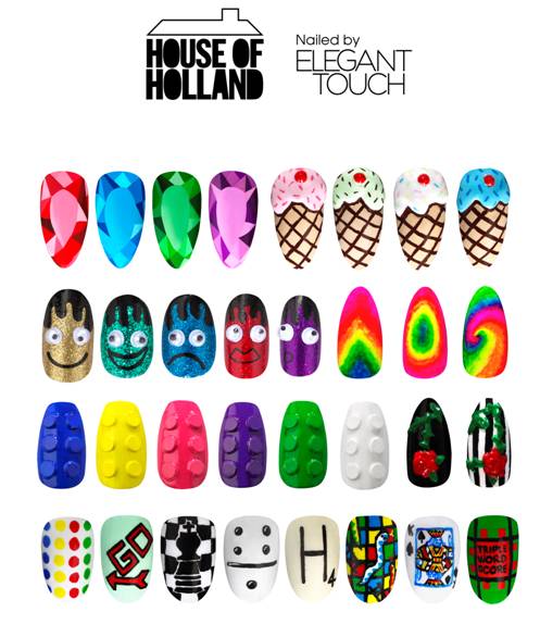 House of Holland X Elegant Touch apporte la touche d’humour légendaire d’Henry Holland, ainsi que des motifs irrésistibles jusqu’au bout de vos doigts avec sa collection ludique pour les ongles.