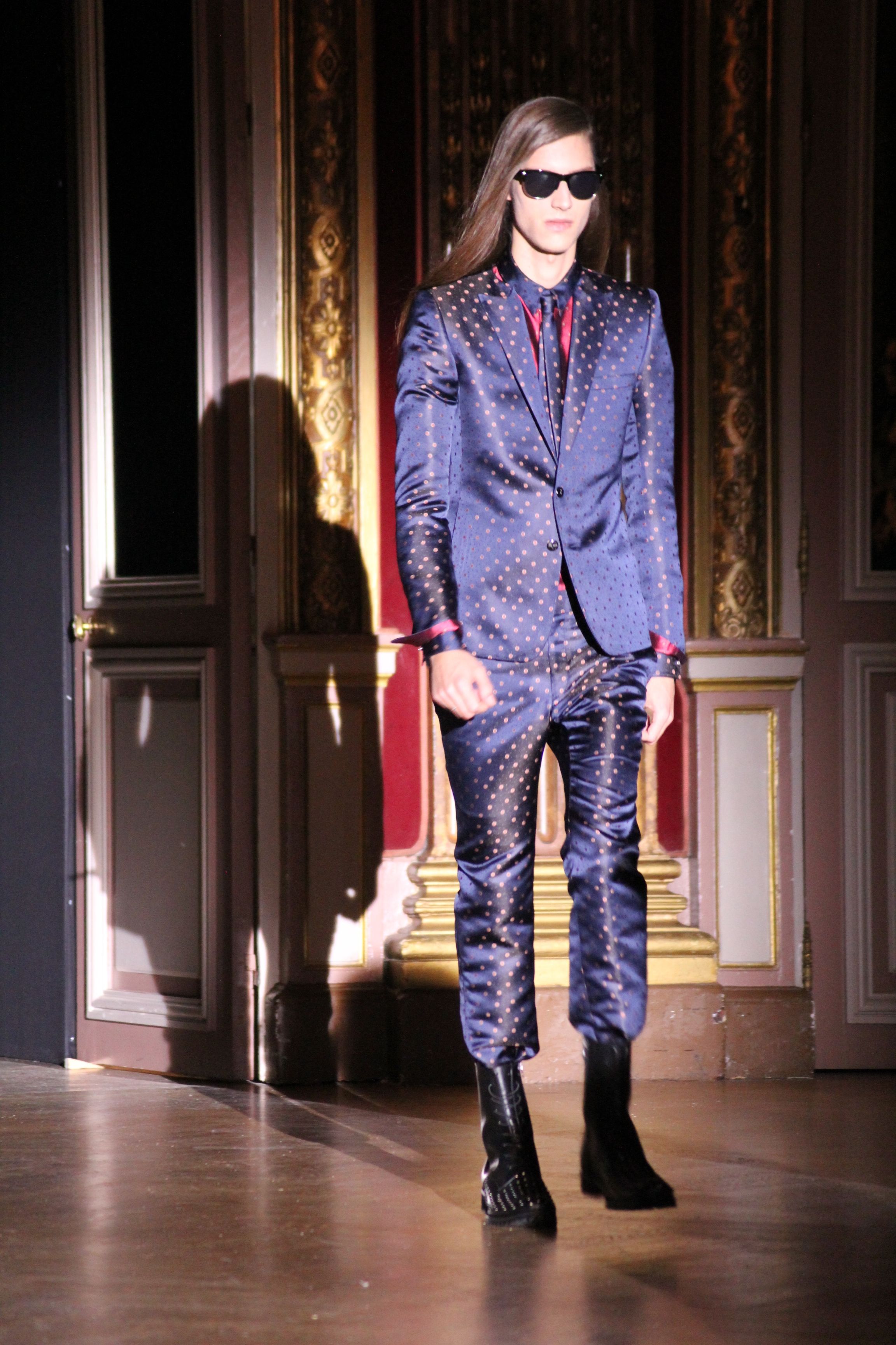 Rynshu continue à distiller saisons après saisons sa visions rock n roll et anticonformiste de la mode. Un rock glam sophistiqué et raffiné loin du grunge ambiant. Cette saison il revisite l’esprit tailleur, jouant sur les longueurs et reprenant ses codes de prédilection : rock et unisex.