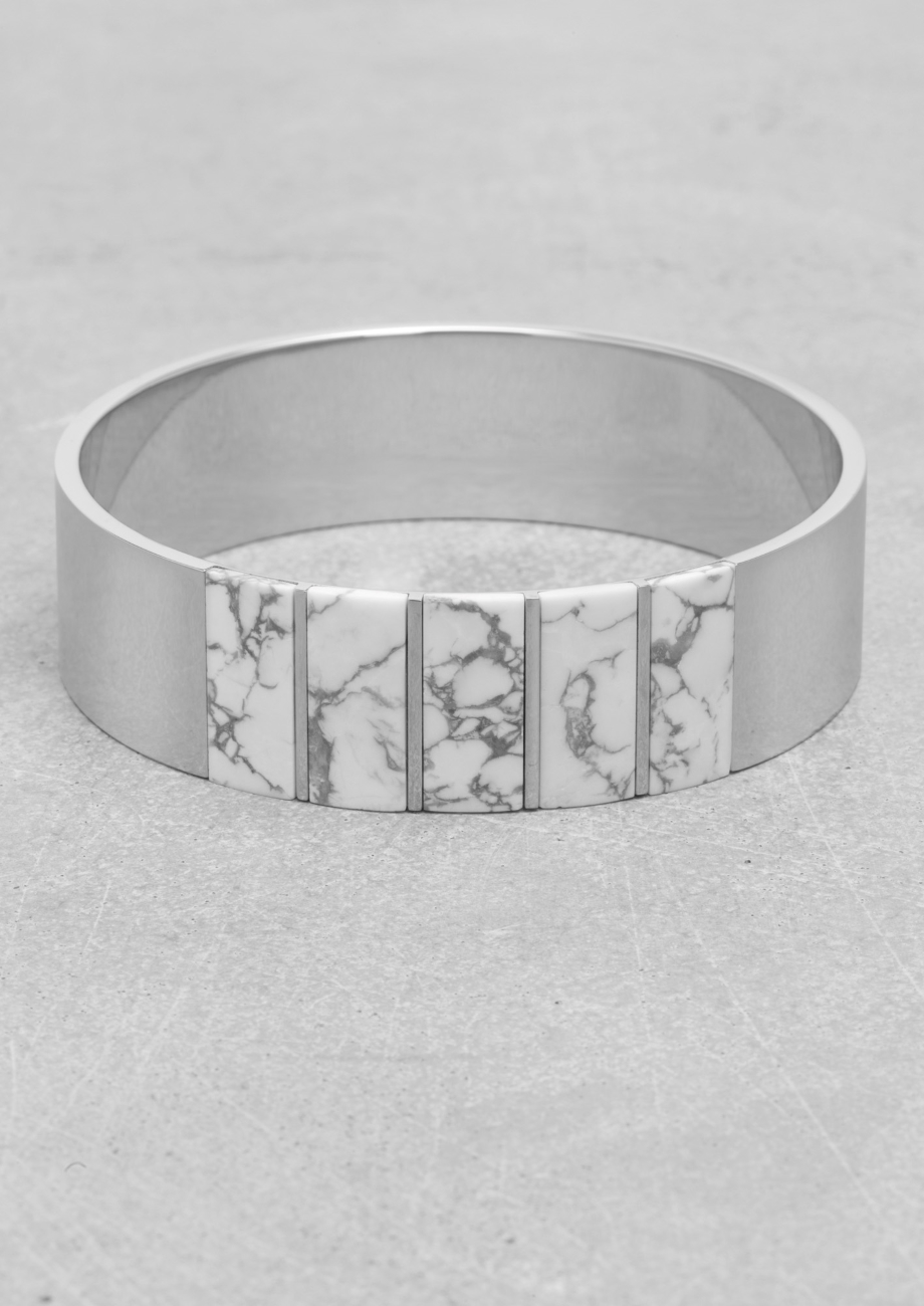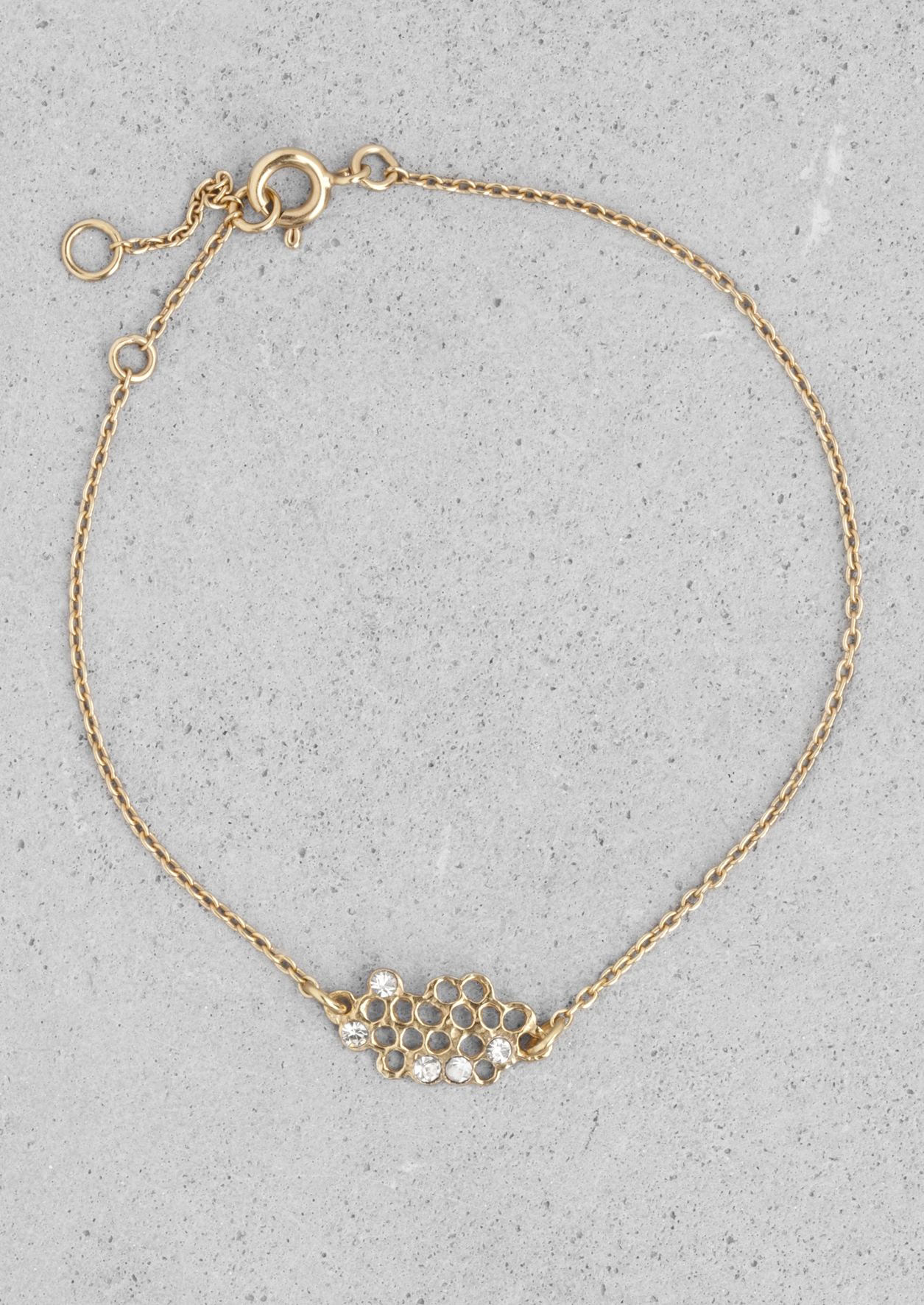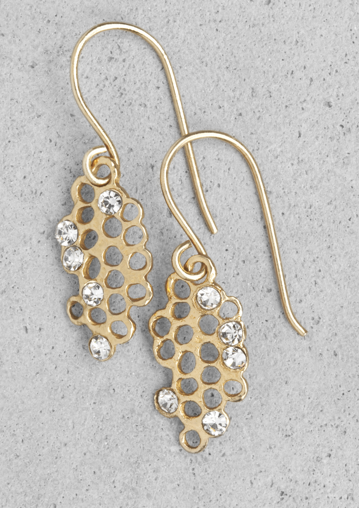 Inspirés de la nature, les bijoux de cette collection prennent la forme d’alvéoles de ruches d’abeille, incrustées de pierres brillantes, ou se parent de marbre pour un effet plus sophistiqué. Les matières sont nobles, en argent ou en plaqué or ; mais également en laiton et en pierres semi-précieuses.