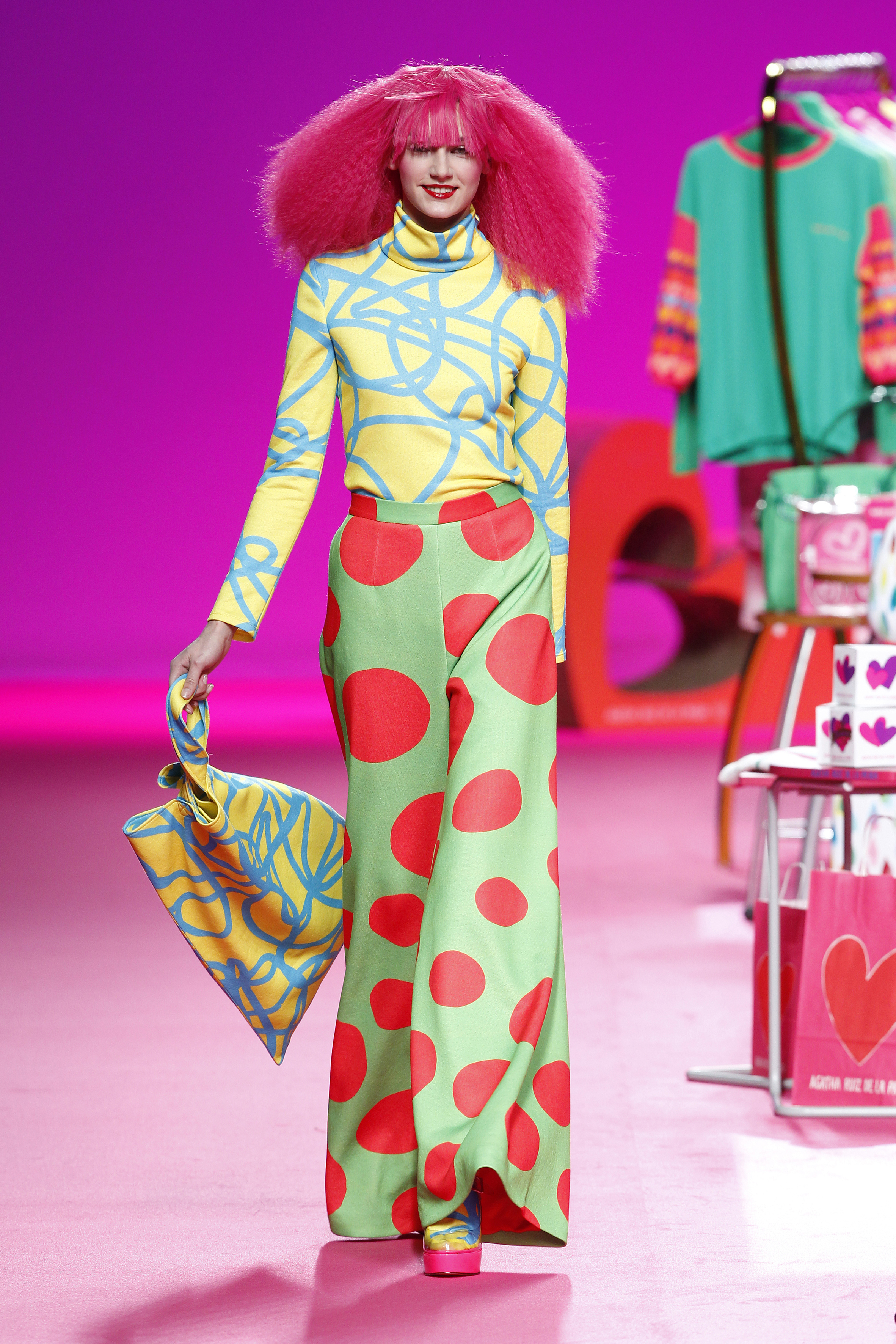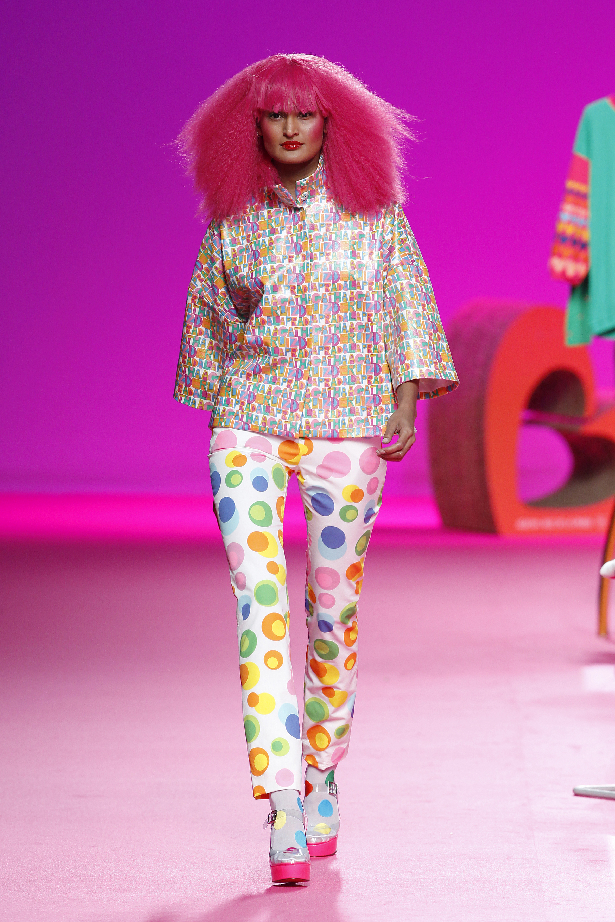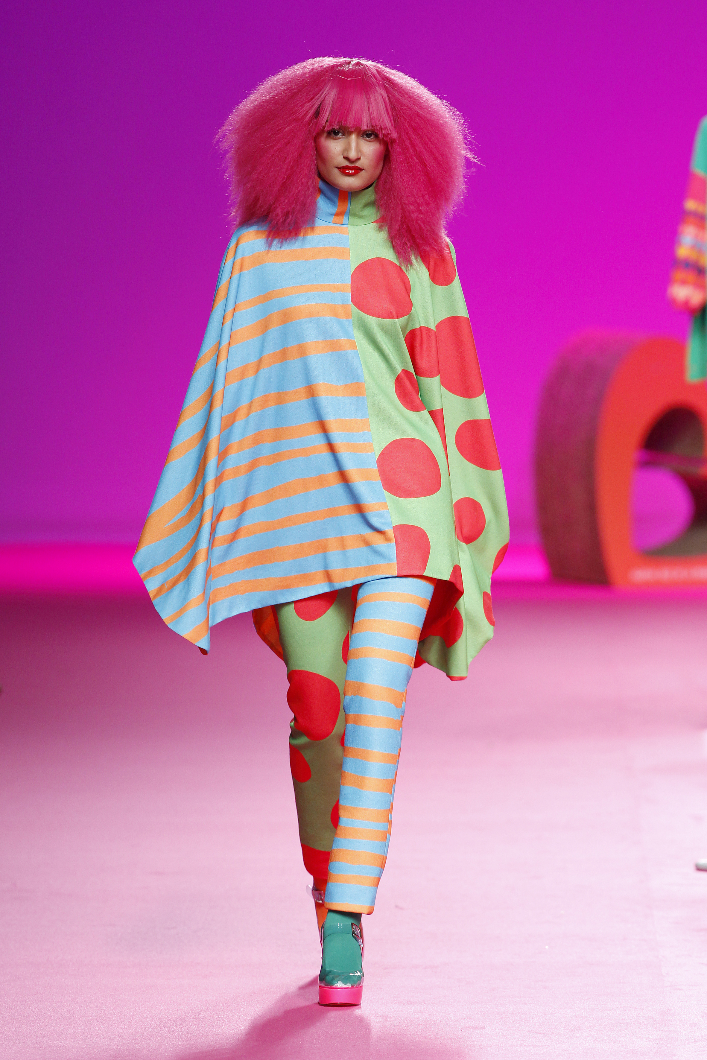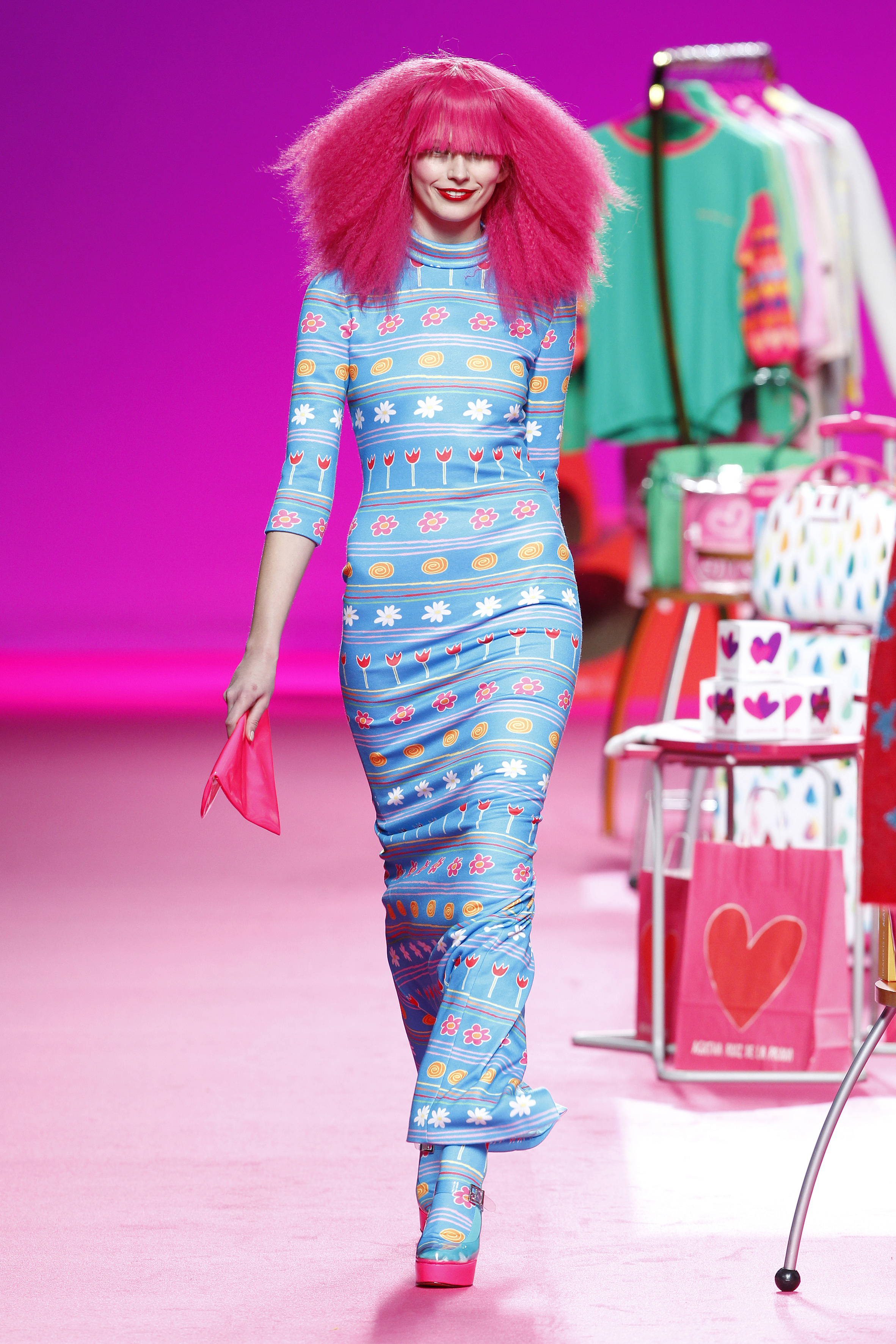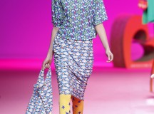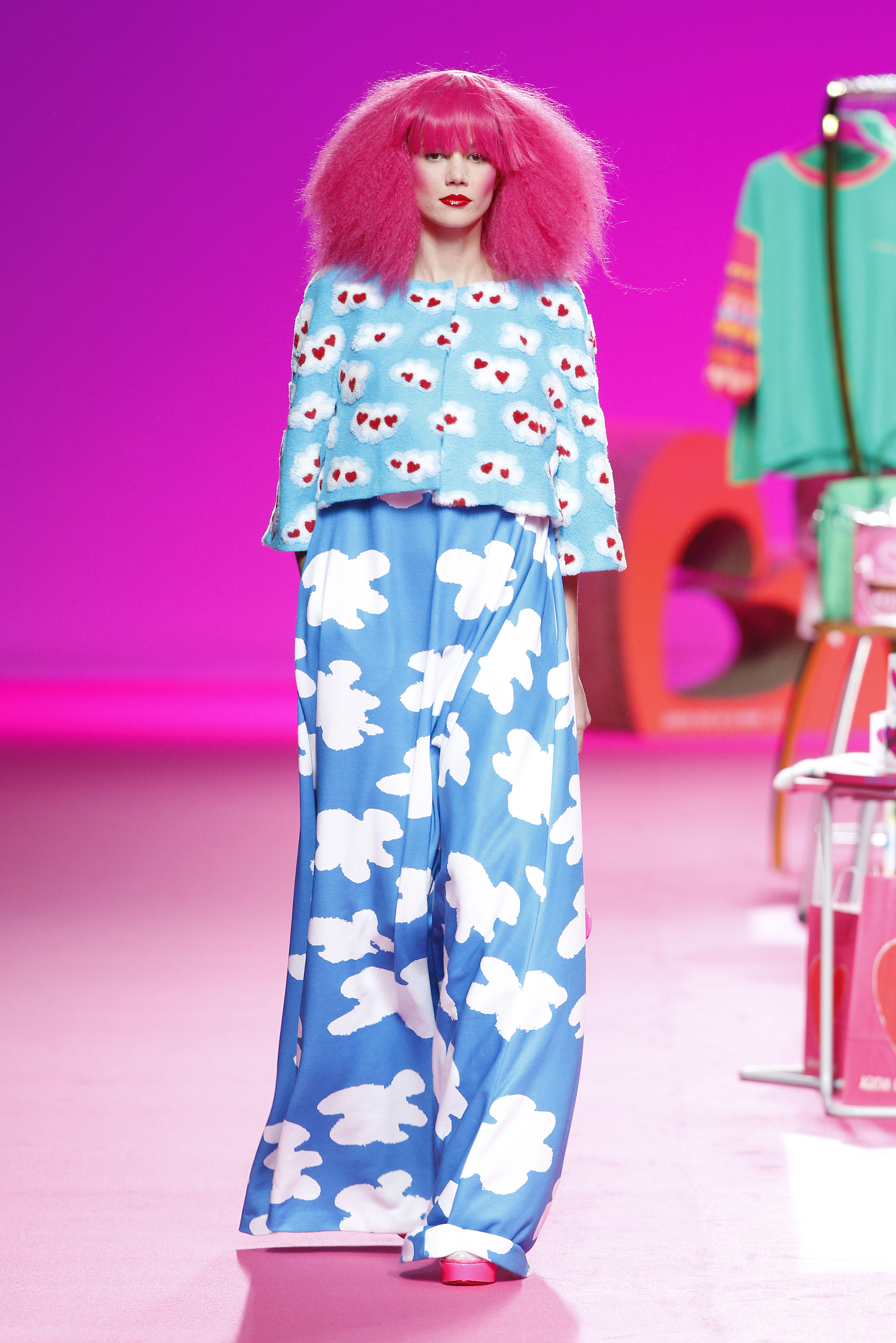 Agatha Ruiz de la Prada a présenté “Color Prints”, une collection qui incite au jeu, au plaisir, au confort, au recyclage des vêtements, à la pensée contemporaine, en somme, à l’idéologie que Agatha Ruiz de la Prada présente chaque saison depuis ses débuts. Une collection destinée à une femme tout à fait libre.