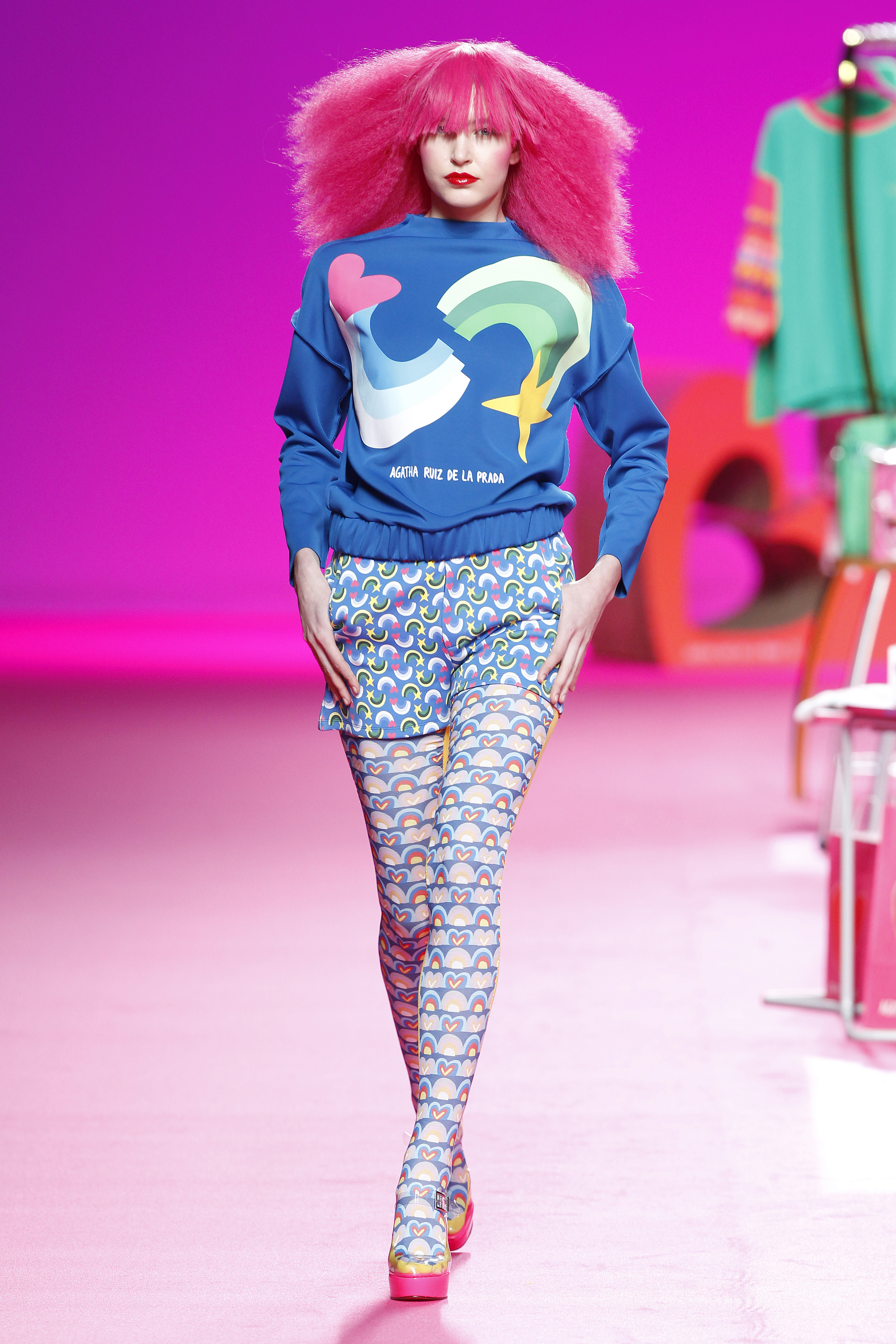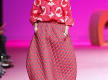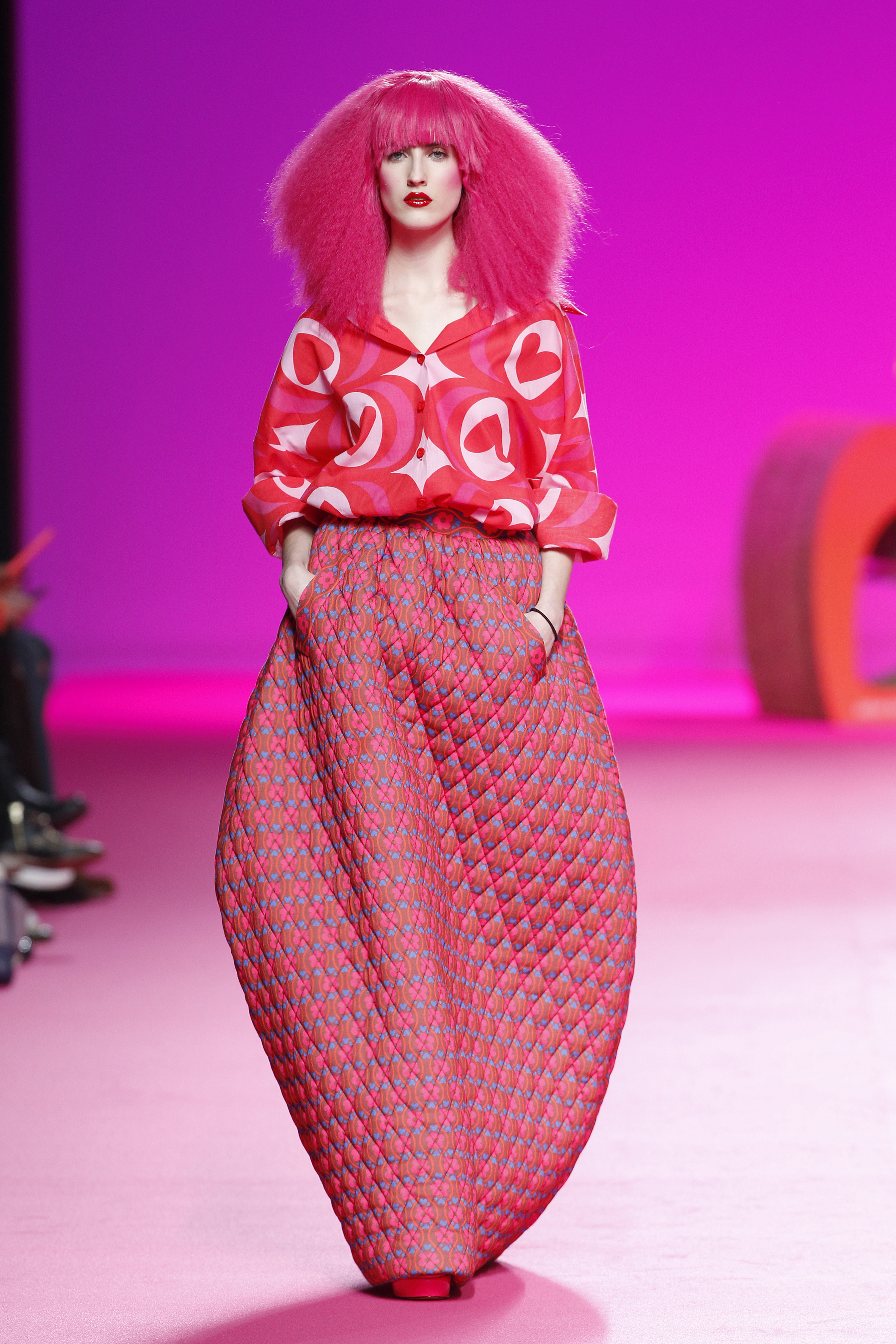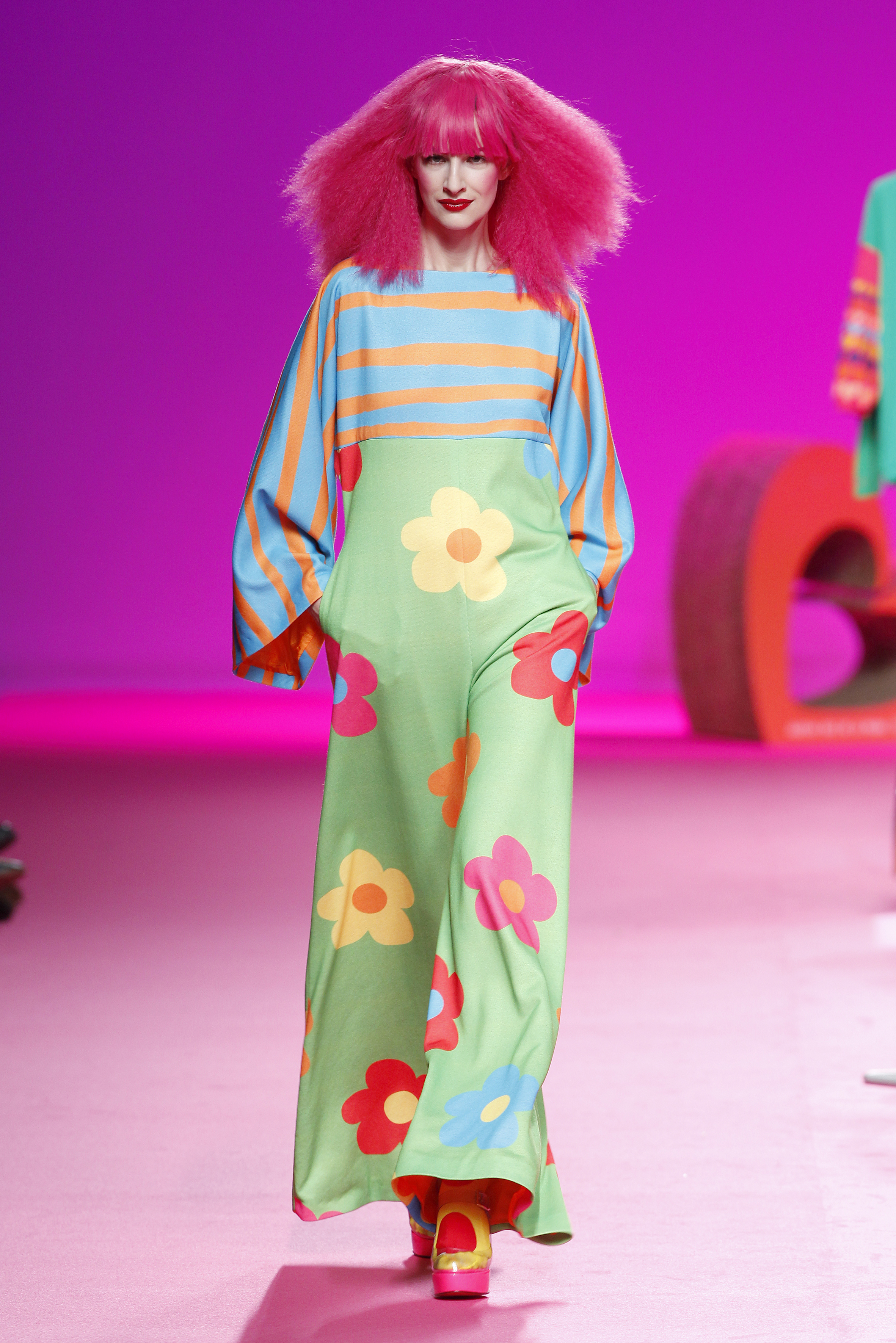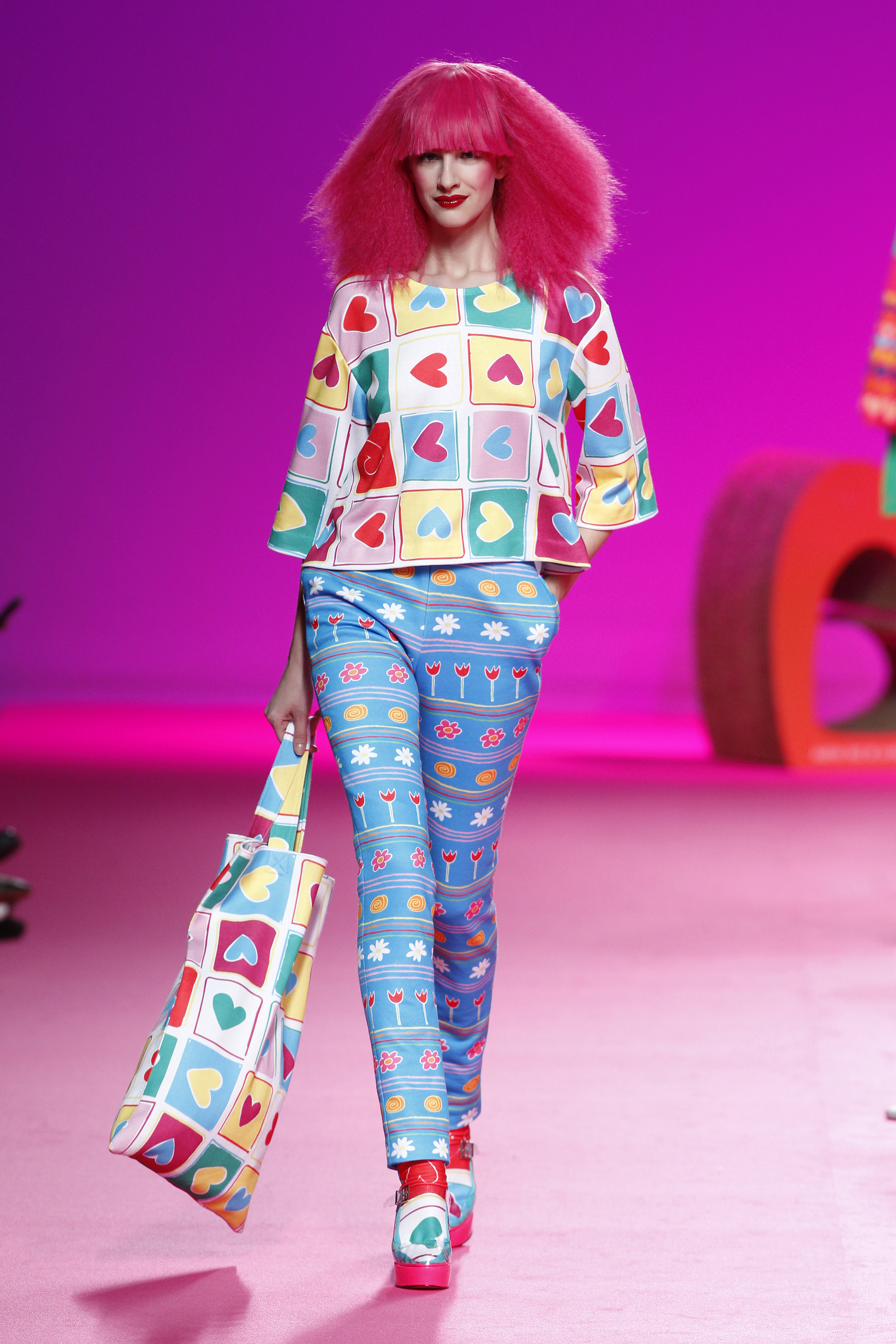 Agatha Ruiz de la Prada a présenté “Color Prints”, une collection qui incite au jeu, au plaisir, au confort, au recyclage des vêtements, à la pensée contemporaine, en somme, à l’idéologie que Agatha Ruiz de la Prada présente chaque saison depuis ses débuts. Une collection destinée à une femme tout à fait libre.