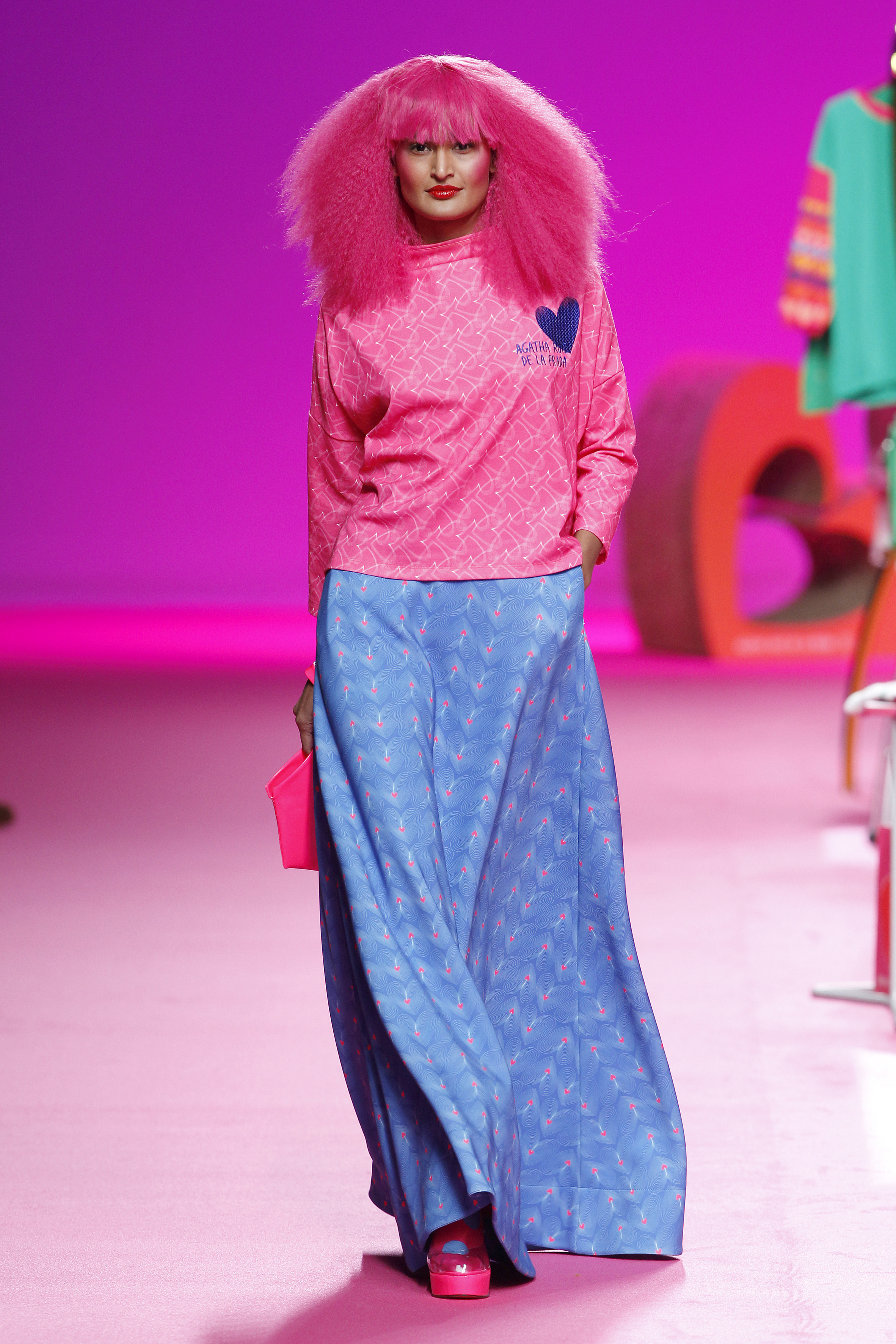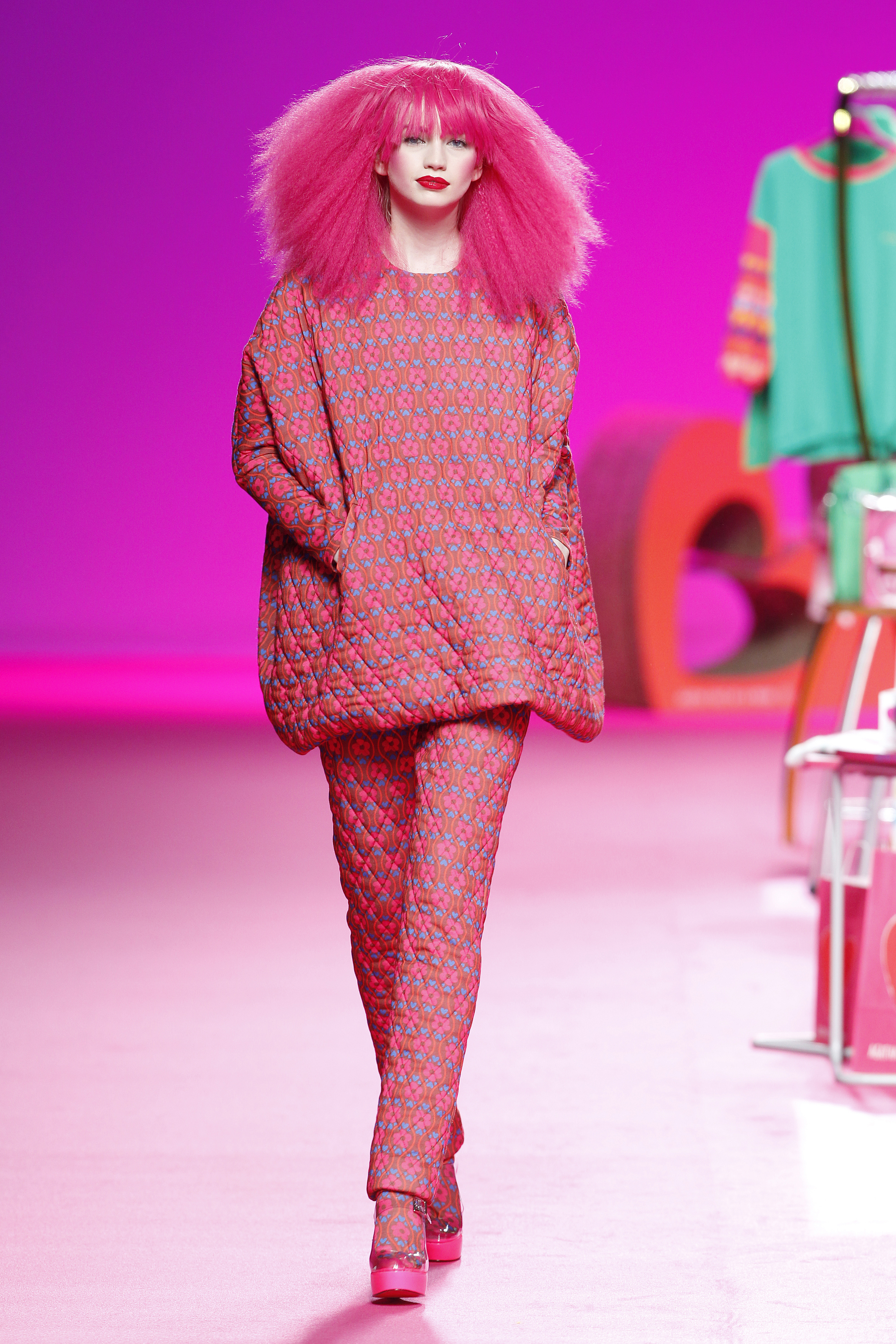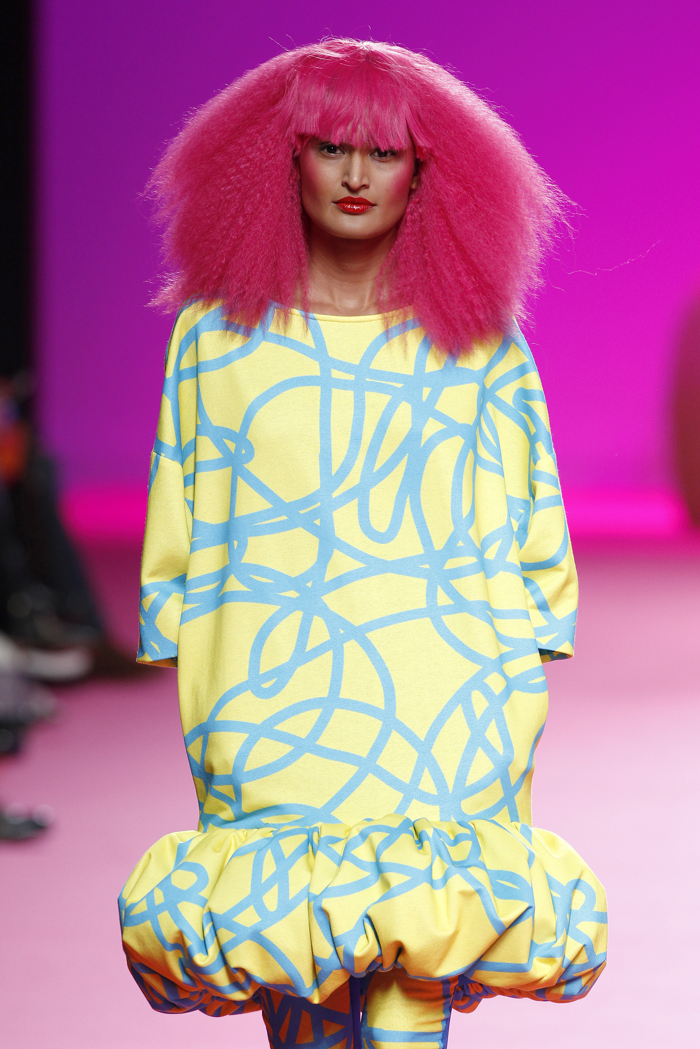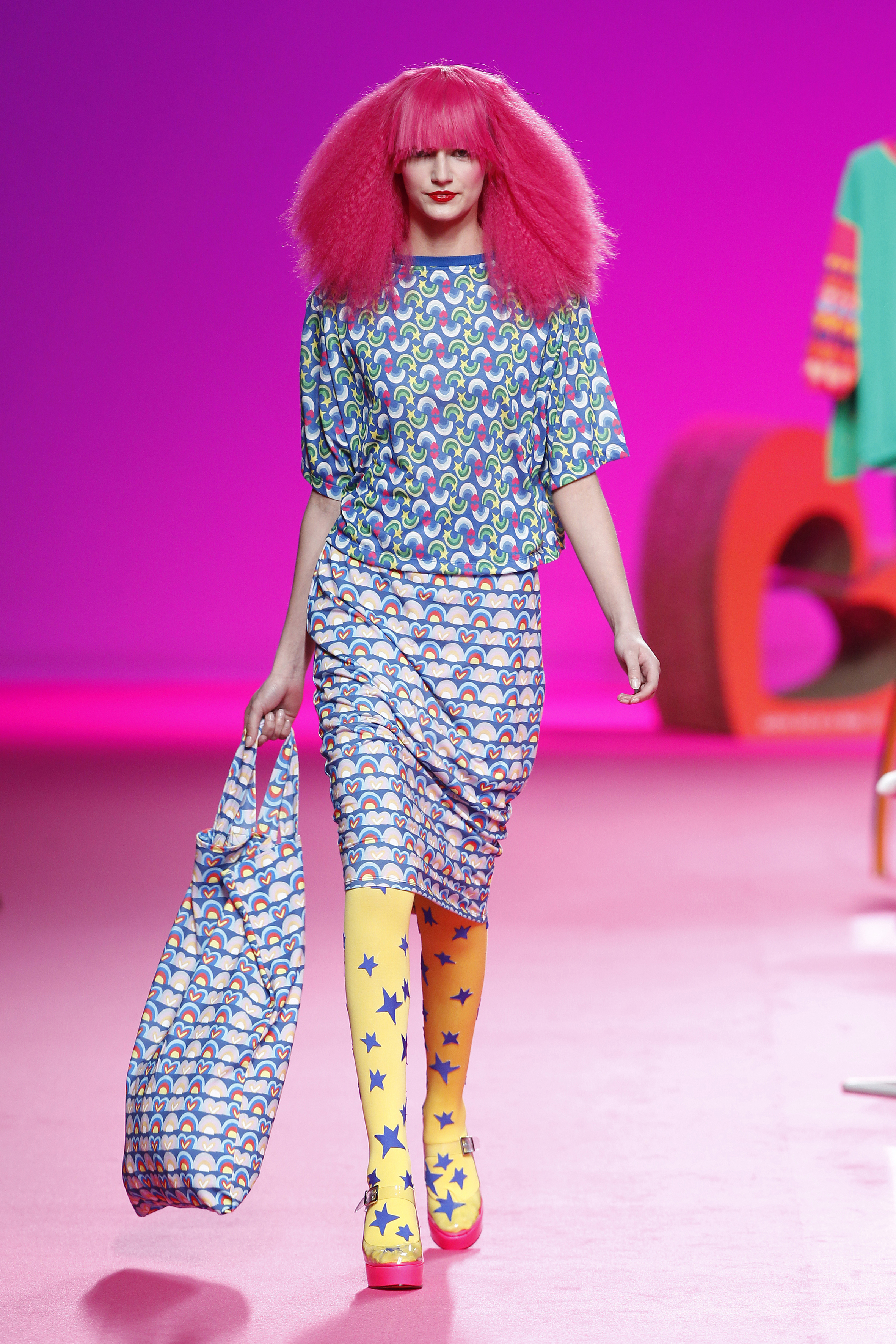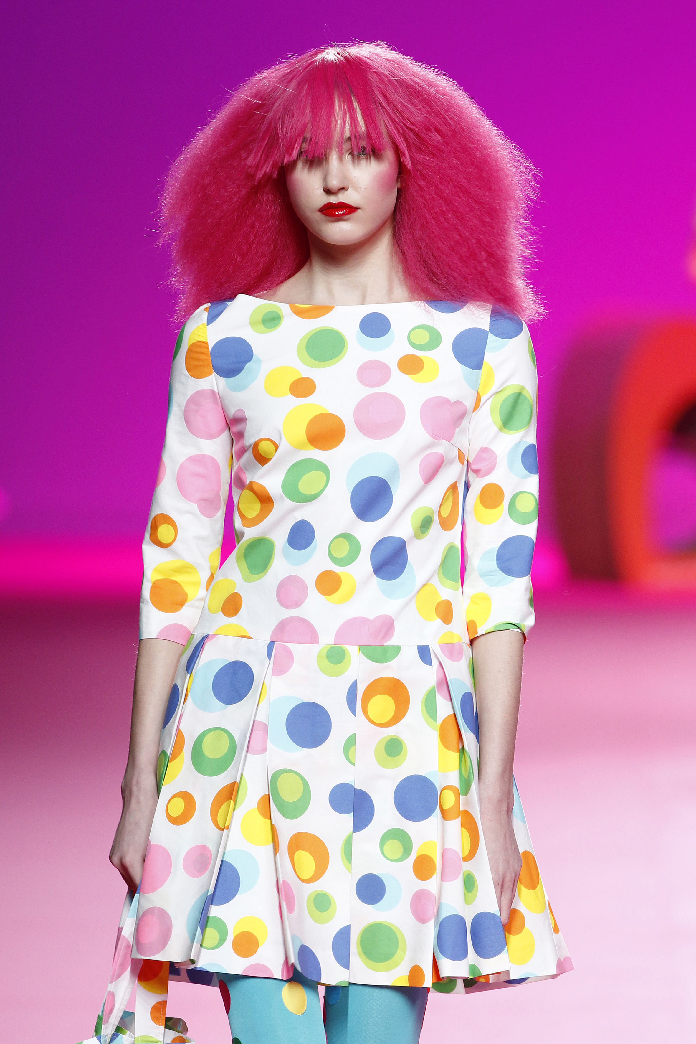 Agatha Ruiz de la Prada a présenté “Color Prints”, une collection qui incite au jeu, au plaisir, au confort, au recyclage des vêtements, à la pensée contemporaine, en somme, à l’idéologie que Agatha Ruiz de la Prada présente chaque saison depuis ses débuts. Une collection destinée à une femme tout à fait libre.
