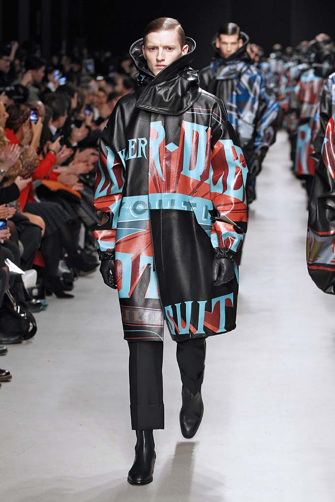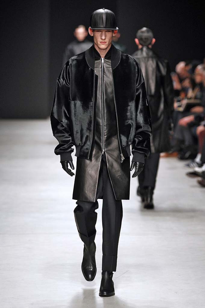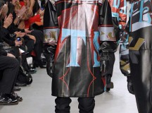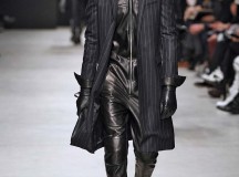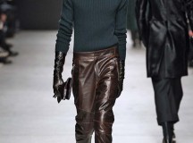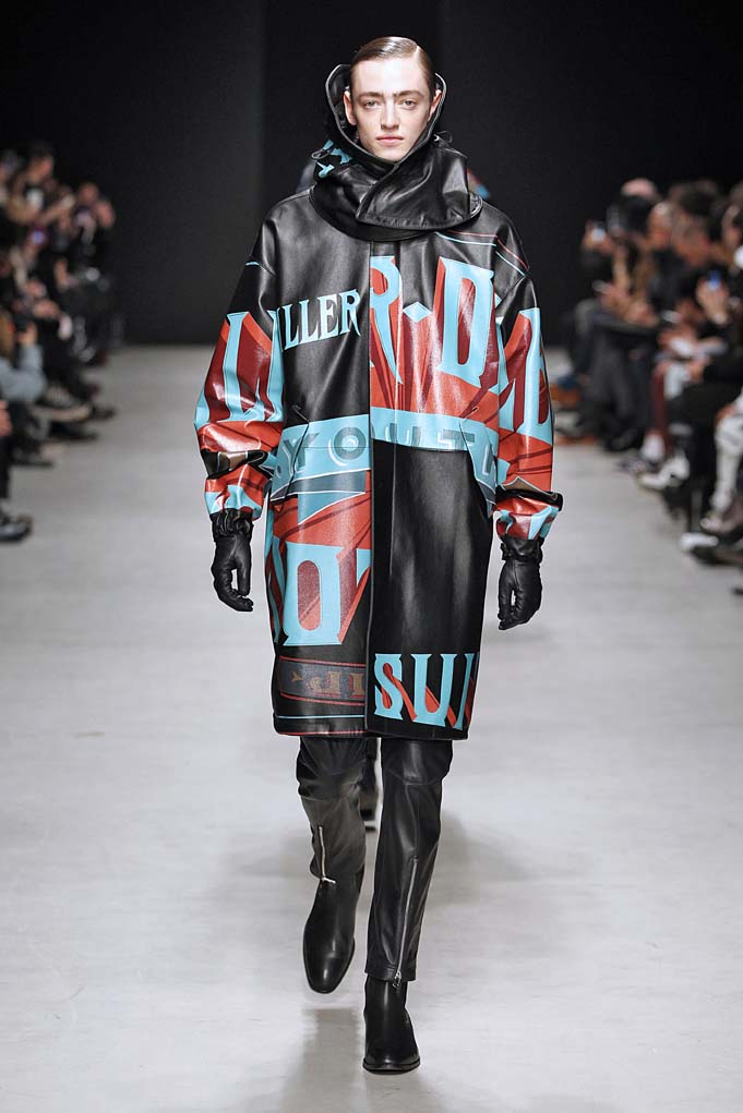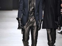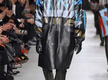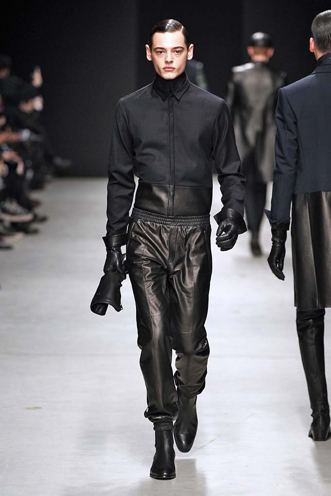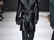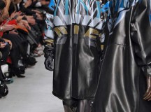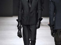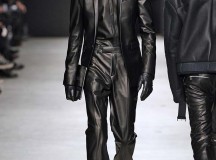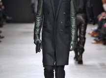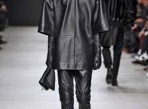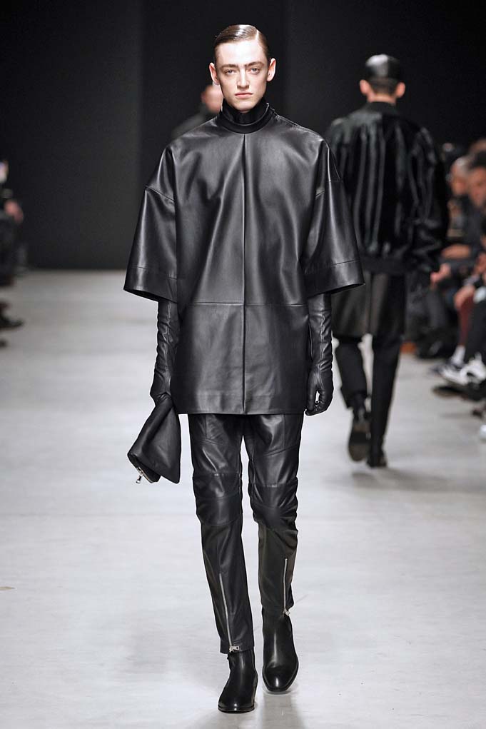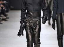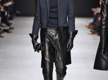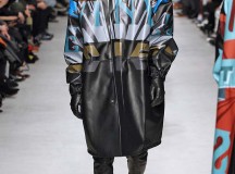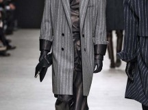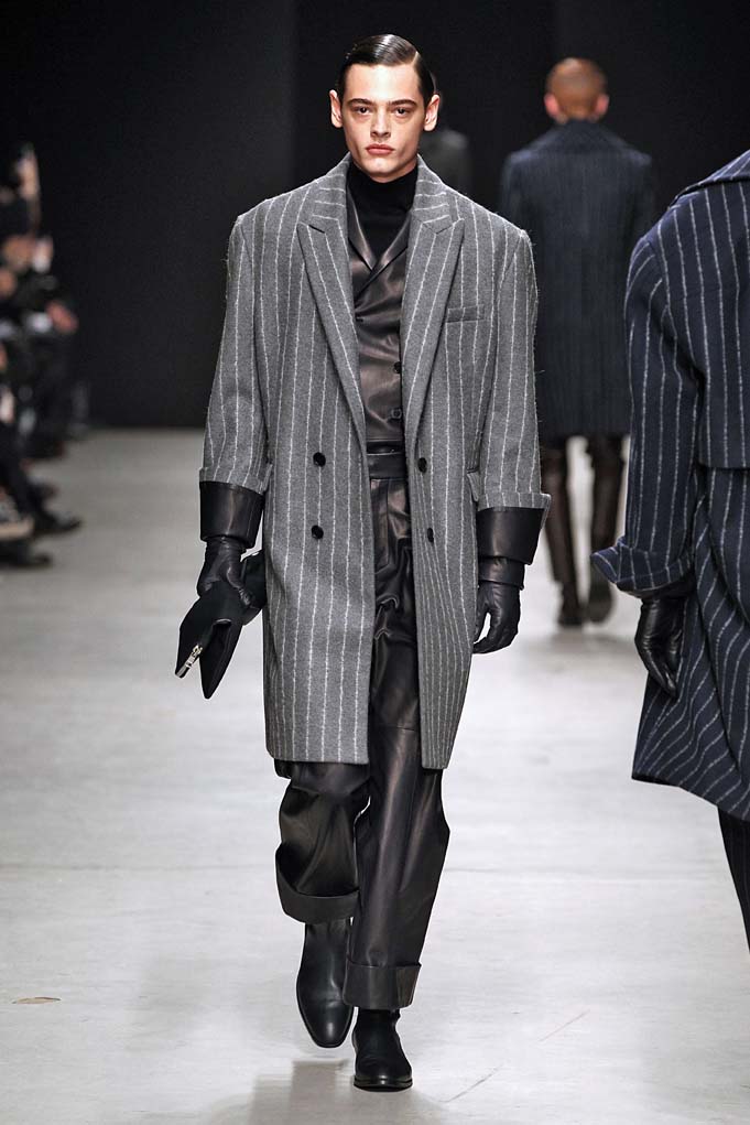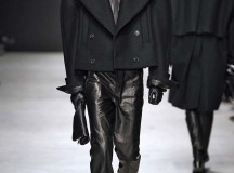 La matière retrouvée sur la plupart des looks est le cuir, sous toutes ses formes : détails, empiècements ou accessoires, l’homme Juun J est habillé de cuir pour ce futur hiver. Superposition de matières et de pièces, aux volumes majoritairement cintrés, l’allure complète se présente sous nos yeux, accessoirisée de gants, casquettes ou pochettes qui harmonisent et subliment le style Juun J.