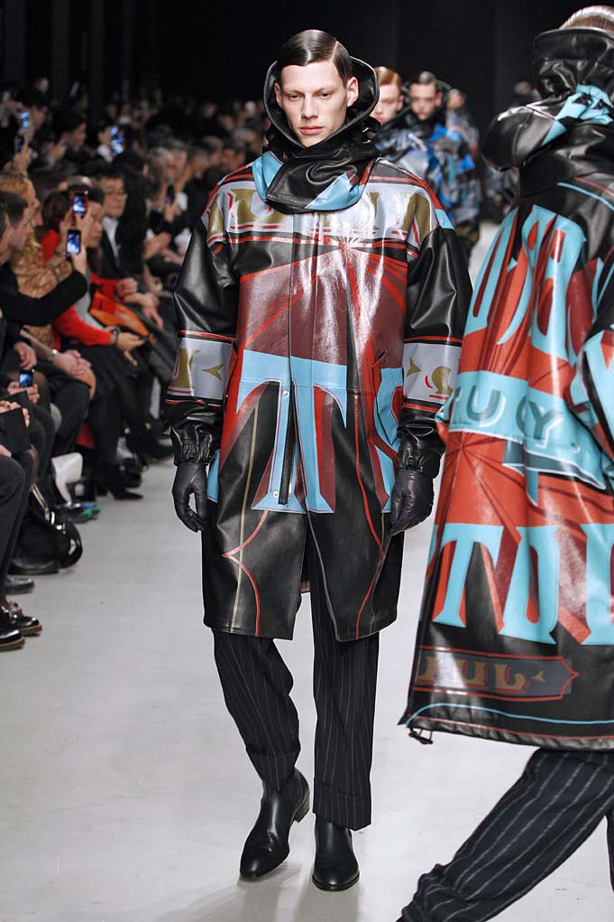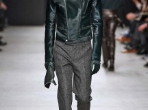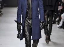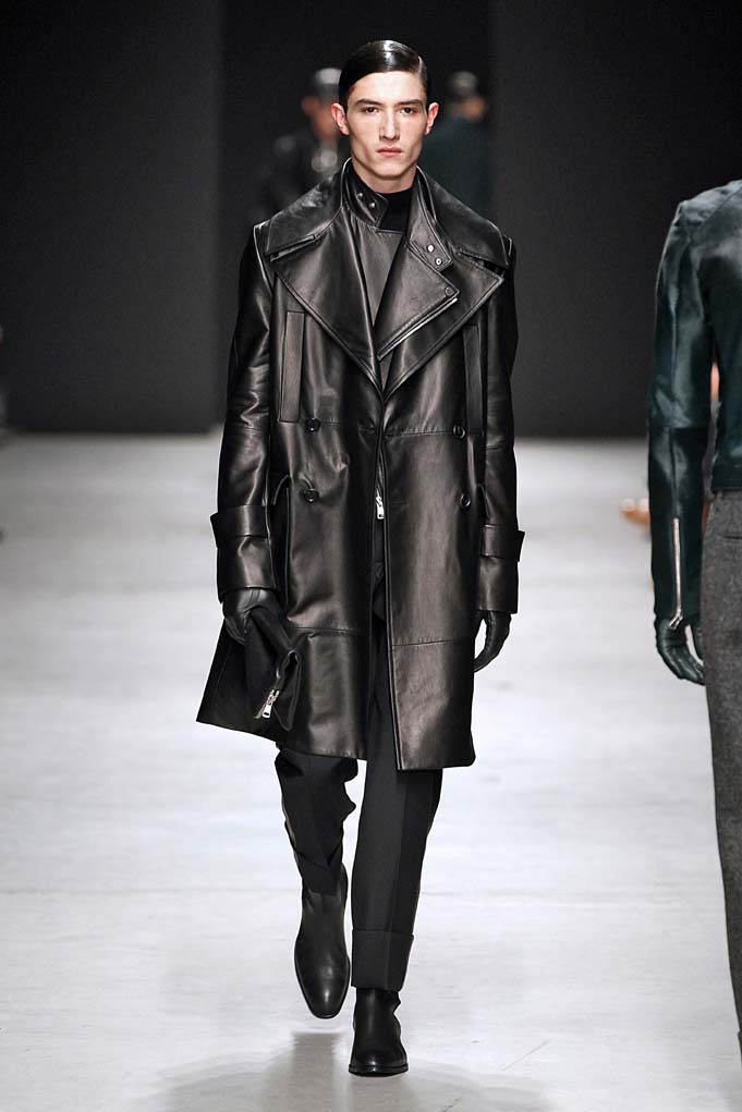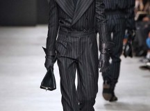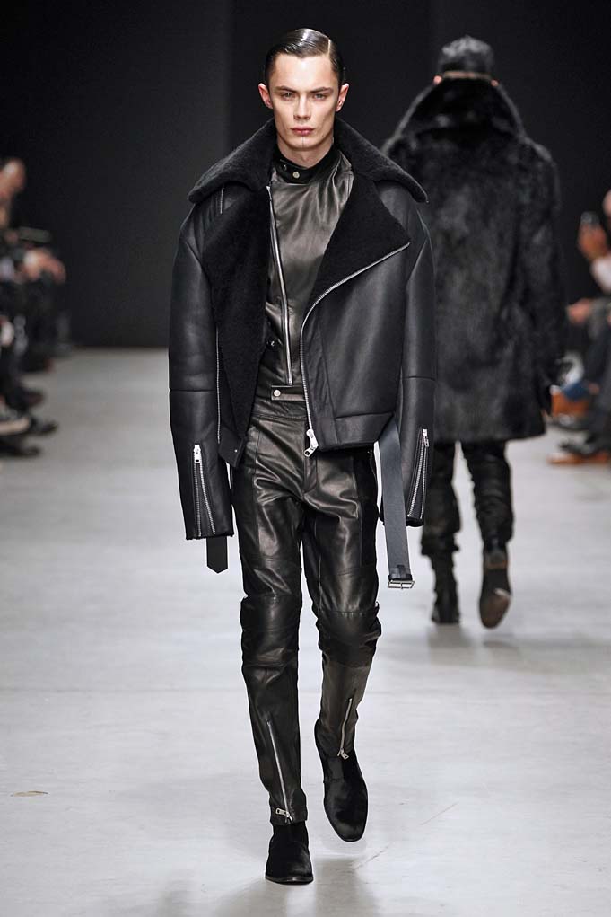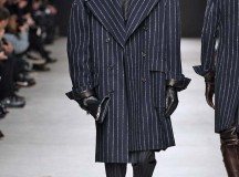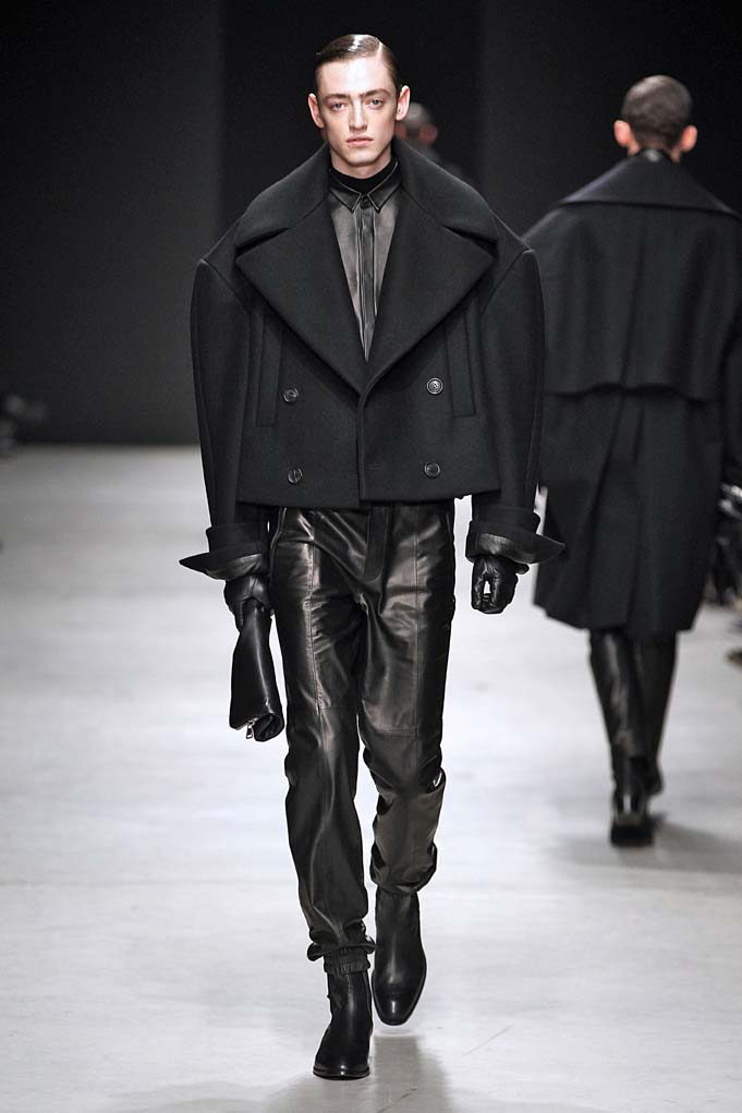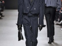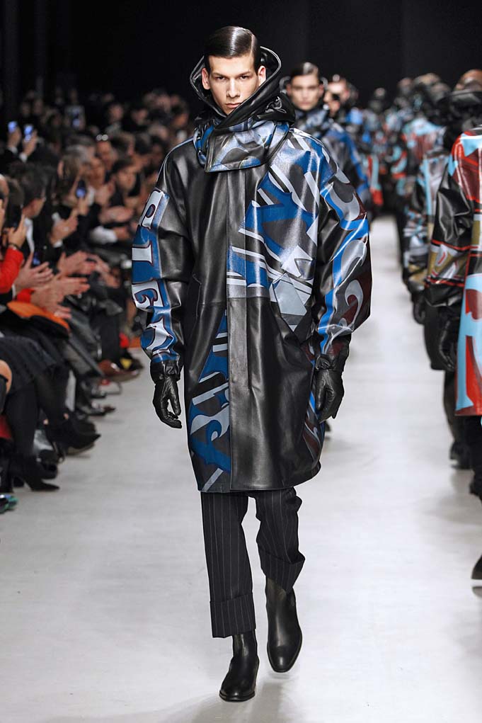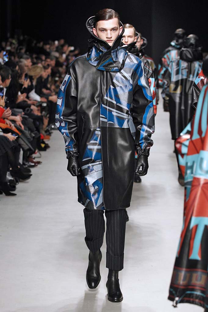 La matière retrouvée sur la plupart des looks est le cuir, sous toutes ses formes : détails, empiècements ou accessoires, l’homme Juun J est habillé de cuir pour ce futur hiver. Superposition de matières et de pièces, aux volumes majoritairement cintrés, l’allure complète se présente sous nos yeux, accessoirisée de gants, casquettes ou pochettes qui harmonisent et subliment le style Juun J.