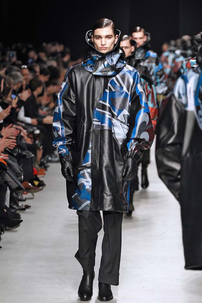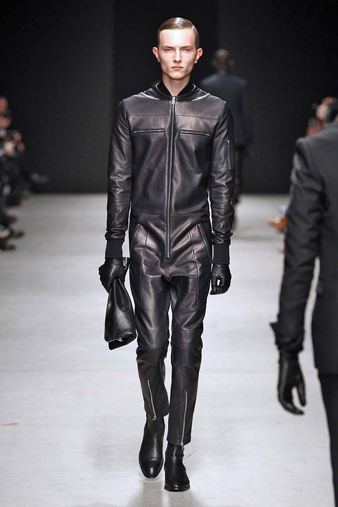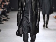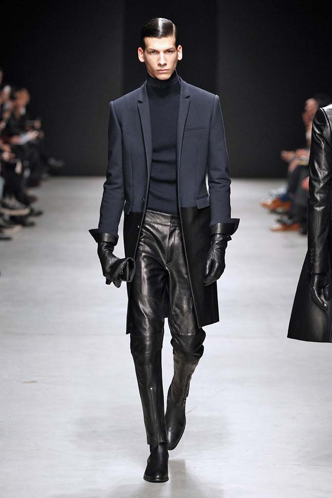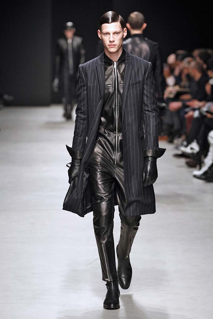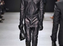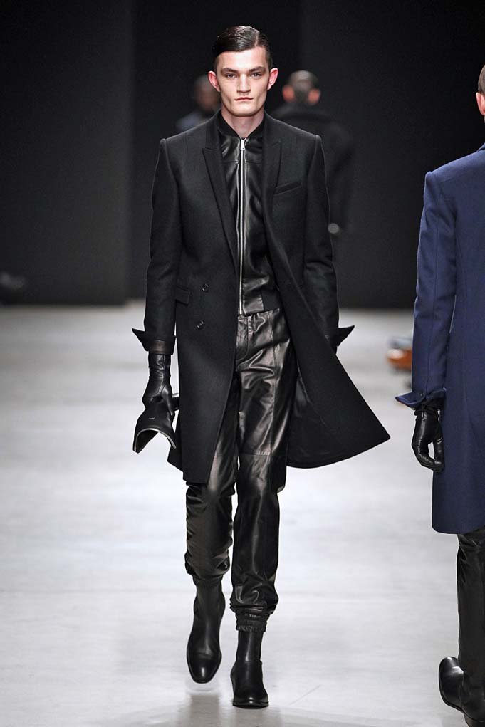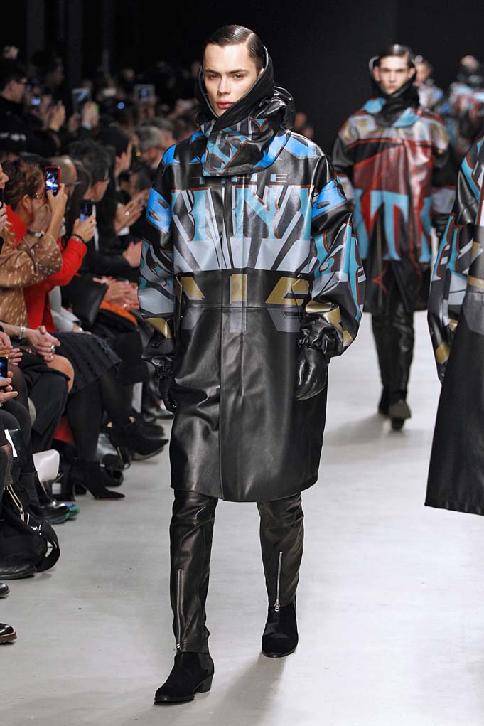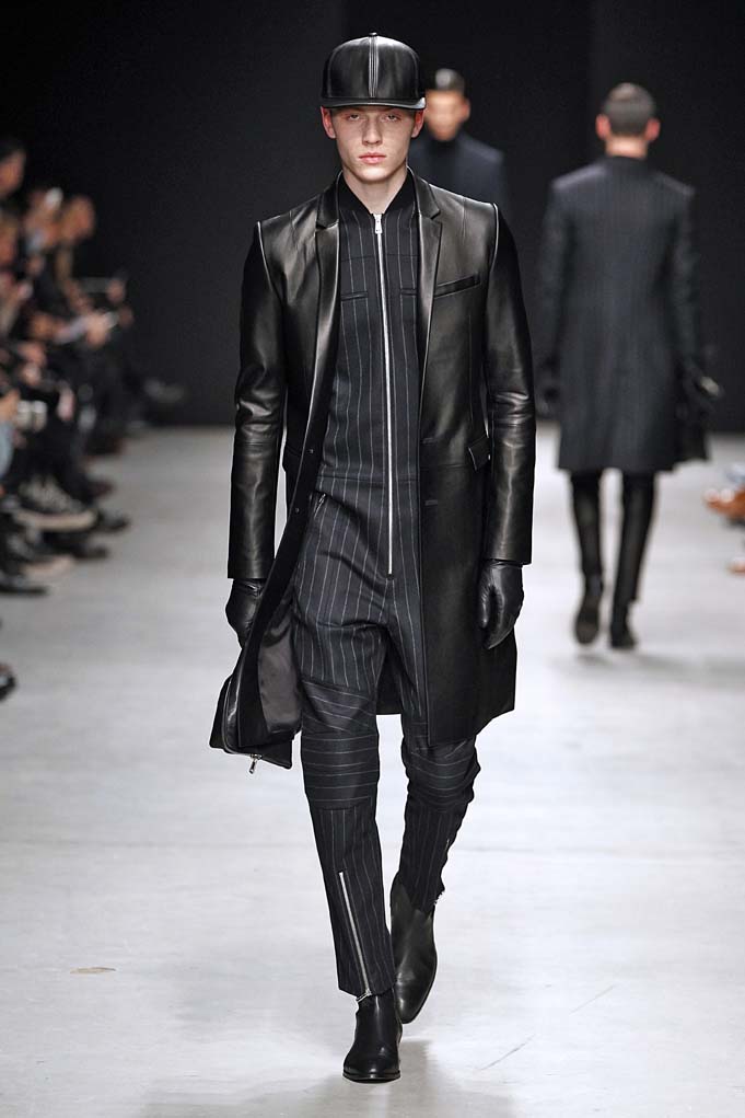 La matière retrouvée sur la plupart des looks est le cuir, sous toutes ses formes : détails, empiècements ou accessoires, l’homme Juun J est habillé de cuir pour ce futur hiver. Superposition de matières et de pièces, aux volumes majoritairement cintrés, l’allure complète se présente sous nos yeux, accessoirisée de gants, casquettes ou pochettes qui harmonisent et subliment le style Juun J.