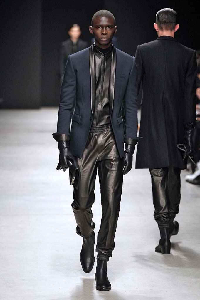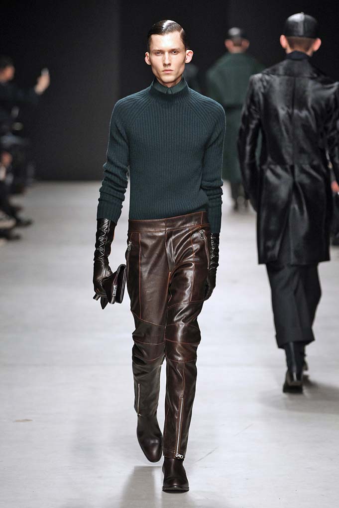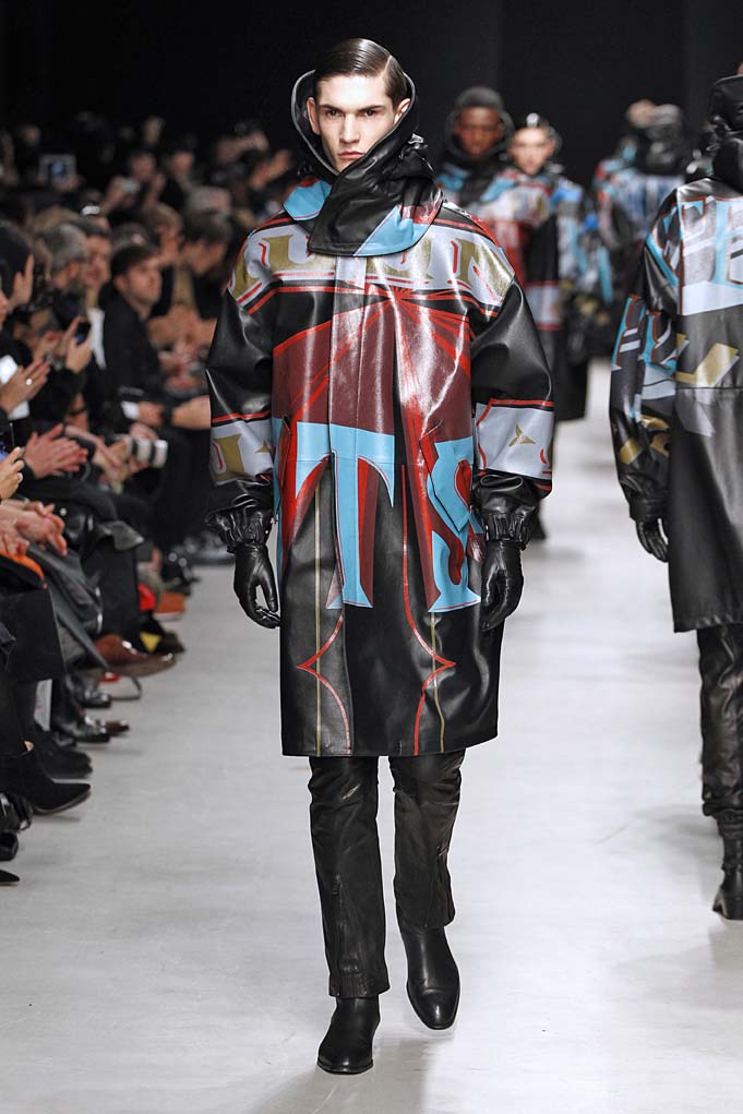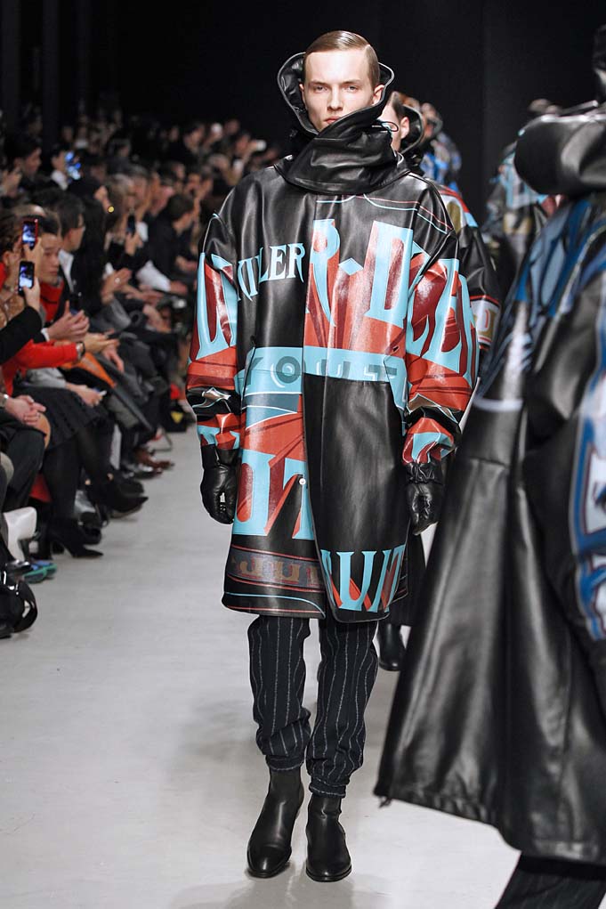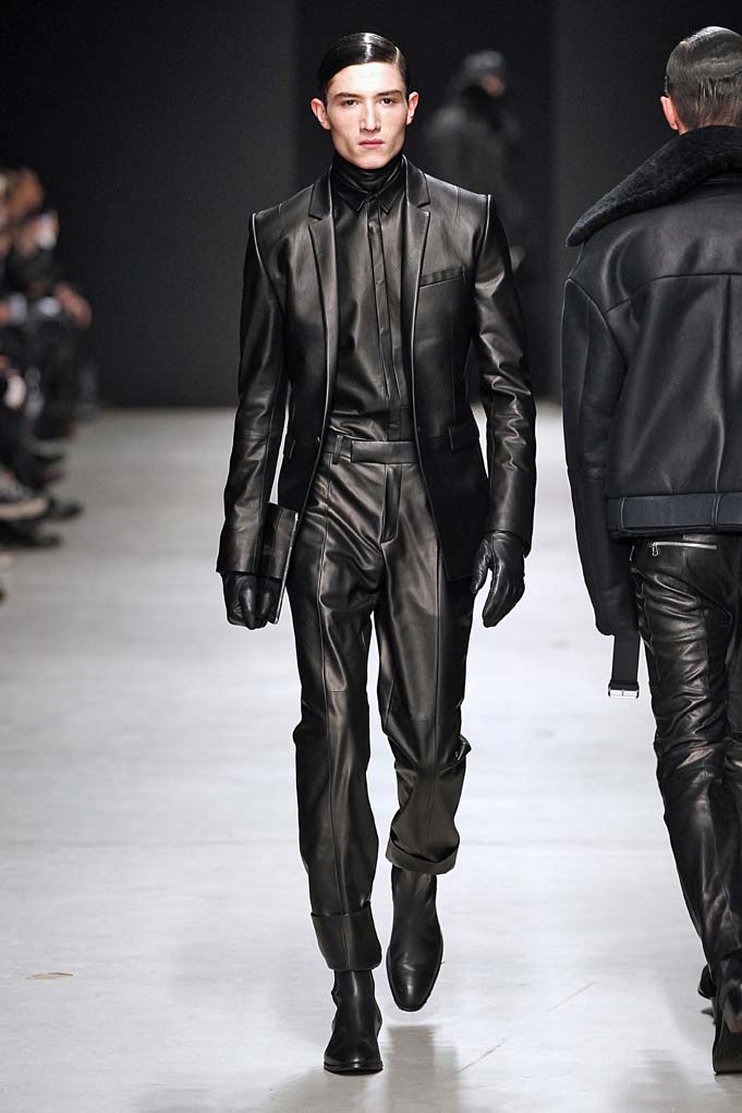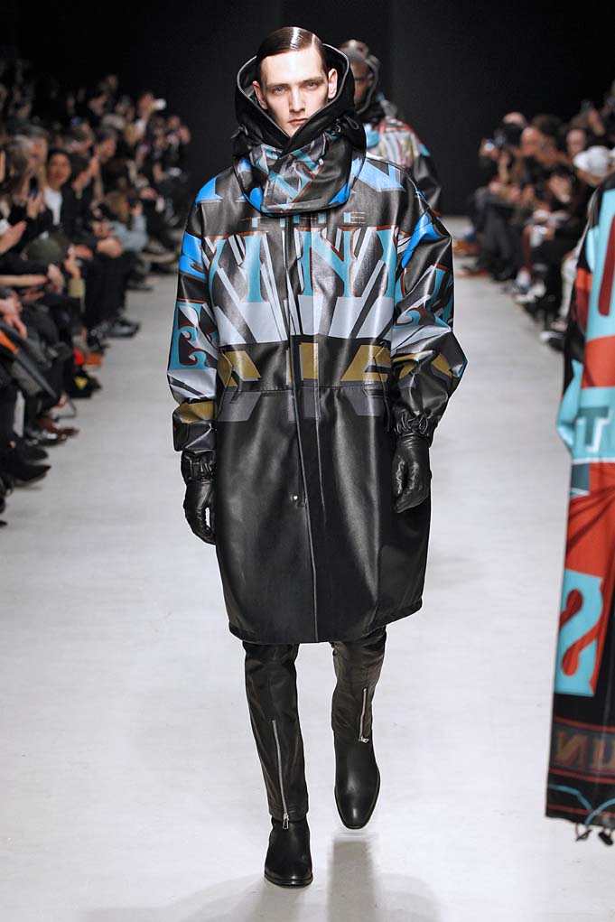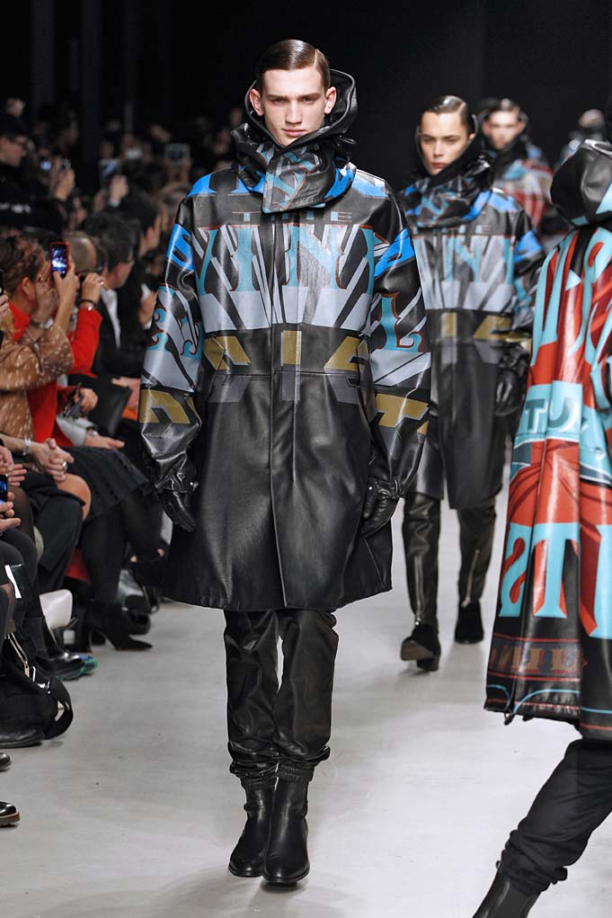 La matière retrouvée sur la plupart des looks est le cuir, sous toutes ses formes : détails, empiècements ou accessoires, l’homme Juun J est habillé de cuir pour ce futur hiver. Superposition de matières et de pièces, aux volumes majoritairement cintrés, l’allure complète se présente sous nos yeux, accessoirisée de gants, casquettes ou pochettes qui harmonisent et subliment le style Juun J.