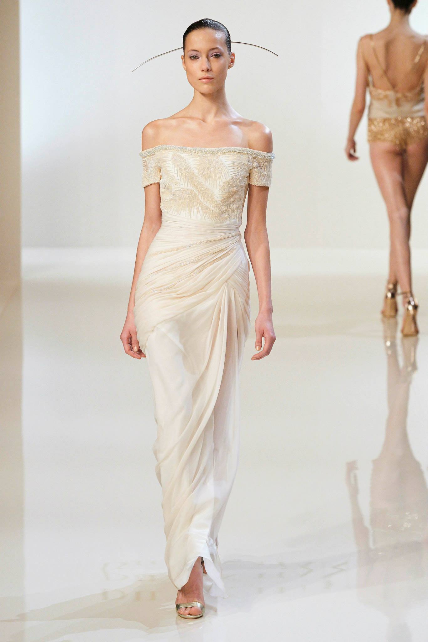Inspirée du mouvement Pré-raphaëlite, du romantisme et du raffinement de la femme Hanik, cette collection, aux broderies appliquées et aux détails raffinés, confirme la silhouette de la femme Hanik. L’allure, créée avec des matières nobles telles que la mousseline de soie, en version aérienne ou en drapé, sur des longues robes, aux empiècements ajourés ou non, signe la fraicheur et la douceur d’une femme romantique, sensuelle et indépendante.