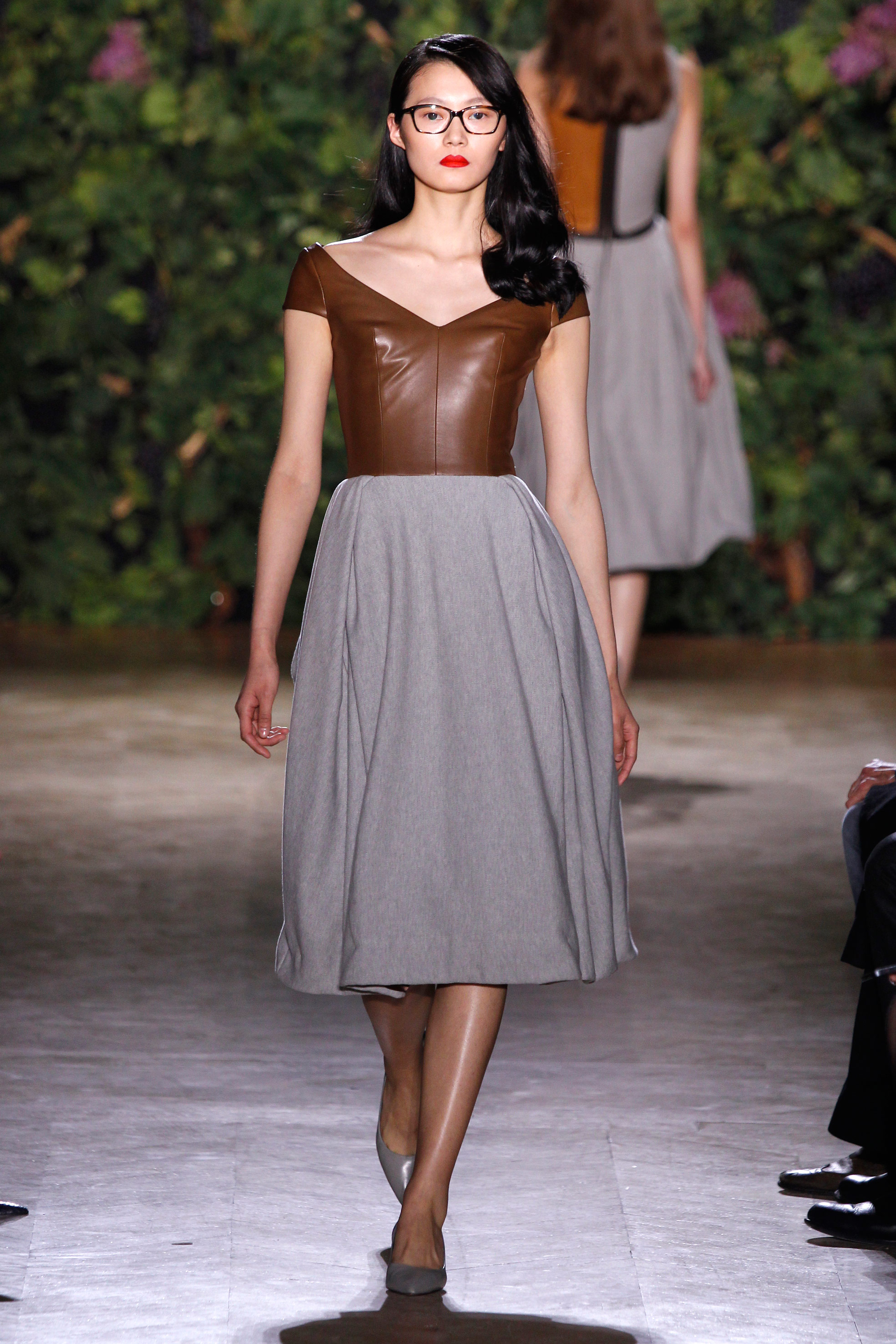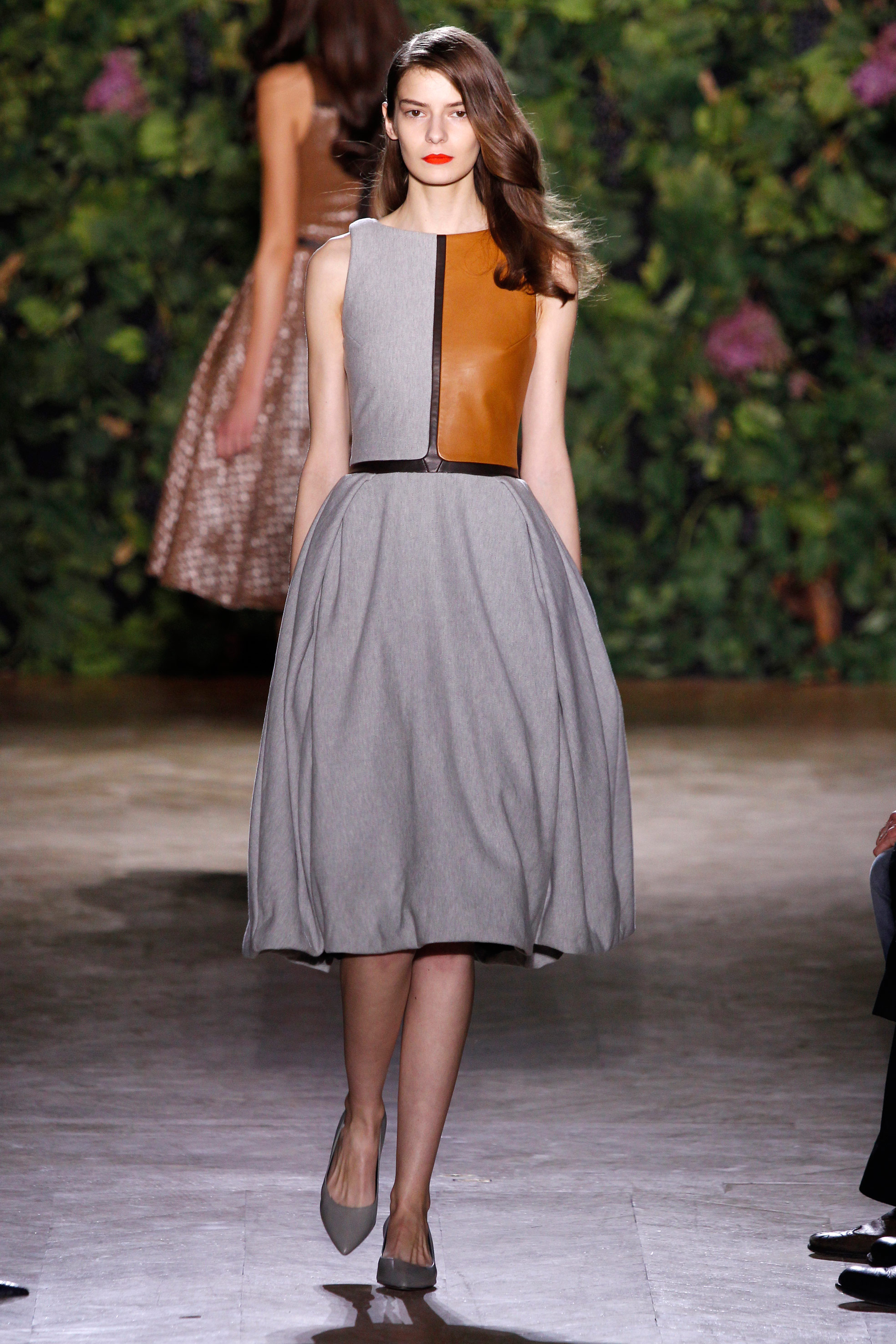 Il y a les épaules étroites, la taille marquée, la coupe au cordeau. Il y a la féminité à fleur de peau, la chair nue révélée au gré d’un décolleté, le volume d’une jupe trapèze légère comme un souffle. Qu’importe les réminiscences d’une décennie fifties ou les sensations d’une escapade à Napa Valley, les couleurs d’une saison californienne impriment subtilement cette couture parisienne affranchie de toute tentation vintage.
