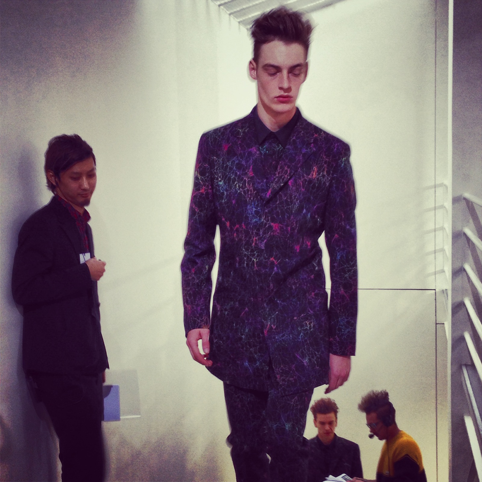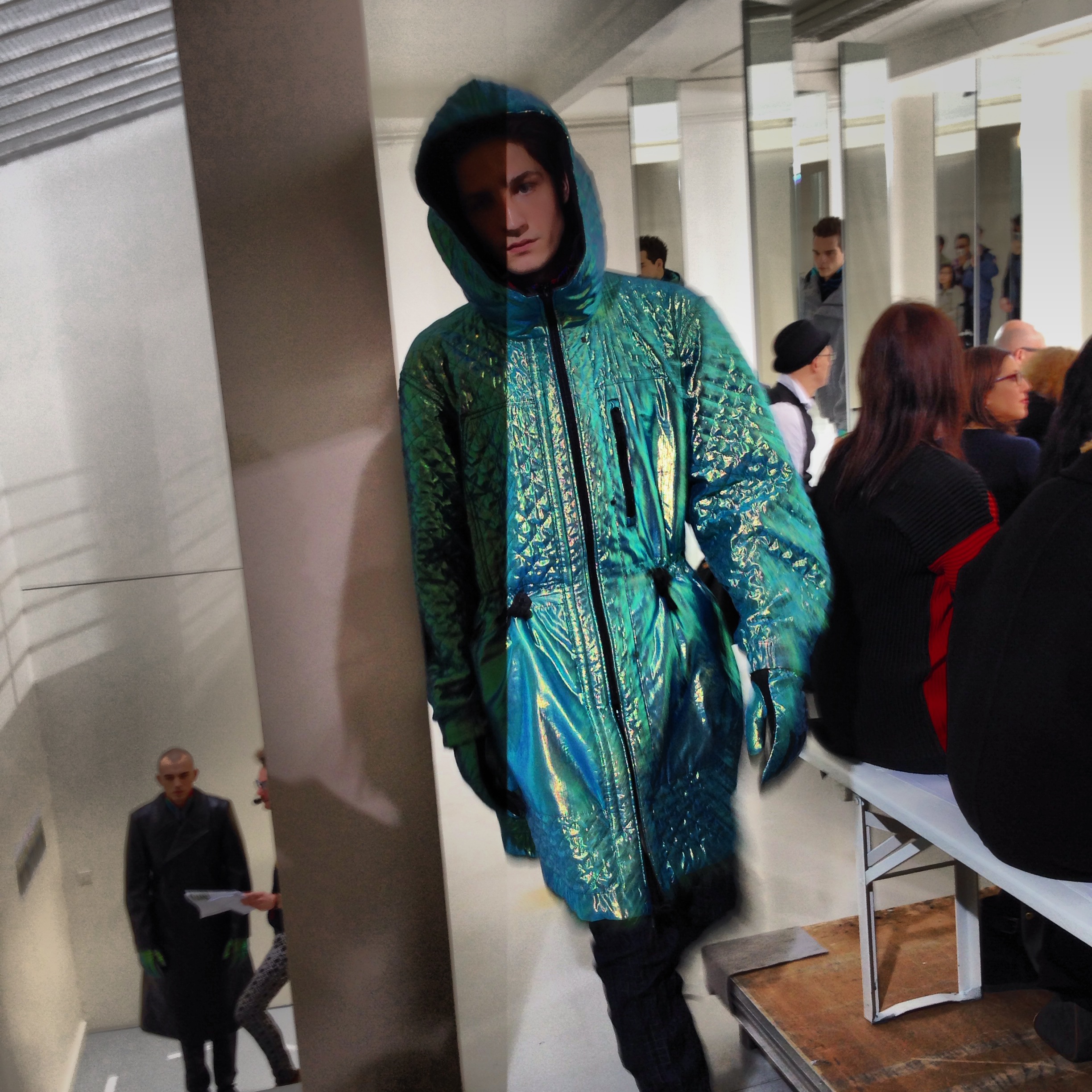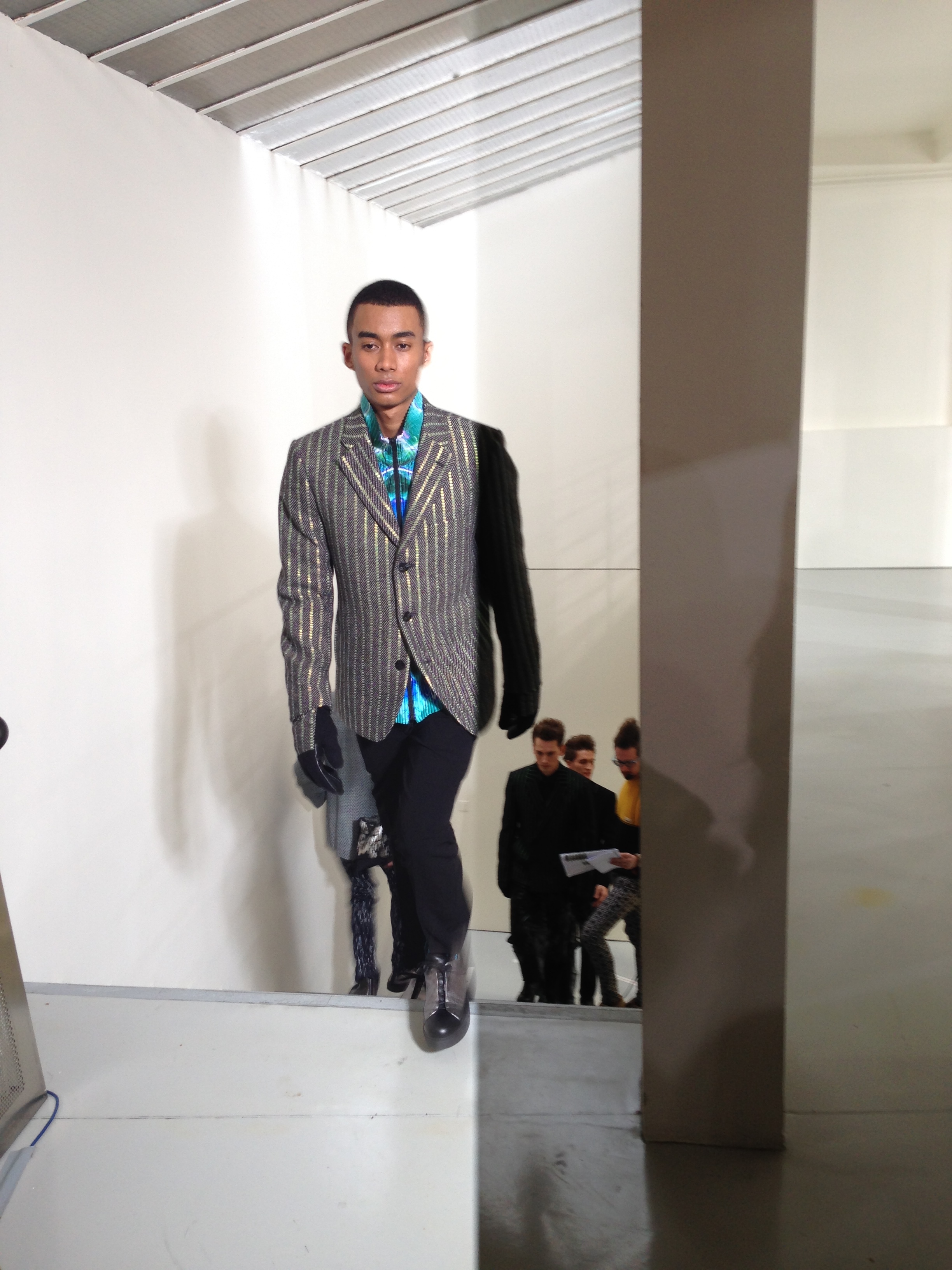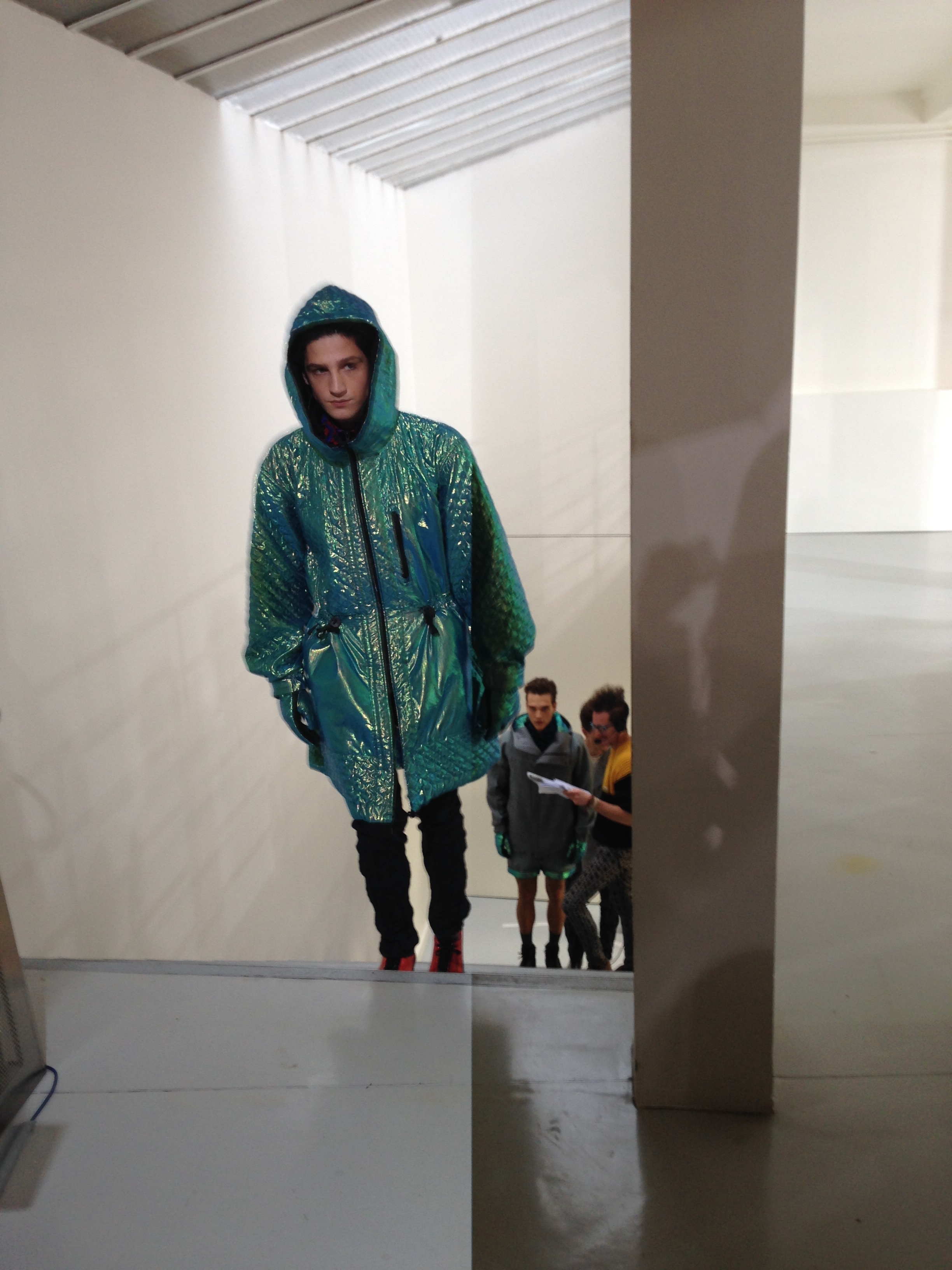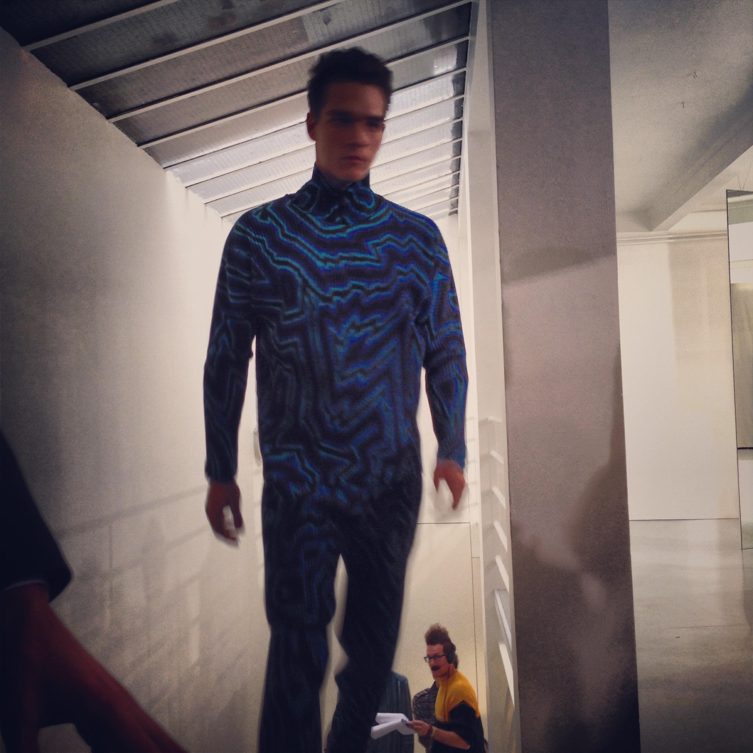 Pour cette collection automne hiver 2014/2015, la maison Issey Miyake prend son inspiration d’un voyage en Icelande pour créer une collection forte et colorée. Jouant avec les effets de matières et le 3D et utilisant des imprimés puissant de psychédélisme, kaleidoscopiques Issey MIyake Men nous provoque un choc visuel mémorable. Les lignes et coupes restent urbaines et fonctionnelles et très moderne.