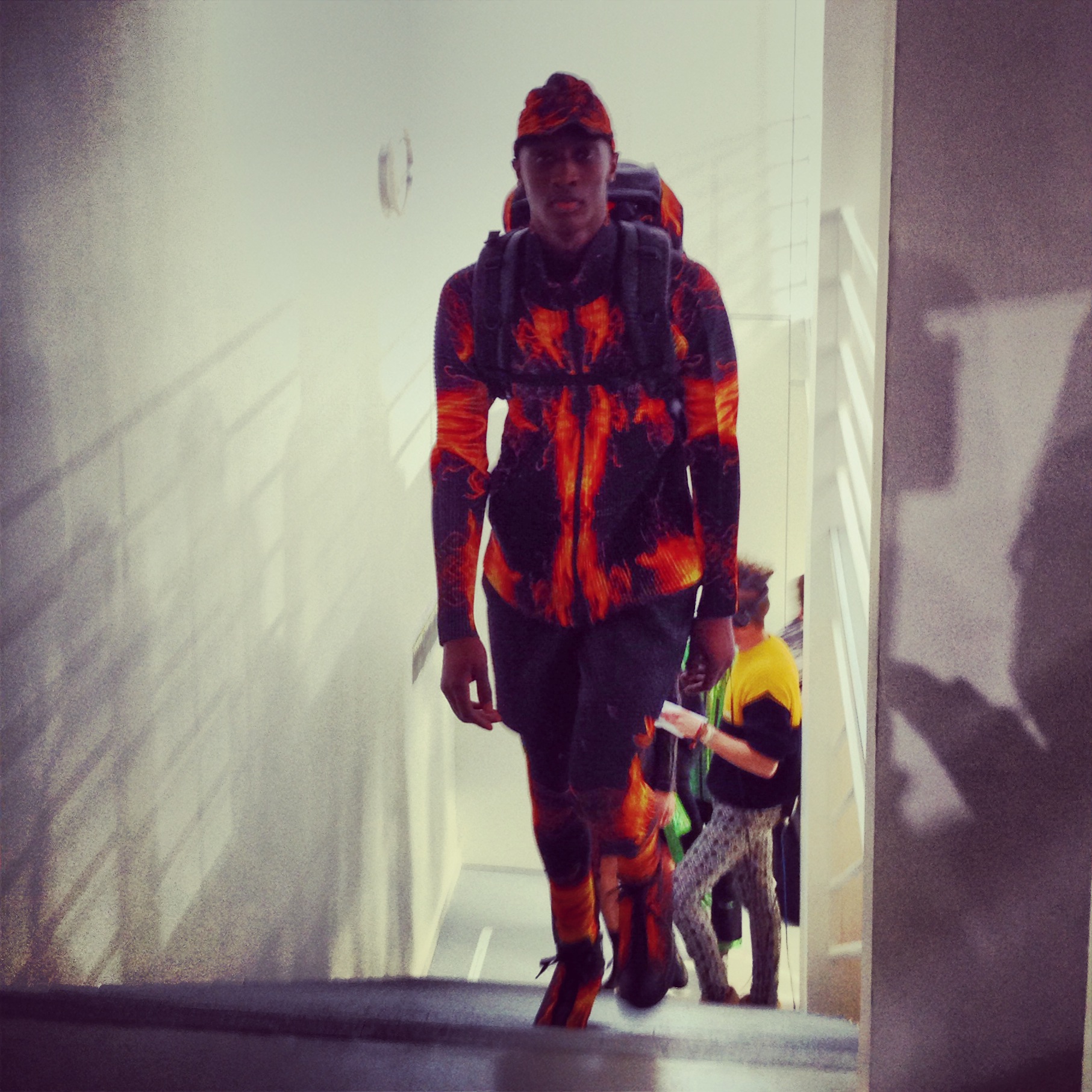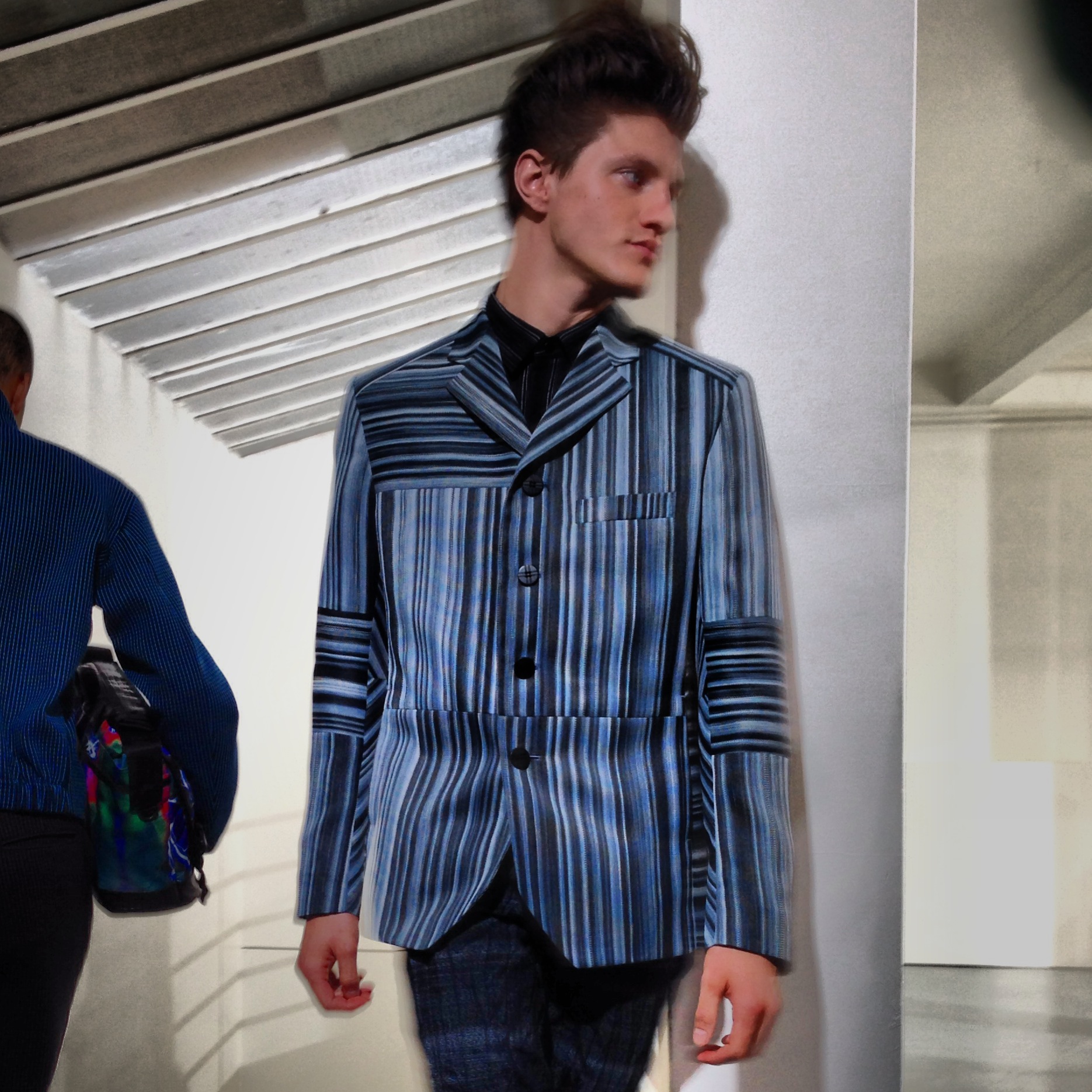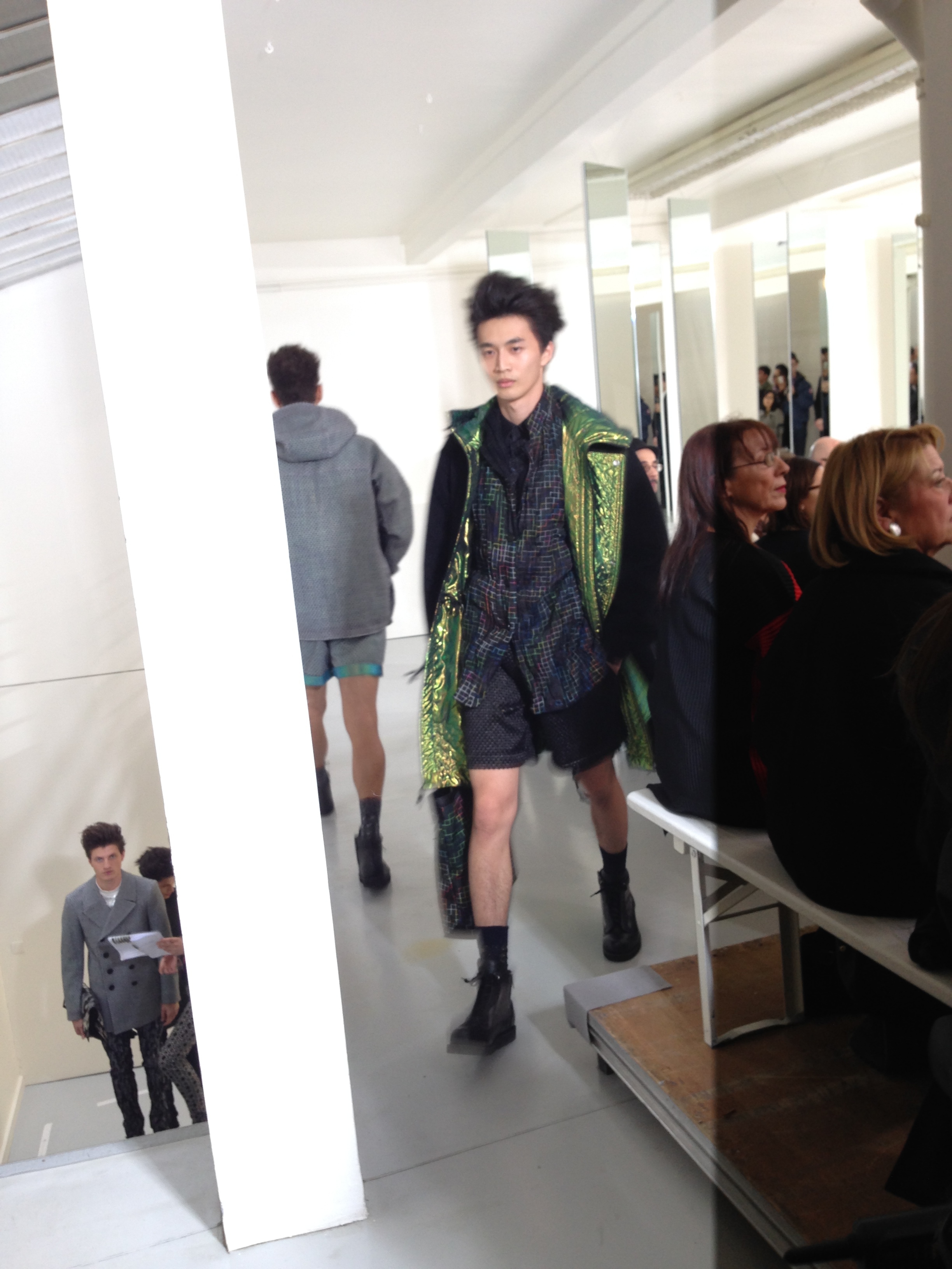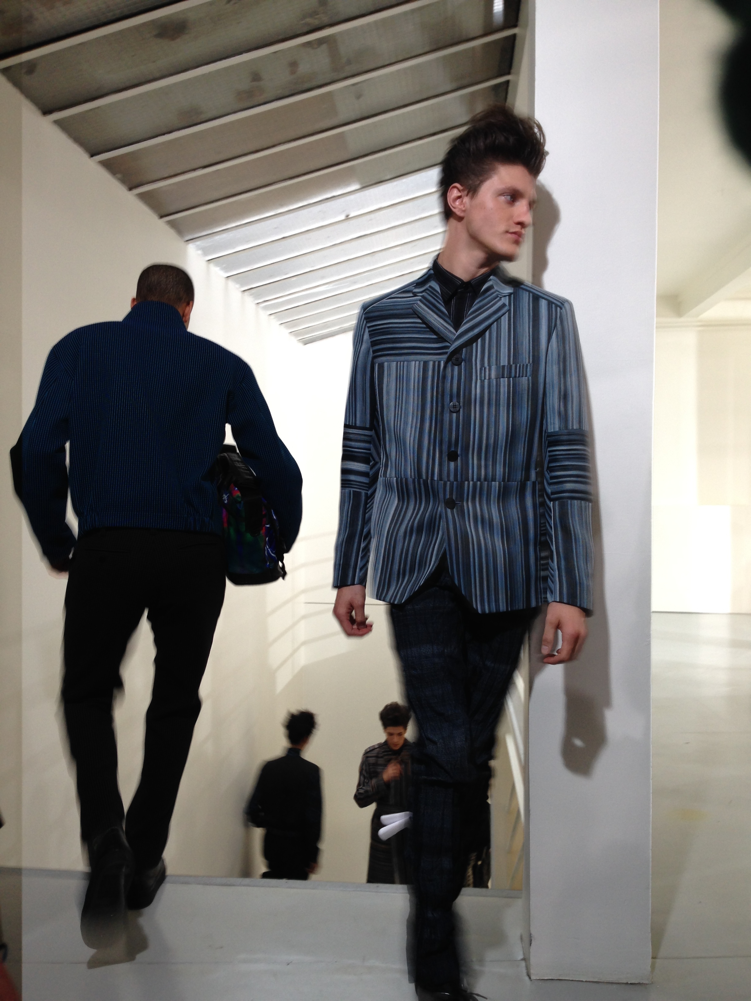 Pour cette collection automne hiver 2014/2015, la maison Issey Miyake prend son inspiration d’un voyage en Icelande pour créer une collection forte et colorée. Jouant avec les effets de matières et le 3D et utilisant des imprimés puissant de psychédélisme, kaleidoscopiques Issey MIyake Men nous provoque un choc visuel mémorable. Les lignes et coupes restent urbaines et fonctionnelles et très moderne.