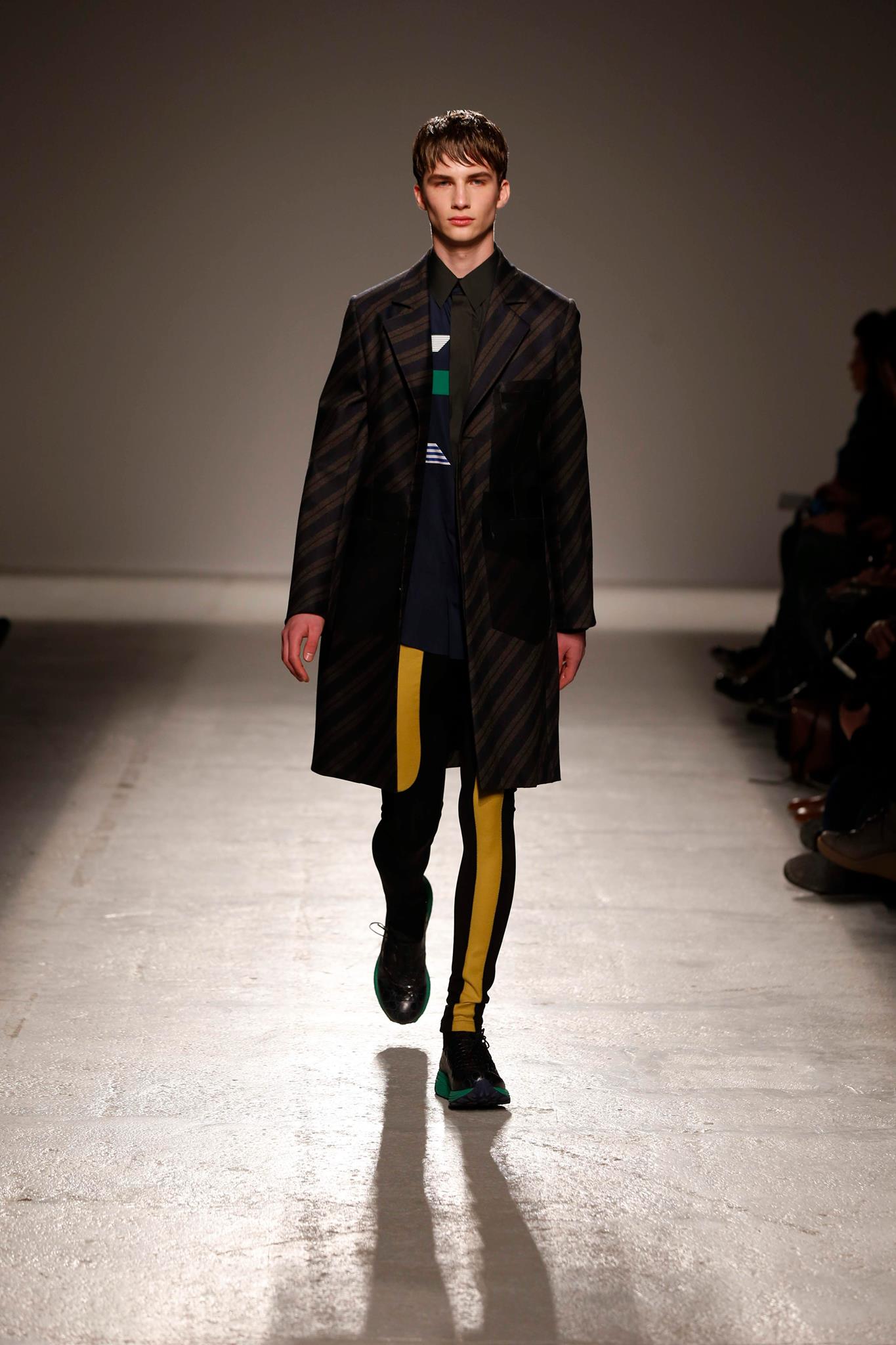 On reprend dans ce vestiaire des classiques du sport pour leur donner leurs lettres de noblesses : blouson de cyclistes, imperméable de course, doudounes pour donner des silhouettes sportives utilisant des matériaux techniques détournées.