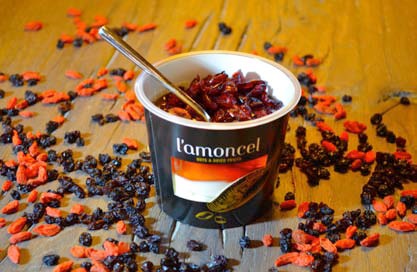 Vous pouvez le déguster à loisir avec un mélange sélectionné soigneusement par l’Amoncel pour apporter « le plein d’énergie », ou avec une cuillère de miel qui lui apportera son goût et ses vertus. Des recettes originales et équilibrées pour un plein d’énergie et de bienfaits à déguster sur place ou à emporter.